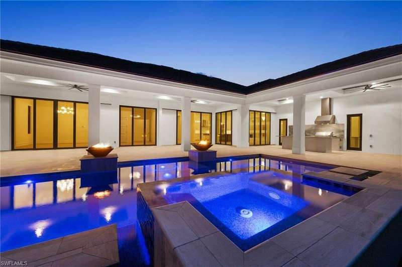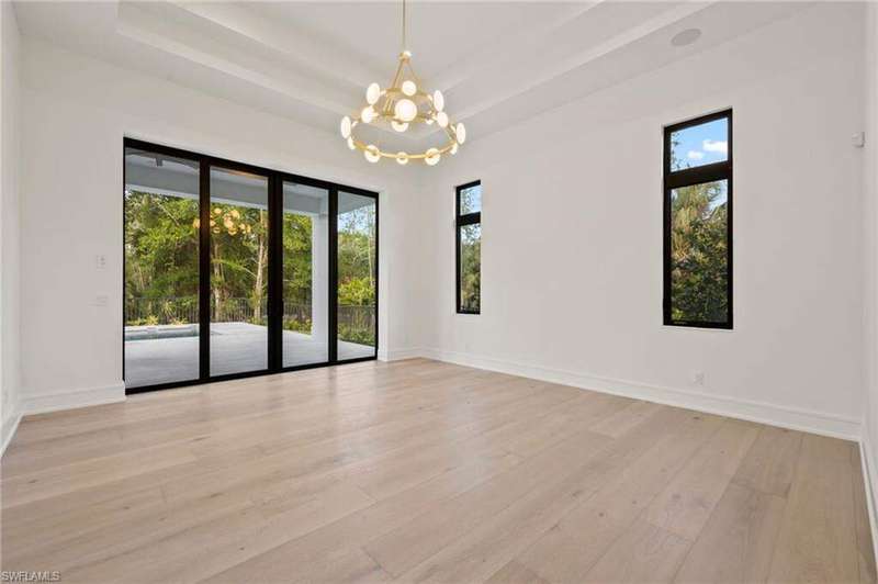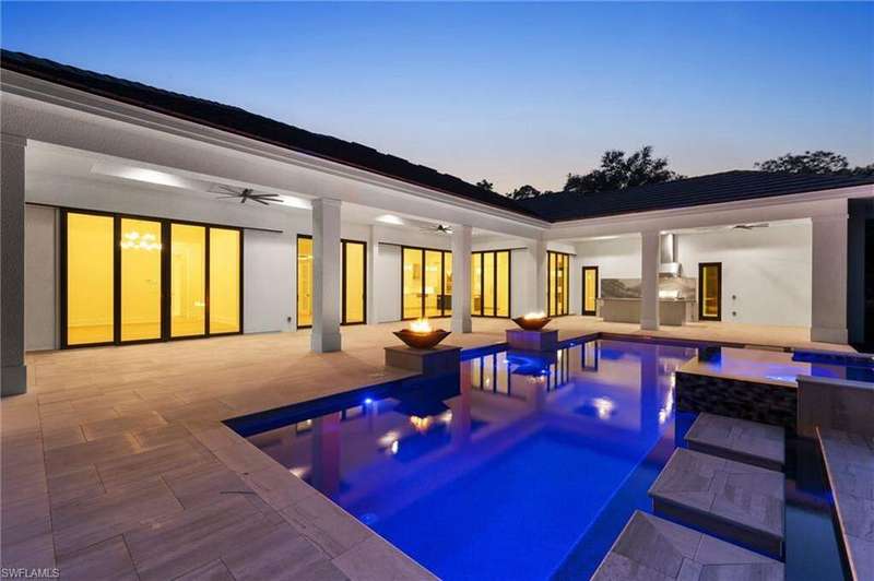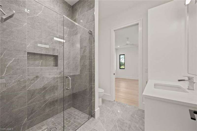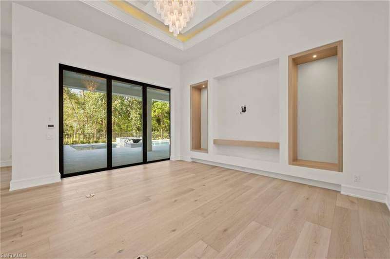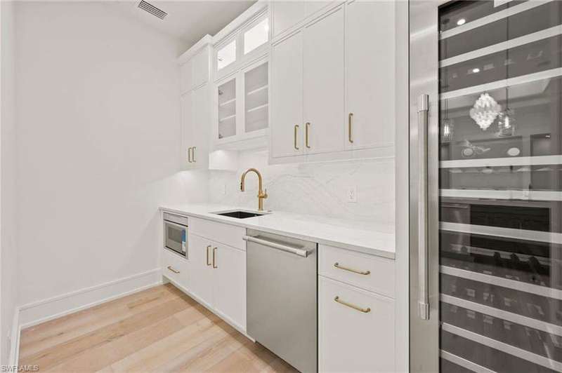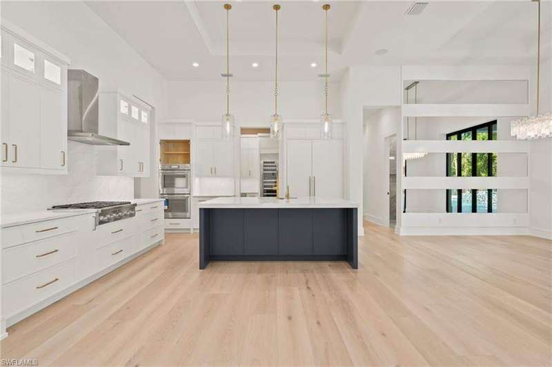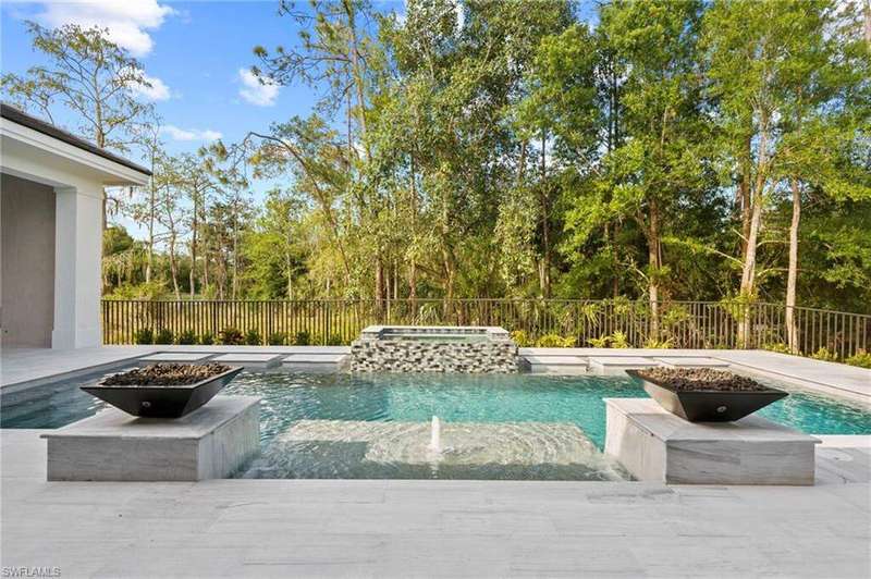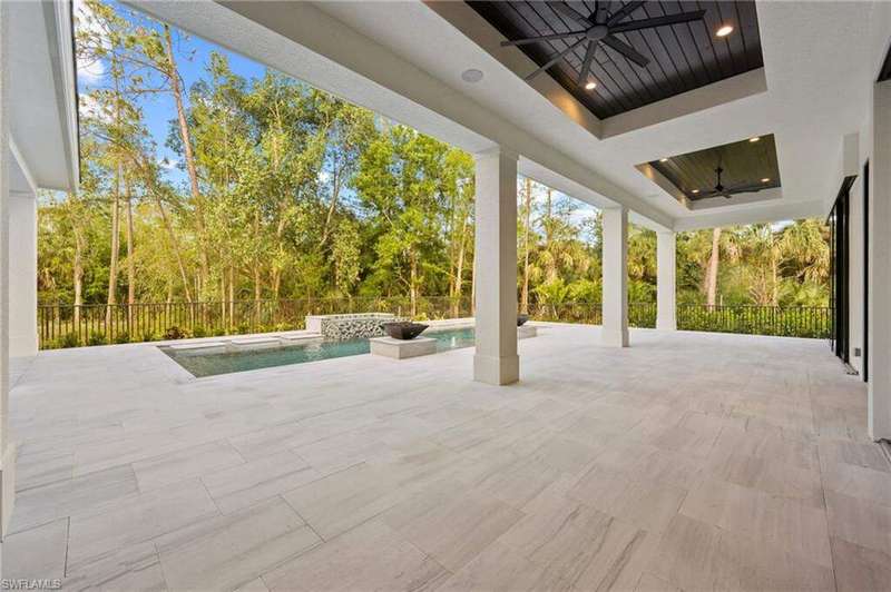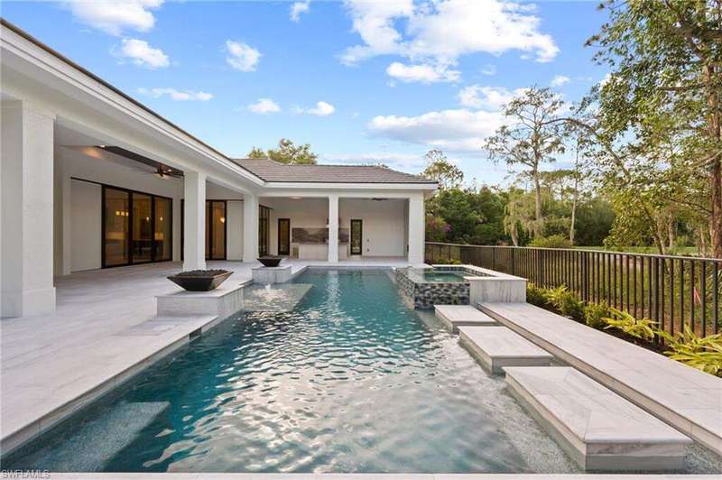 TRANSFERABLE GOLF MEMBERSHIP AVAILABLE! Skip the golf wait list and enjoy an immediate golf membership with only a transfer fee. Be the first to live in this New Construction home built by "Florida Lifestyle" and enjoy privacy at the end of a cul de sac while still having a golf course view. The split floor plan features four en suite bedrooms and the zen-like primary suite offers large custom walk-in closets and a spa-style bath with large soaking tub, custom walk-in shower with multiple shower heads, dual vanities, and two separate water closets. The adjacent study is anchored by a custom shiplap wall and provides access to the lanai while the open concept of the main area of the house flows from the gathering room with coffered ceilings and custom lighting, into both the kitchen and dining room. An elegant, mirrored wall in the dining area is a perfect aesthetic and the gourmet kitchen makes entertaining a snap with dual ovens, Thermador appliances, and an ample breakfast bar. Expanding the kitchen's efficiency is a magnificent butler's pantry fully equipped with a second dishwasher, sink, microwave, wine refrigerator, a large walk-in pantry, and plenty of storage. Hurricane-rated sliding doors open to a spacious covered lanai featuring an outdoor kitchen and fireplace. Relax beside the gorgeous pool, lounge on the sun shelf, soak in the spa, and enjoy the tranquil water and fire features. Amenity-rich Quail West, a hidden gem in North Naples, holds the exclusive Platinum Club status which is the pinnacle of recognition for Private Clubs around the world recognizing the top 1% globally. The world-class amenities include two championship golf courses, elegant clubhouse with a variety of dining options, a racquet sports complex, bocce courts, state-of-the-art fitness center, full-service salon/spa and unending activities for every interest.