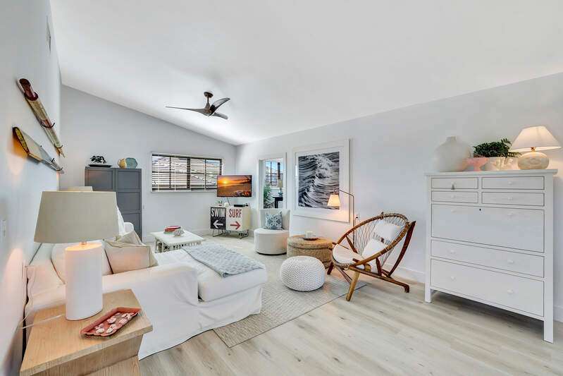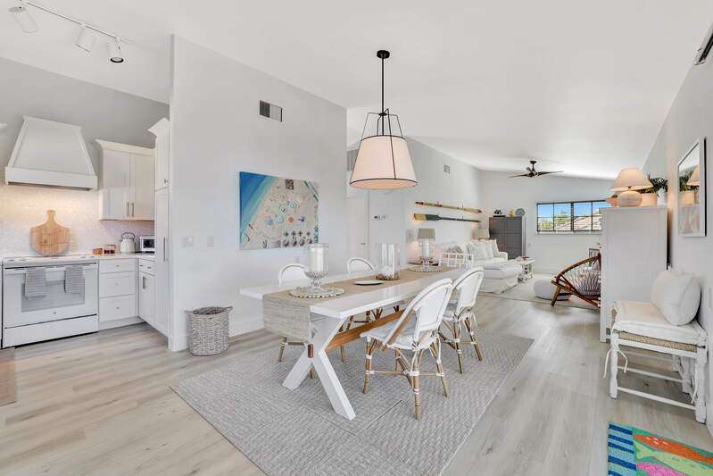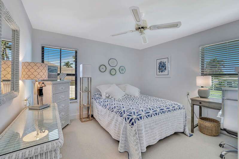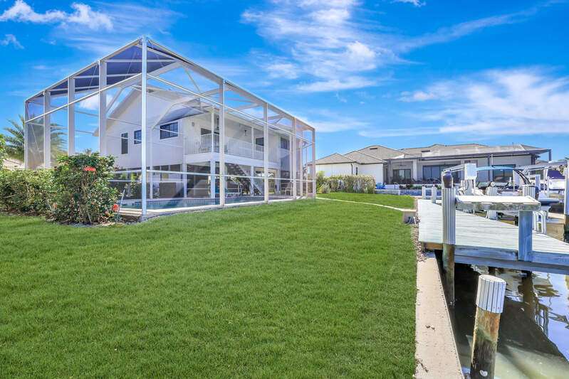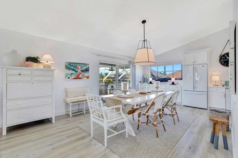 Enjoy waterfront living in this beautifully updated 2-bedroom plus den, 2-bath home on Marco Island. Located on an indirect Gulf-access canal with 100' on the water, the property features a private dock with boat lift, perfect for boating and fishing. Relax by the screened-in pool or take in the water views from the upper-level lanai. The light and airy interior offers an open floor plan with coastal-inspired finishes. The updated kitchen includes shaker cabinetry, solid surface counters, tile backsplash, farmhouse sink, and modern appliances. The den provides flexible space for a home office or guest room, while the primary suite offers comfort and style. Designed for the Florida lifestyle, this home offers multiple outdoor living spaces, impact windows, and a beautifully landscaped yard. Ideally located near Marco Island's beaches, shopping, and dining.