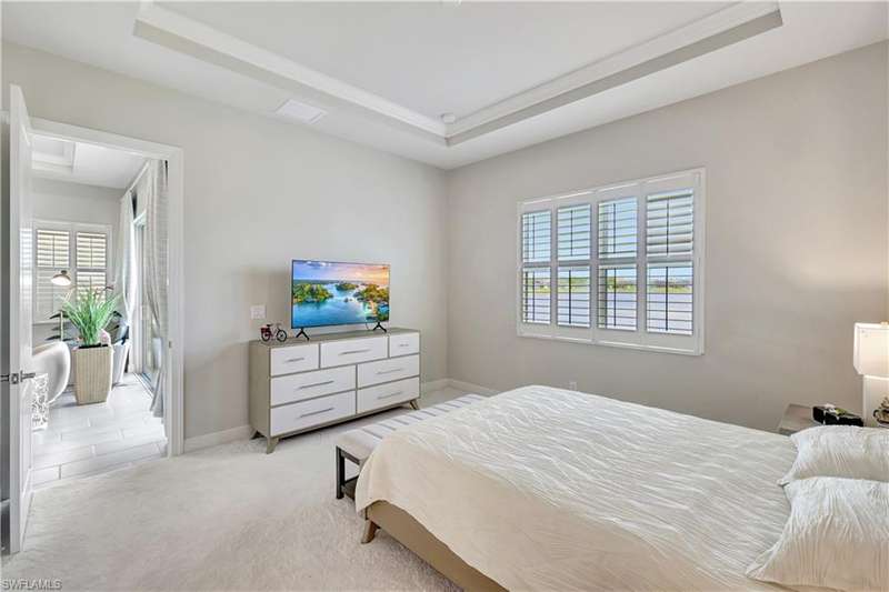 Welcome home to the charming 2 bedroom plus den villa offers stunning water views. The open lay out is airy and spacious with natural light and plantation shutters through out the home. The living area has an electric fireplace , ideal for cozying up with a great book or gathering with friends by the fire. The kitchen is well appointed and has plenty of counter space for culinary adventures. Many upgrades including gas cook top, and quartz counter tops. Outside is a cozy lanai that offers a tranquil place to sit and admire the water view or entertain friends. Amenities of Azure are Clubhouse, fitness center, tennis, Pickle ball, pool and spa and more! Naples is voted the #1 best place to live in the country in 2024 by U.S. News. Azure is located minutes to the well known 5Th Avenue world renown restaurants, boutique shops and white sandy beaches, Naples Botanical Gardens, Hamilton Harbor Yacht Club and East Naples Park and Bayshore Arts District are all close by!