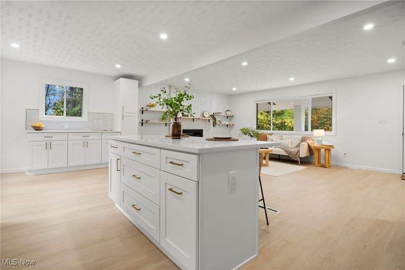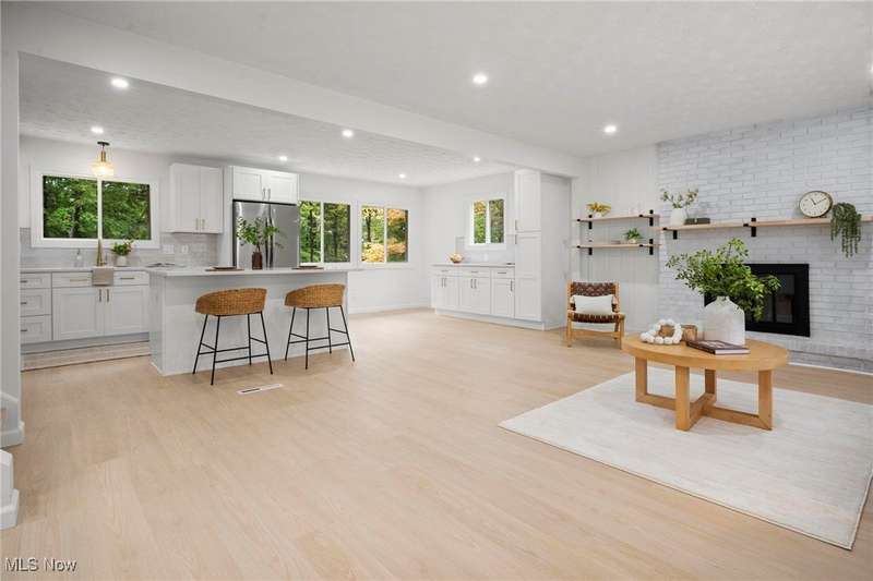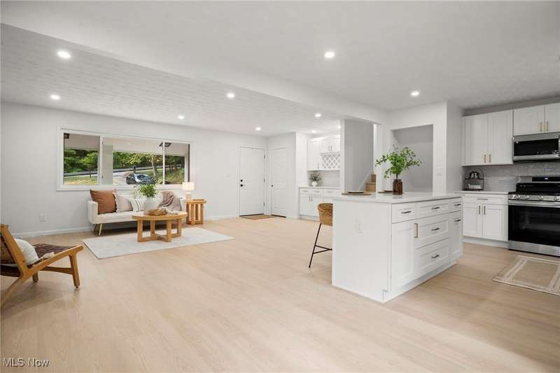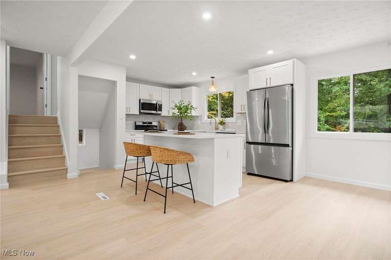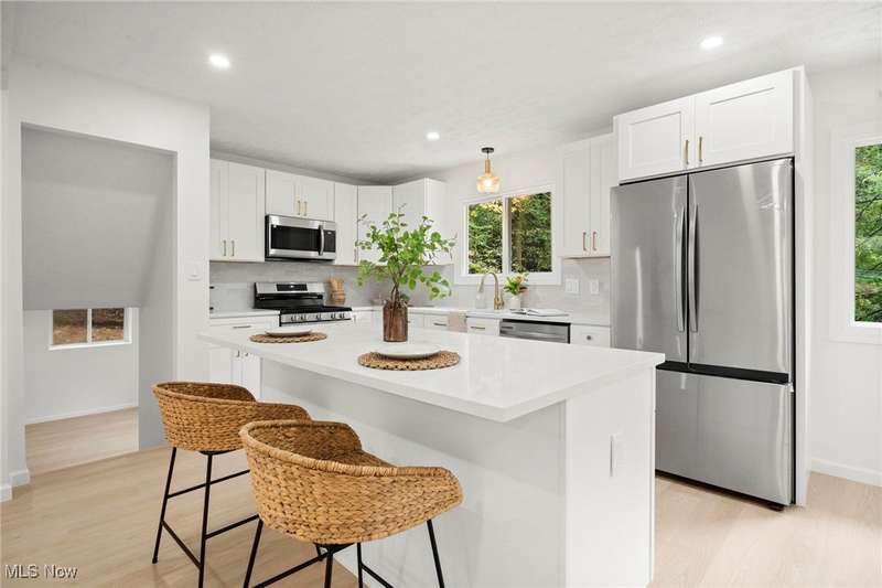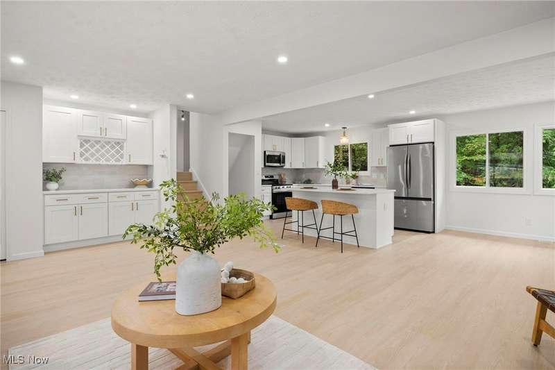 Welcome to 9035 Wallings Road - a stunning, fully renovated residence that perfectly blends modern elegance with serene natural surroundings. Nestled on nearly 2 acres in North Royalton, this 3-bedroom, 2-bath home offers over 2,000 square feet of luxurious living space designed for both comfort and style. The open-concept layout is anchored by a chef-inspired kitchen featuring white shaker cabinetry, quartz countertops, a dry bar, and premium stainless steel appliances. White oak luxury vinyl flooring flows seamlessly throughout, enhancing the home's bright and sophisticated aesthetic. The primary suite serves as a private retreat with a spacious walk-in closet and a spa-like ensuite bath. The finished walkout basement provides additional living space, perfect for entertaining or relaxing. Step outside to enjoy peaceful views and ample outdoor space on your expansive 1.9-acre lot. Every detail has been thoughtfully curated to deliver a refined living experience in one of North Royalton's most desirable settings.