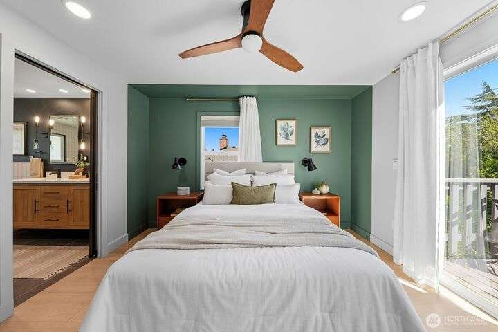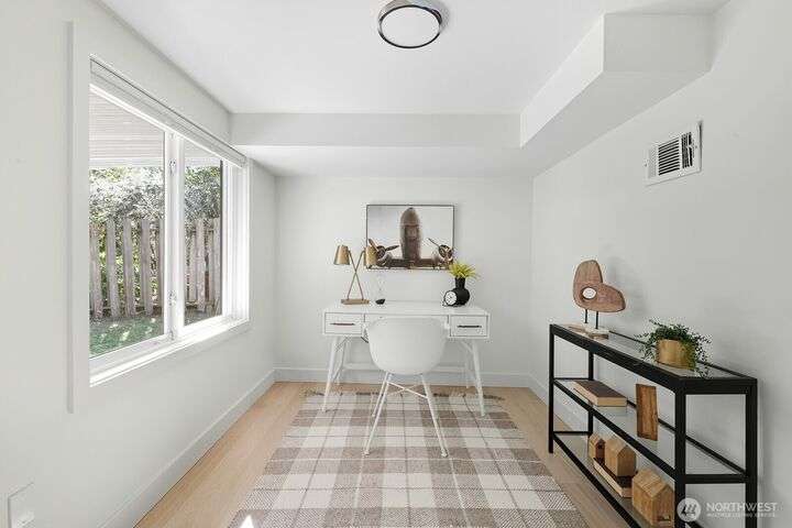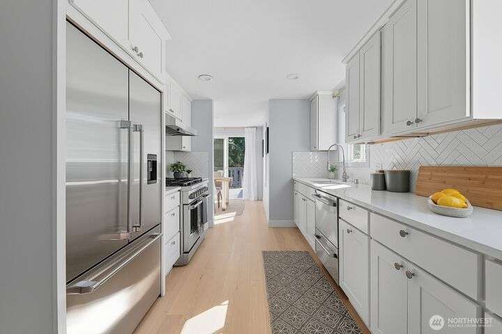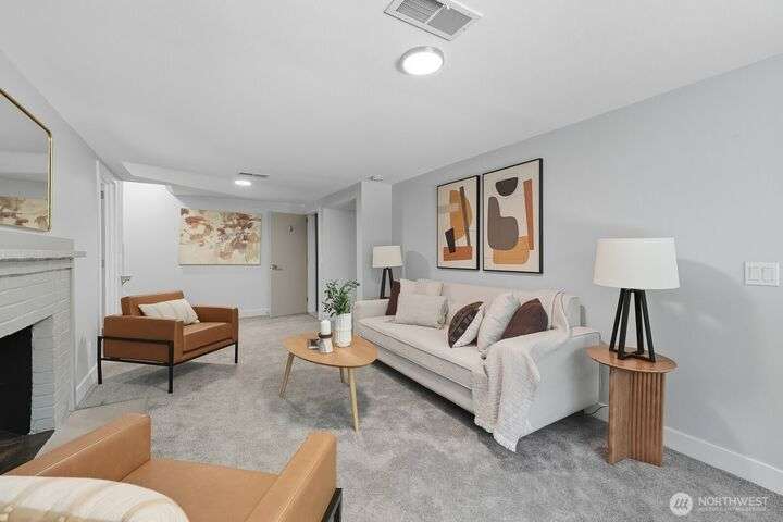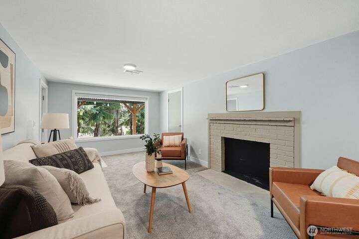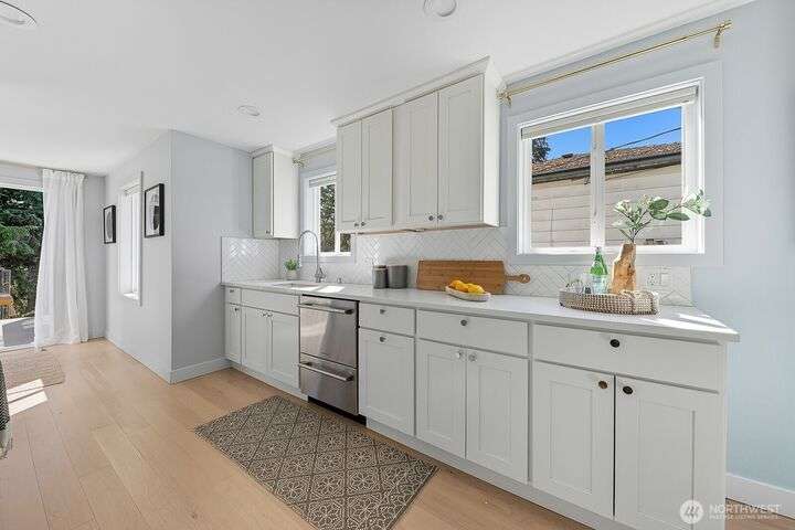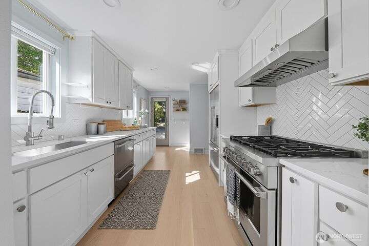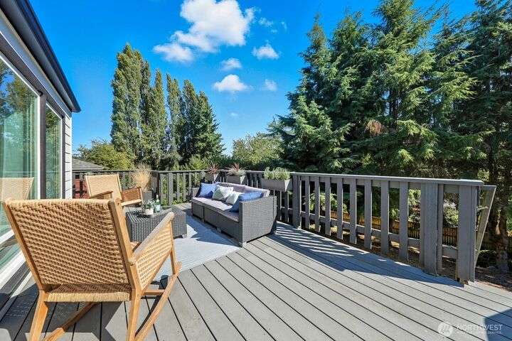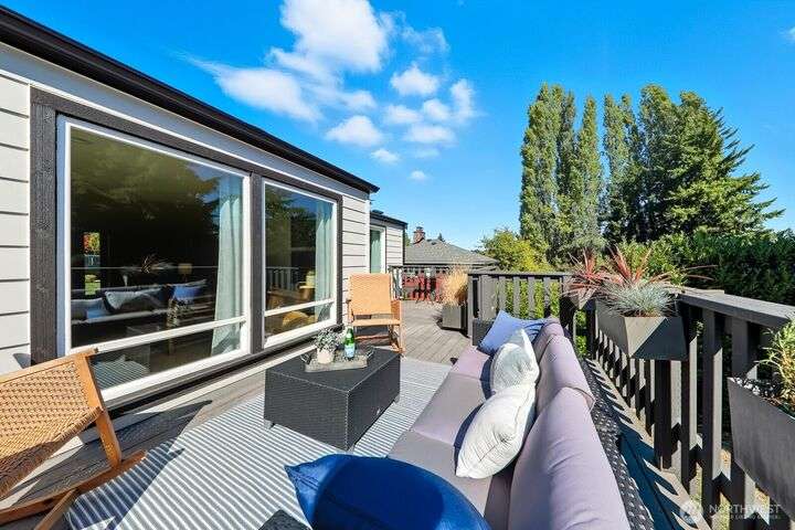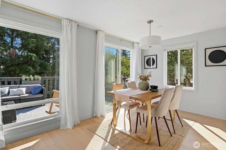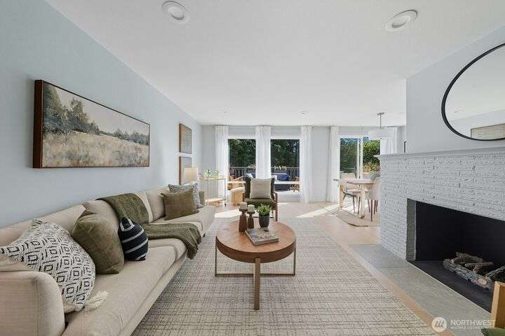 Simply say hello & turn the key in the heart of Matthews Beach. Reimagined down to the studs in 2022, this timeless home showcases white oak plank flooring, an epicurean kitchen, AC, & a luxe primary suite - your private retreat. Anchored by a focal wood-burning fireplace, the main level flows seamlessly through open living, dining, & kitchen spaces to a large deck overlooking a vast landscaping canvas. Expansive front and back grounds create a private oasis. The fully finished lower level offers a den/office, 2 bedrooms, ¾ bath, fireplace, & patio with breezy outdoor access. A vibrant community, one-car garage + EV parking pad complete the ideal package - conveniently mins from Burke-Gilman Trail, parks, shops, & prime Seattle amenities.