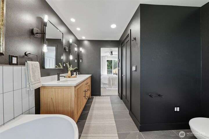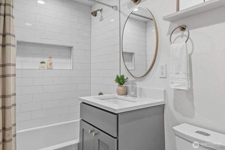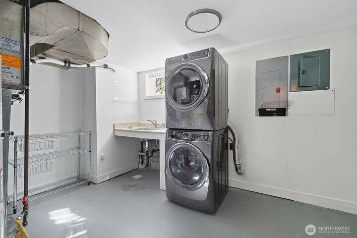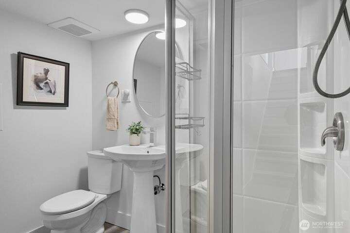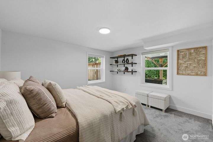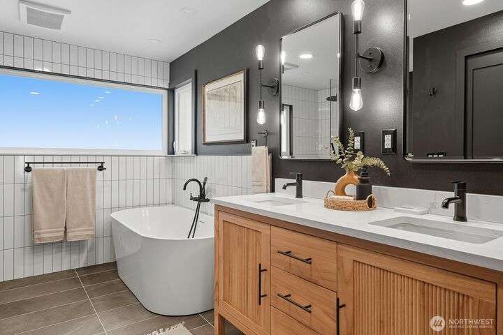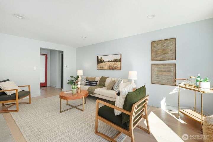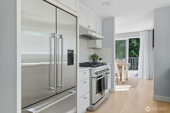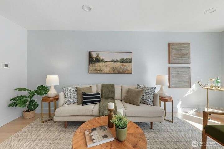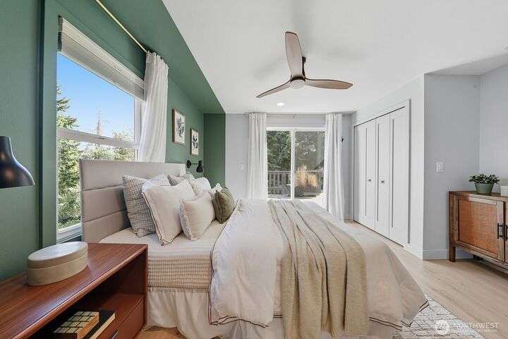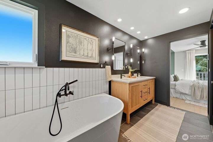 Simply say hello & turn the key in the heart of Matthews Beach. Reimagined down to the studs in 2022, this timeless home showcases white oak plank flooring, an epicurean kitchen, AC, & a luxe primary suite - your private retreat. Anchored by a focal wood-burning fireplace, the main level flows seamlessly through open living, dining, & kitchen spaces to a large deck overlooking a vast landscaping canvas. Expansive front and back grounds create a private oasis. The fully finished lower level offers a den/office, 2 bedrooms, ¾ bath, fireplace, & patio with breezy outdoor access. A vibrant community, one-car garage + EV parking pad complete the ideal package - conveniently mins from Burke-Gilman Trail, parks, shops, & prime Seattle amenities.