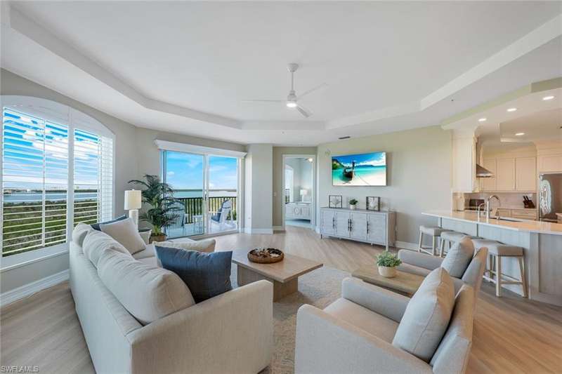 Luxurious and gorgeous remodel with amazing views from this open concept rental property is ready for occupancy. Enjoy the amazing views of Estero Bay, day and night with this western- exposure 3-bedroom, 3 bath high-rise in Bonita Bay. Upgrades galore with a beautiful recent renovation, this luxury property offers over 2700 square feet of living space and additionally over 550 square feet of outdoor space. Plenty of room for entertaining, overnight guests, etc. Enjoy the sprawling single level layout with almost every room in this high-rise offering breathtaking water views- great room design, volume ceilings, gourmet style open concept kitchen w/ wet bar, formal dining room & breakfast bar, spacious Florida Room off of master suite & great room, circular open-air balcony off of great room & guest suite, large picture windows w/ plantation shutters, volume ceilings, and large laundry room w/ utility sink & Premier location in Bonita Bay, a private gated community offering so many outd