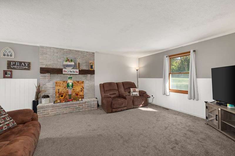 Check out this 3-bedroom, 2-bath ranch home situated on a full 1-acre lot offering a great mix of updates and potential with room to grow and make it your own. The brand-new attached 3-bay garage is a major feature?perfect for storage, hobbies, or a workshop, complete with a metal roof that matches the house for a clean, finished look. The home includes several recent updates: newer flooring, furnace, AC, gutters, and appliances. An in-ground dog fence is already in place, and the full basement offers great potential to finish for additional living space. A solid property with a flexible layout and plenty of potential in a convenient country setting. Call today to schedule a showing!!