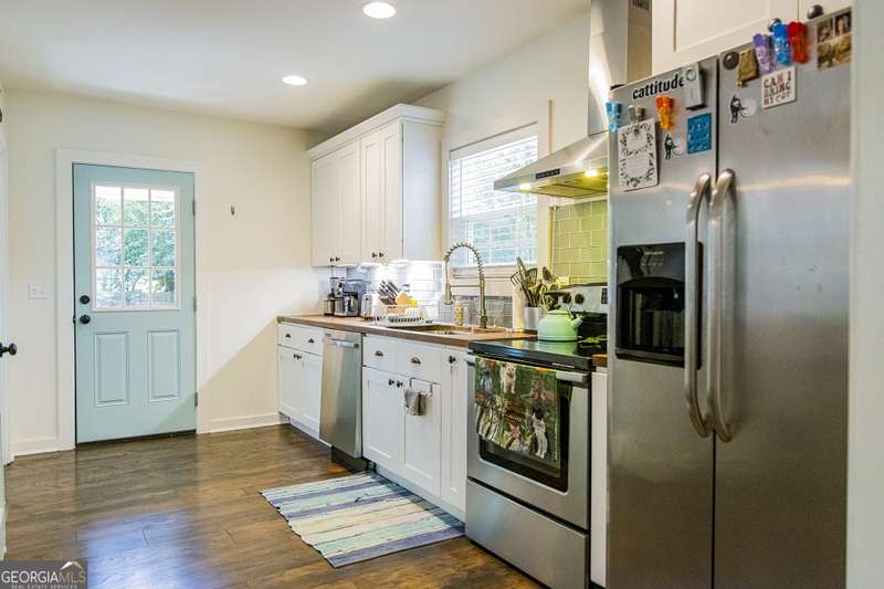 Beautifully finished 3 bedroom, 2 bathroom cottage , situated on a quiet cul de sac in the historic neighborhood of College Heights. This charming ranch features hardwood flooring throughout and great windows with natural light. The open living area, with reading nook and den space, flows into a great eat in kitchen with butcher block counters on custom cabinets. Stainless appliances and a large pantry off plenty of space and storage. The vaulted master suite has a sitting area, custom tile bath, and walk in closet. Two additional bedrooms share a full bath. The backyard is fenced and offers privacy and additional entertaining space.