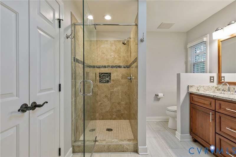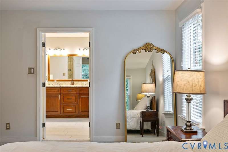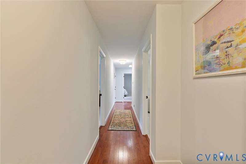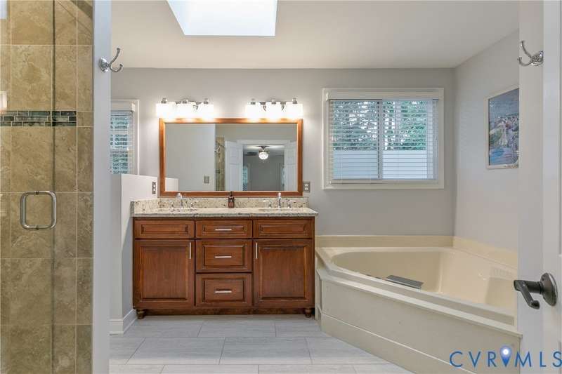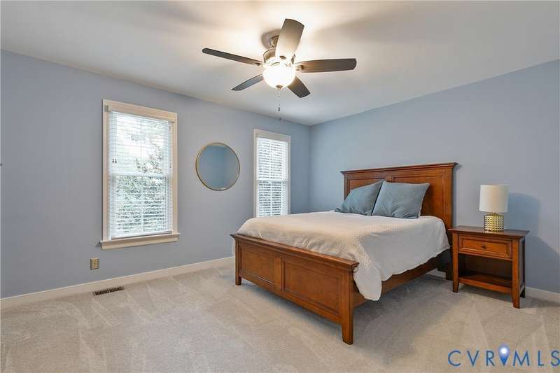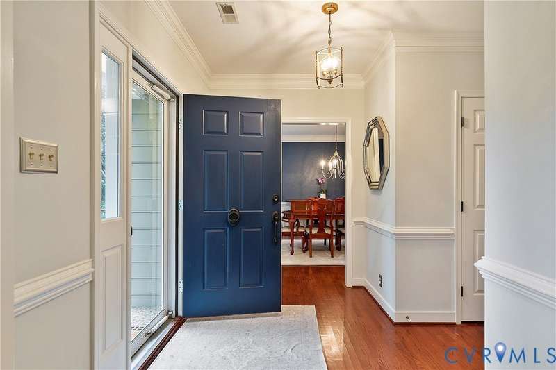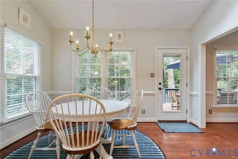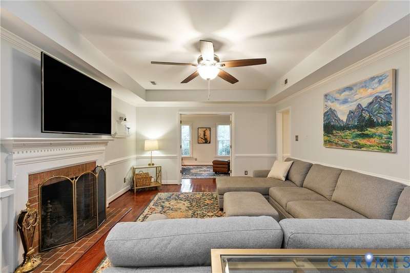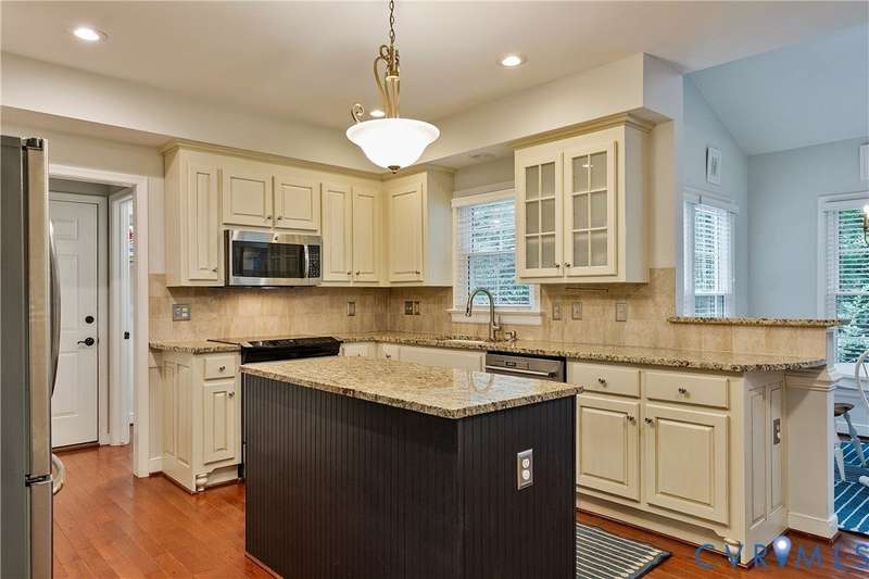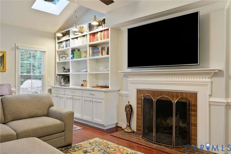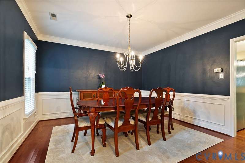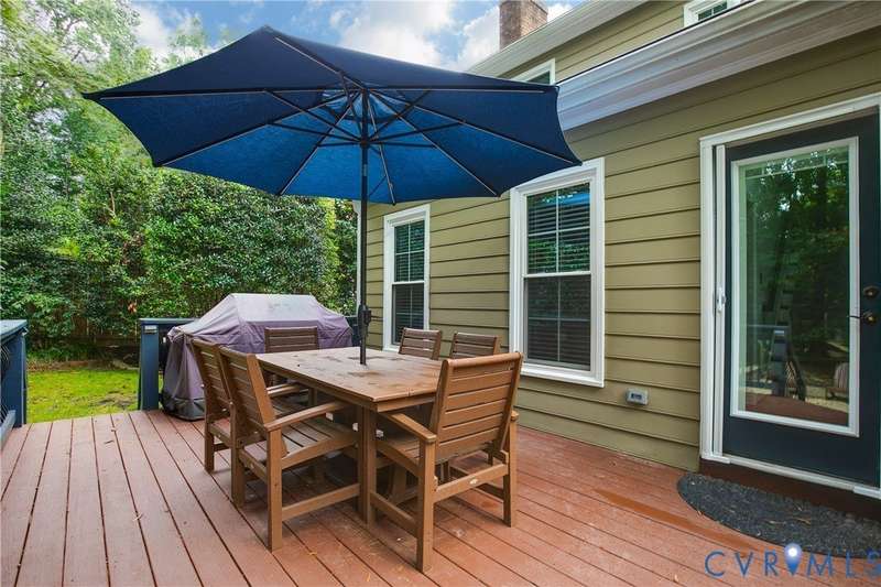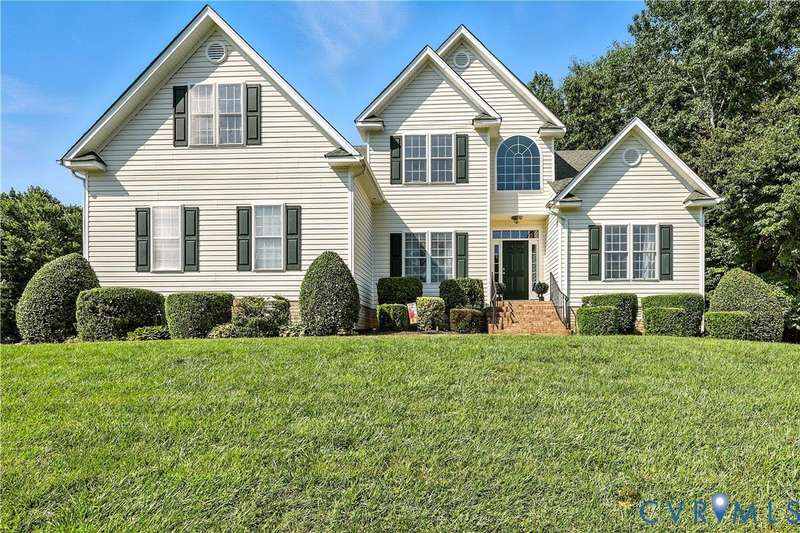 Welcome to this beautiful 4-bedroom, 2.5-bath home tucked away on a quiet cul-de-sac in the highly sought-after Walton Park subdivision of Midlothian! As you enter, you are greeted with hardwood floors and chair rail molding throughout much of the first floor. The den and family room are connected by French doors, with tons of natural light spilling into the living room from skylights. The spacious living room also features a wood-burning fireplace, vaulted ceilings, and custom built-ins added in 2024. The eat-in kitchen showcases granite countertops, bead board on the island, tile backsplash, a pantry, stainless steel appliances, built-in desk, and custom cabinetry. The dining room offers picture and chair rail molding, while a large first-floor laundry room and a 2-car garage with direct entry add convenience. Upstairs, the primary suite has a walk in closet and an ensuite bathroom with French door entry, a large jetted tub, granite double vanity, and a glass/tile shower. The three additional bedrooms are all generously sized, each with its own walk-in closet. The 4th bedroom/media room can also double as a playroom. The full hall bath includes a double vanity and tub/shower. There is a walk up attic that provides ample storage as well as plenty of closet space throughout the home. Step outside to enjoy a freshly stained deck (2025), a pea gravel patio (2025), and a resealed driveway (2025)-all overlooking a large, private, and peaceful fully fenced backyard. Additional updates include a new power-vent water heater (2025) and a renovated powder room (2024). Walton Park also offers a neighborhood pool and playground without the hassle of an HOA!