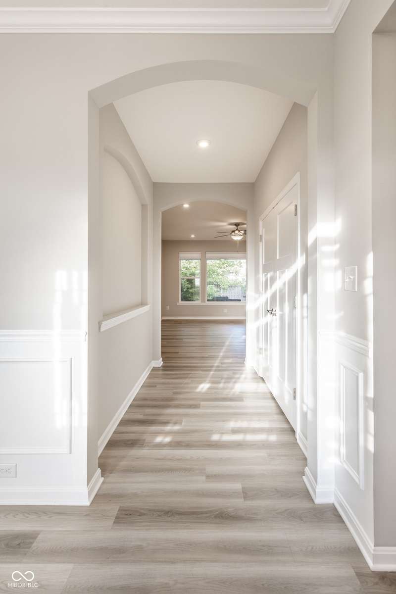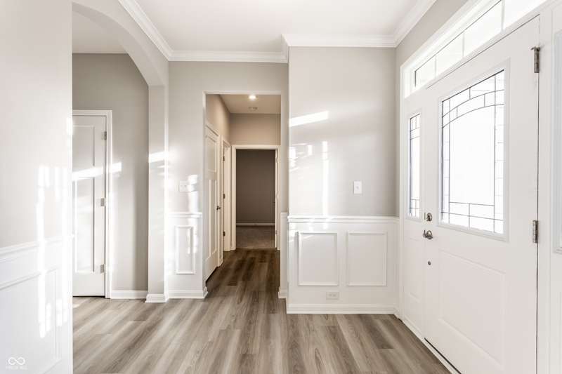 Welcome to The Enclave on Lyster Lane. A small and intimate low maintenance community featuring thoughtful amenities such as outdoor fireplace, firepit area, paved walking trail, newly created nature area, and two stocked ponds. Step inside this beautifully designed ranch style home to numerous upgrades including the 4' garage extension, mudroom bench and storage, kitchen cabinet and quartz countertop upgrades, not to mention the 14.10 x 12 covered patio perfect for your morning coffee or evening gatherings. Upon entering the foyer, you will be embraced by beautiful wood trim details and the private main floor office/den which could be a third bedroom. The open and bright kitchen is accented by a blue center Island, walk in pantry, clean crisp white cabinets and white quartz. The soft hues of luxury vinyl plank flooring by Shaw Industries completes the sleek neutral decor of the kitchen and dining area while extending through the great room and hallways. With lots of natural light the great room is a perfect sanctuary for relaxation or entertaining. At the end of your day retreat to the primary bedroom with walk in closet and well thought out primary bath featuring a zero-entry full shower, grab bars and generous bench. Many convenience details were added by the owners at time of construction including ramps instead of steps in the garage and on the patio. Come see this well-appointed home that could be just right for you.