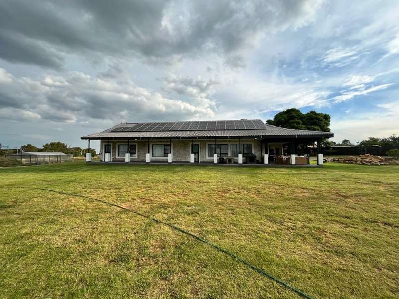 TOTALLY OFF THE GRIT – 30 KW SYSTEM, LITHEAM BATTERIES, 2 INVERTORS (ALUMO CONTRACT IN PLACE 4 YEARS OFF CONTRACT STILL PAYABLE @ R6000 PM @ 6% ESCALATION EACH YEAR) This 1.3 ha well developed plot well positioned in Cullinan with real craftmanship in a pristine condition, YOU MUST SEE THIS PROPERTY. The following development taken place on the property: 1. Main Dwelling 1.1 Bedrooms x 3 all with two en-suite bathrooms, main bedroom with air conditioner 1.2 Bathrooms x3, Full with bath, shower and basin) 1.3 Open plan living area (lounge with air conditioner and huge dining room) and kitchen 1.4 Modern Kitchen with lots of cupboards and granite tops with separate laundry and pantry, gas stove, gas oven and extractor fan. 1.5 Covered patio / Entertainment / Braai room with bathroom / toilet, built-in braai 2. Offices or Cottage 2.1 Huge open space workplace or living area 2.2 Kitchenette 2.3 Bathroom 3. Other 3.1 Garages or storeroom, automated doors, 2 double garages 3.2 Workshop, storeroom, can easily converted into another granny flat 3.3 2 x Double carports 3.4 Staff quarters with toilet, shower, kitchenette and bedroom 3.5 Braai area with boma, pizza oven 3.6 Strong Borehole 4500 l/h 3.7 2 x pressure pumps, one for house and one for rest of property 3.8 3 x water tanks (2500 l each) 3.9 3 x French Drains 3.10 Water filtering system 3.11 Irrigation 3.12 Vegetable greenhouse 3.13 Electrical fence around living area (400m) 3.14 Game Fence whole property 3.15 Monitoring camera system and alarm system, burglar bars, security doors 3.16 2 x electric geysers, 2 x gas geysers, 2 x solar geysers