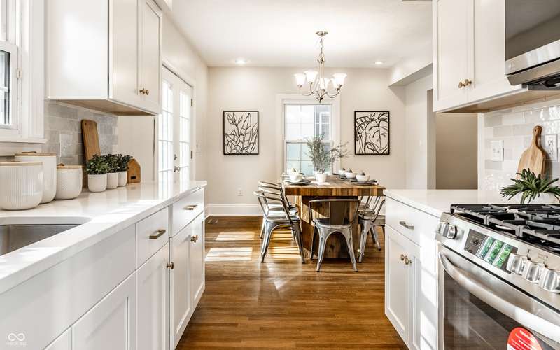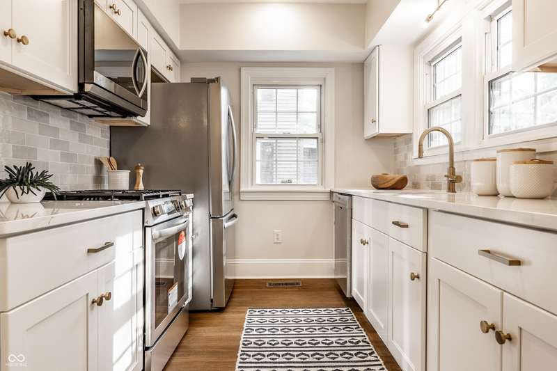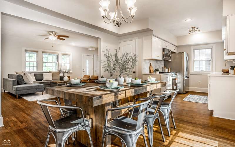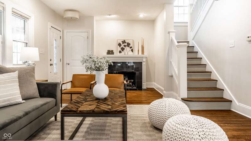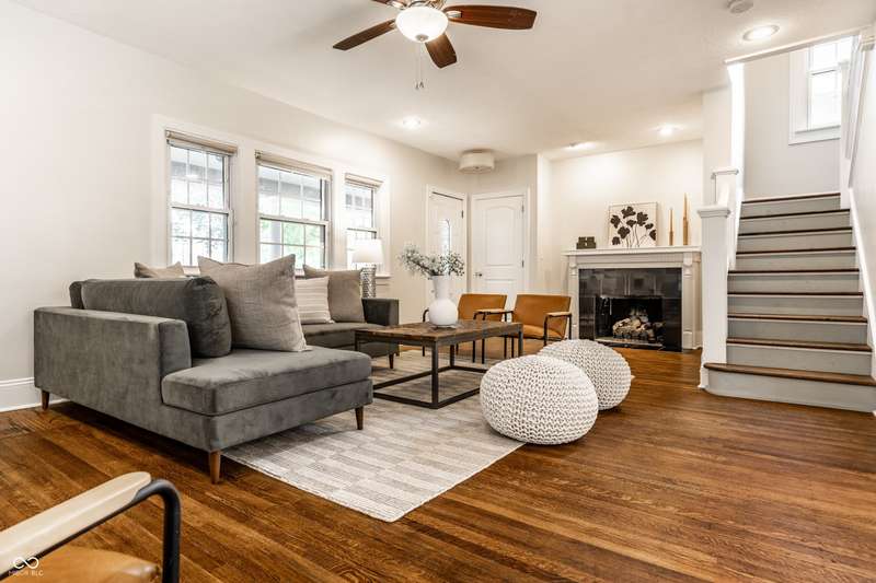 Welcome to 4619 N Park Ave, a beautifully updated 3-bedroom, 2-bath home in the heart of Meridian-Kessler. This timeless residence blends historic charm with modern comfort, featuring refinished hardwood floors, abundant natural light, and a cozy fireplace. The updated kitchen showcases quartz countertops, S/S appliances, and seamless flow into the dining area. Upstairs, the spacious primary suite offers dual vanities, dual walk in closets, complemented by two additional bedrooms and a bright hall bath. A full unfinished basement provides ample storage and future potential, while recent renderings highlight the option for a convenient half bath addition on the main level. Enjoy outdoor living on the covered front porch, back deck, and open patio, with an oversized 2-car garage offering additional storage. Ideally positioned near Butler University (4min), the Monon Trail (0.5 mi), IndyGo Red Line Transit (0.2mi) , Broad Ripple (7min), and DT Indy (15 min), this home offers effortless access to dining, culture, and community - all within reach.
