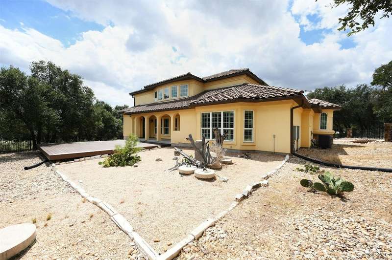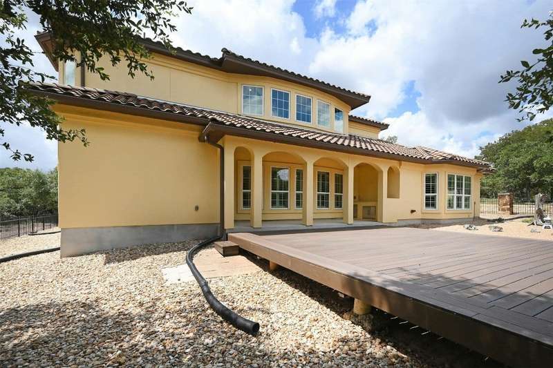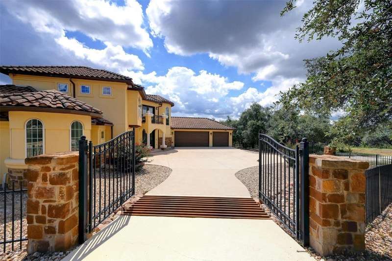 Welcome to this sanctuary! This beautiful home sits on a 7 acre lot with beautiful live Oak trees and offers full privacy. The property backs up to the shields ranch ensuring that this property will be private in the future too. 3412 sq ft open floor house features three bedrooms and two and a half bathrooms. Living room with soaring vaulted ceilings is open to a beautiful kitchen- perfect for entertainment. On the first floor you'll find a large primary bedroom and office/study. On the second floor there are two bedrooms, a bathroom and a large family/movie room. On a property you’ll find a 2400 sq. ft barn/shop. It has 30 x 30 finished air conditioned room and a full bathroom. Air conditioned space can be used as a workout room, studio or office. Use the barn as a shop, for the cars (has an oil change pit), storage for your equipment. The opportunities are endless. The property has a 20,000 gallon rainwater collection tank that contains a pump system as well as sediment filters and a UV light ensuring a constant supply of pristine water year-round. The tank was cleaned in 2021 (this needs to be done every 5-10 years). The water is naturally soft and clean. It's a very economical and low maintenance system. The owner's average water bill was $100 a month. Another great benefit is that property enjoys transferable agriculture exemption. The neighbors’ animals (2 cows, a horse and a donkey) roam the property once in a while. The property has cattle gates to the home and driveway to prevent the animals from being too close to the house and escaping the property. It's a perfect property for those that are looking for privacy, without being too far from the city and low maintenance, economical lifestyle with a tax rate of just 1.5%.