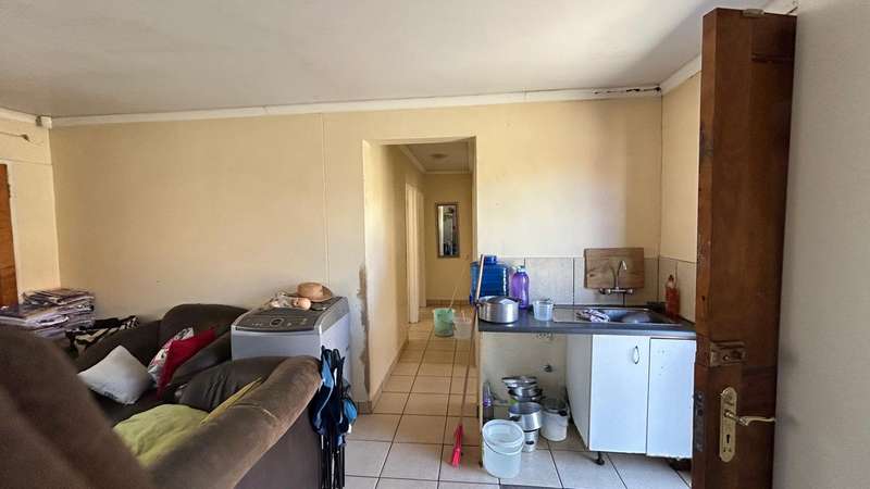 Three-Bedroom House with Spacious Yard and Secure Parking This property offers a three-bedroom house with a single bathroom, separate toilet and an outside room. The oper plan kitchen and living area provide a comfortable and functional layout. The large paved yard offers ample parking space and room for a garden. The yard is fully enclosed with walls and secure, locked gates, ensuring privacy and safety. The property is also situated in a secure area for added peace of mind.