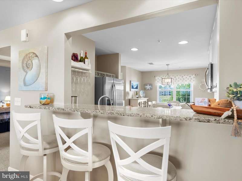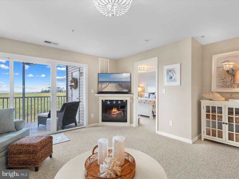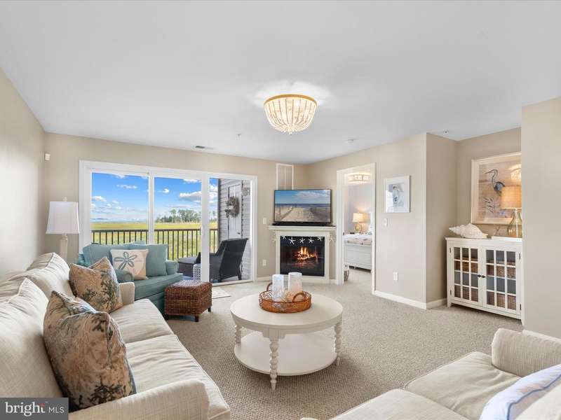 Welcome to one of the best views in Bethany Bay from this beautiful, furnished second-floor condo with garage. Tastefully decorated in a coastal color palette, this move-in ready retreat captures million-dollar views of Indian River Bay, the wetlands, and spectacular sunrises right from your primary bedroom. The spacious living room features a corner gas fireplace and coastal chandelier, where you can relax while taking in ever-changing scenes of wildlife and water. The kitchen is designed for both style and function with white cabinetry, granite countertops, stainless steel appliances, ceramic tile flooring, and a large dining area that easily accommodates six. Thoughtful lighting throughout the home adds a warm touch. The primary suite offers an en suite bath with upgraded vanity countertops, while the guest bedroom enjoys private access to the hall bath, perfect for visiting family and friends. Outdoor living is just as inviting, with a front deck for sunny afternoons and a rear screened porch with marsh views, plank-style flooring, and a storage closet-ideal for enjoying morning coffee, evening drinks, or the brilliant sunsets. The garage provides ample space for beach gear, bikes, fishing poles, golf clubs, or even an extra car, making it as practical as it is beautiful. Bethany Bay remains one of the best-kept affordable waterfront secrets in the area, offering first-class amenities and just minutes from Bethany Beach and its attractions. Sold fully furnished with only minor exclusions, this turnkey property is ready for you to enjoy from day one. Visit today and prepare to fall in love!