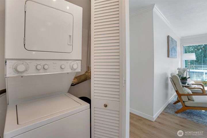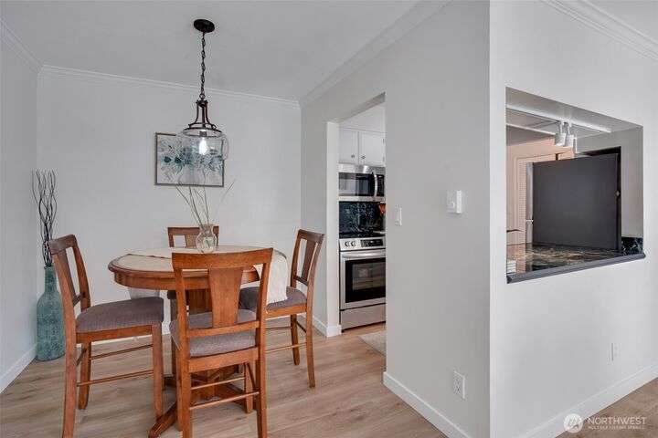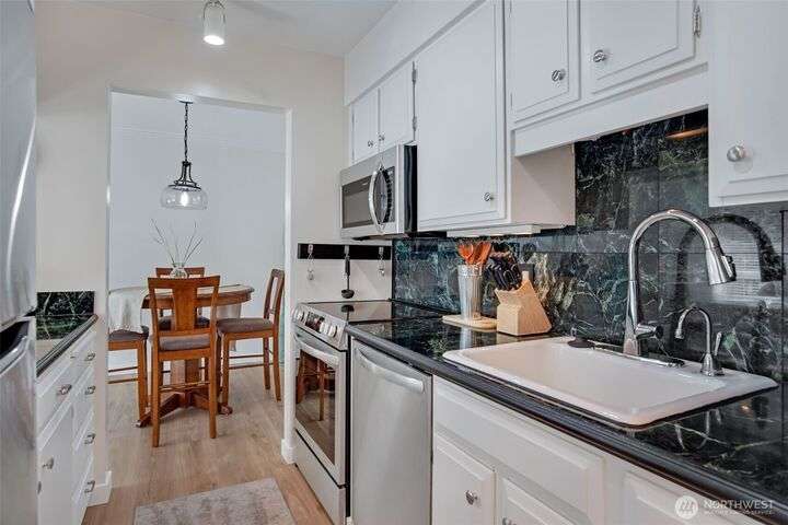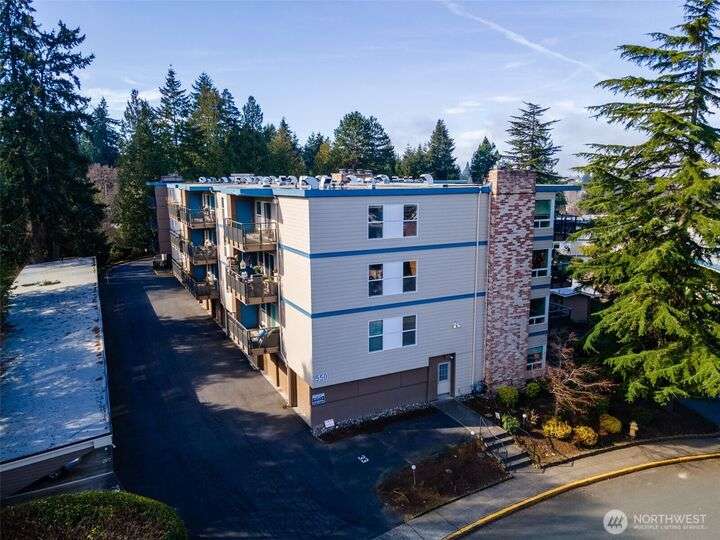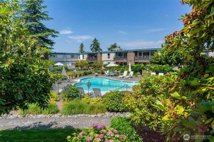 Super cute, impeccable 2 bedroom, 2 bathroom condo close to downtown Edmonds in Highland Park. This condo is in the south building and on the top floor so it’s quiet and peaceful, looking out onto a gorgeous greenbelt. The complex has beautiful landscaping, a heated pool and has been well maintained. Condominium has spacious living room with separate reading nook, dining area, kitchen has stainless steel appliances and granite tile counters. Big primary bedroom has lots of closet space. New flooring installed throughout. Unit has a Washer/Dryer, two storage units, and a large deck. 1 car carport, lobby entrance, and elevator. Pet friendly for up to 2 pets, under 20 lbs each. Close to everything Edmonds has to offer!