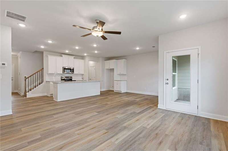 Lot 60- Weston Middle Unit- Ready early September- Welcome to the Weston Floor Plan-a beautifully designed townhome offering timeless style and modern comfort. This all-brick front home delivers energy-efficient all-electric living paired with thoughtful design throughout. Step inside from the charming covered front porch into a warm and welcoming foyer. The open-concept main level seamlessly connects the kitchen, dining, and family room, creating the perfect space for entertaining or everyday living. Enjoy smooth surface flooring, a ceiling fan in the family room, and access to a covered rear patio-ideal for relaxing, container gardening, or creating your own peaceful retreat. A convenient powder room and two-car garage complete the main level. Upstairs, you'll find three spacious bedrooms and two full baths, including the standout Weston primary suite. Enjoy a tray ceiling, ceiling fan, and an oversized walk-in closet that connects directly to the laundry room for added ease. The primary bath features a double vanity and a window for beautiful natural light each morning. Modern features, smart layout, and stylish details make the Weston a perfect place to call home. Don't miss your chance to tour this brand-new floor plan in one of Dacula's most exciting communities!