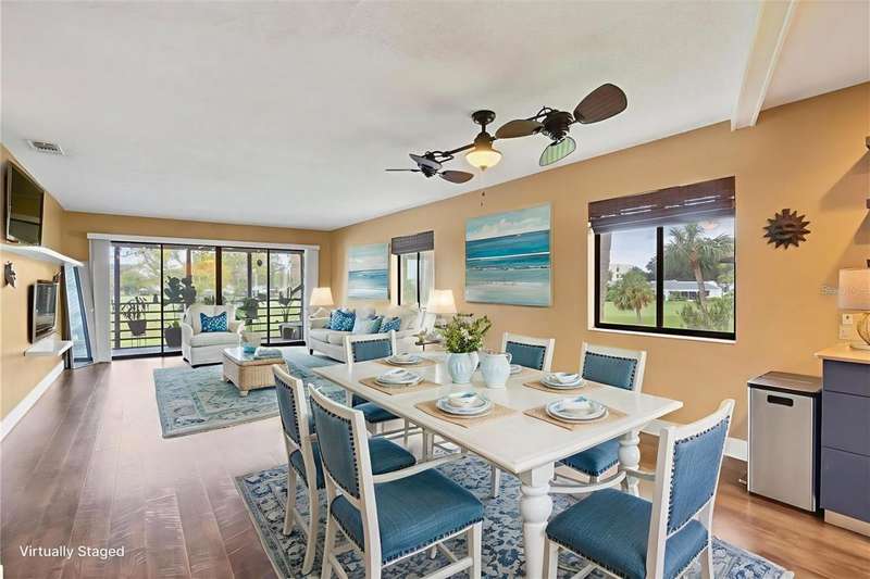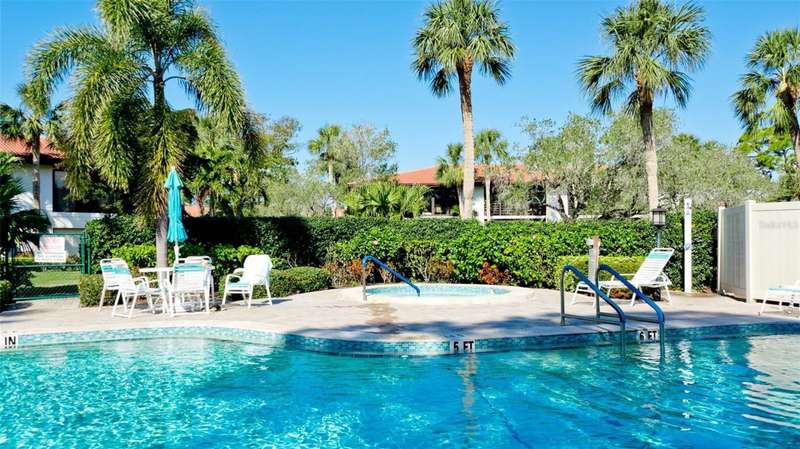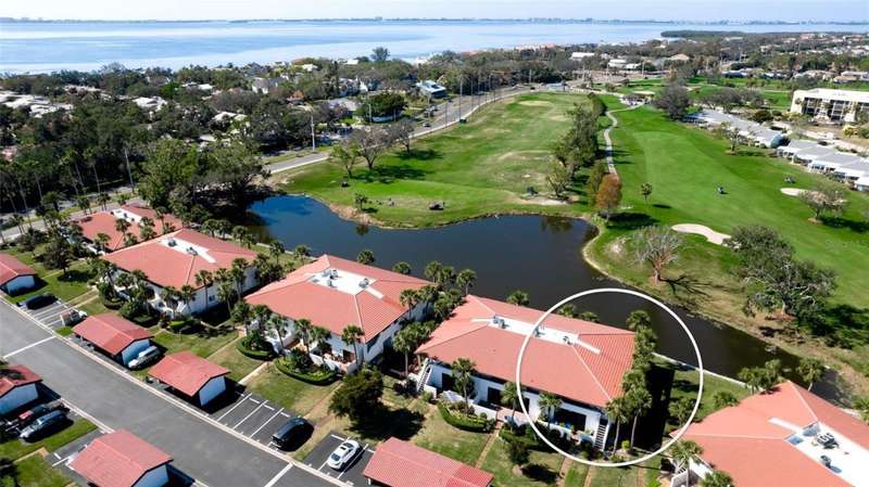 One or more photo(s) has been virtually staged. IMG GOLF COURSE CONDO WITH LAKE & FAIRWAY VIEWS! The CORNER LOCATION offers additional windows for an expanded view and more natural light. The benefits of living upstairs are a better view, quieter, more privacy, greater security, and a lovely breeze when sitting out on the lanai for that morning or evening beverage. Popular light gray color carried through the quartz kitchen counter, subway backsplash, and painted walls. There is an attractive mix of mahogany plank flooring with contrasting contemporary cabinets. In the kitchen, STAINLESS STEEL APPLIANCES AND RECESSED CEILING LIGHTS. The floor plan creates TWO MASTER SUITES, each with private direct access to the bathroom. The bathrooms are updated with pedestal sinks and Travertine marble flooring. The neighborhood pool & hydrotherapy spa help relax the body after a fun day enjoying the EL CONQUISTADOR RECREATIONAL LIFESTYLE. The IMG Country Club is semi-private. It has a restaurant with a scenic view over Sarasota Bay. The United Tennis Academy offers an active tennis program at reasonable rates. There are miles of sidewalks for walking and a bicycling lane along the El Conquistador Parkway Extension - which is a shortcut to the Gulf beaches and great seafood restaurants in the historic Village of Cortez. READY FOR IMMEDIATE OCCUPANCY! No CDD fees.