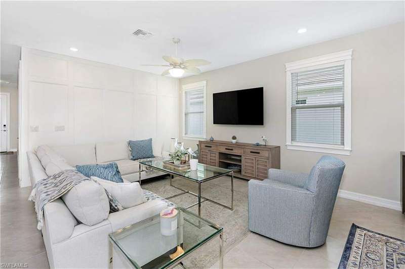 Available Starting May 2025, Nestled in the heart of South Naples, Naples Reserve is a gated community that captures the essence of Florida living. With its grand entrance and waterfront views, this vibrant community offers a casual, fun-filled lifestyle. Surrounded by 22 lakes and nature preserves, Naples Reserve is as breathtaking as it is serene. The newly built Island Club features a tiki bar, cafe, and resort-style pools, making it the perfect spot to unwind. This exquisite heated pool home offers a spacious, modern floor plan with stylish upgrades throughout. From sleek light fixtures to new tile flooring and contemporary furniture, you'll feel right at home. The master suite includes a king-size bed, large flat-screen TV, and stunning lake views from the lanai. Two guest rooms, each with a queen bed and TV, share a full bathroom. Enjoy dining with family and friends at the table for six, or relax by the pool overlooking the lake. Cable and internet are included. Available for summer rental starting May 2025. Don't miss out on the opportunity to experience this gorgeous home in a fantastic community! Note: The property is already booked from January to April 2025.