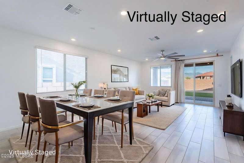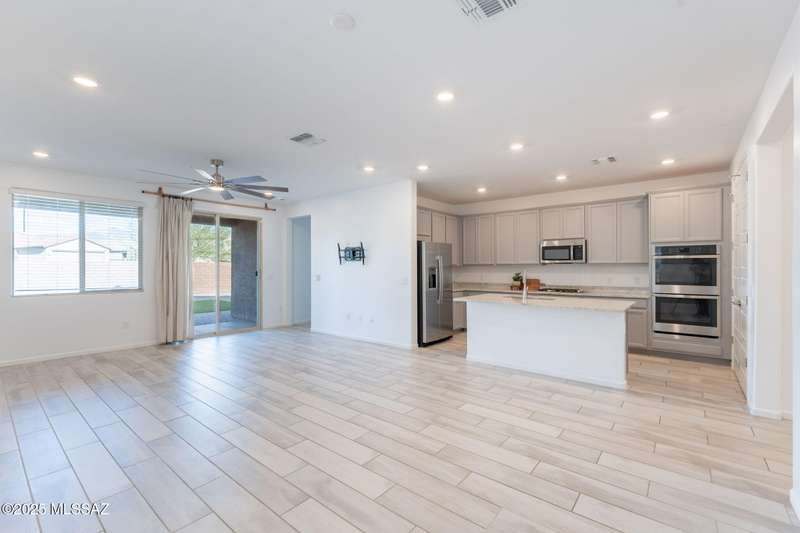 This 3 bedroom, 2 bath home offers stunning mountain views and backs to a common area for added privacy with no rear neighbor. The kitchen features double ovens, granite countertops, and abundant cabinetry, while the 3-car tandem garage provides space for vehicles, toys, or a workshop. Enjoy a fully landscaped backyard with views of the iconic Rocking K water tower. Just steps from Vail School District's newest award-winning K-8, and minutes from Davis-Monthan, Raytheon, shopping, and dining--this home blends comfort, convenience, and location.