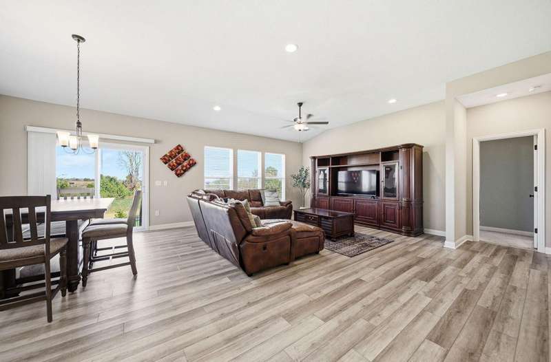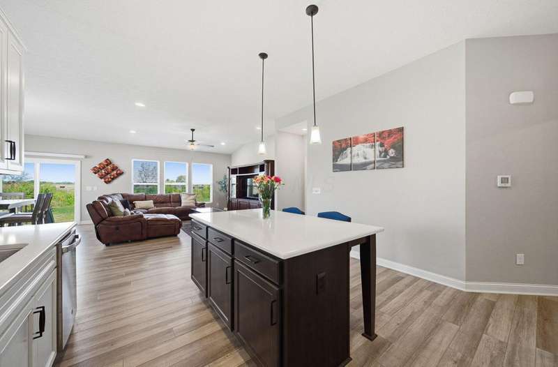 Some homes invite you to slow down the moment you step inside. This one makes you want to stay awhile. ''The Back Nine'' sits on one of Foxfire's most sought-after lots, where a pond stretches toward a nearby horse farm and the sounds are wind, water, and the occasional golf cart. |+| Built by M/I Homes in 2021, this single-story plan delivers 1,840 sq ft of open living space plus a large basement ready for your next project. Inside, more than $55,000 in upgrades show up everywhere, from quartz kitchen counters and soft-close cabinets to LVP flooring and GE appliances. Nine-foot ceilings and an open layout connect the kitchen, dining, and living room so conversation flows as easily as sunlight. |+| Mornings feel unhurried in the kitchen, coffee steaming on the island while ripples move across the water. Evenings drift to the patio, where a chair turns toward the pond, and small talk turns into real conversation. Indoors, the living room keeps everyone within reach for game night, a favorite movie, or a quiet read when the house finally goes still. |+| The primary suite is tucked away at the back with a cathedral ceiling, a walk-in closet, and a private bath. Two additional bedrooms and a second full bath keep guests comfortable without crowding your routine. Laundry lives on the main level, and the two-car garage adds everyday ease. |+| Out back, the concrete patio faces open sky and water instead of rear neighbors. It is the spot for sunrise reflections, a glass of something at dusk, and the kind of exhale that lingers after the day ends. When you are ready for company, the neighborhood pool, clubhouse, park, and a quick round of golf at The Player's Club are moments away. |+| Homes with this view rarely come back on the market. ''The Back Nine'' is where the best round begins, with calm mornings, slow evenings, and a lifestyle that keeps getting better.