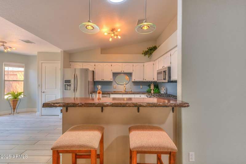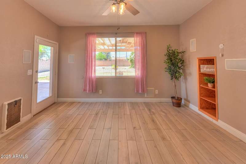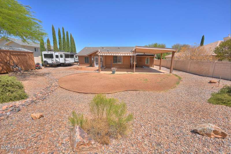 YOUR SEARCH IS OVER! Welcome to 3456 Rosburg St in the sought after Pueblo del Sol Country Club Estates! This beautifully updated 3 Bedroom 2 Bath home offers 2,017 sq. ft. of stylish living space with an open floor plan, high vaulted ceilings, and modern updates throughout. Enjoy peace of mind with upgrades completed from 2018-2025, including the kitchen, bathrooms, flooring, lighting, professionally painted cabinetry, HVAC, water heater, and roof. The spacious backyard features a huge covered patio with stunning mountain views, a large yard with plenty of space for gardening or outdoor relaxation and even a big shed/workshop for storage or hobbies, plus an extended pad for RV parking!