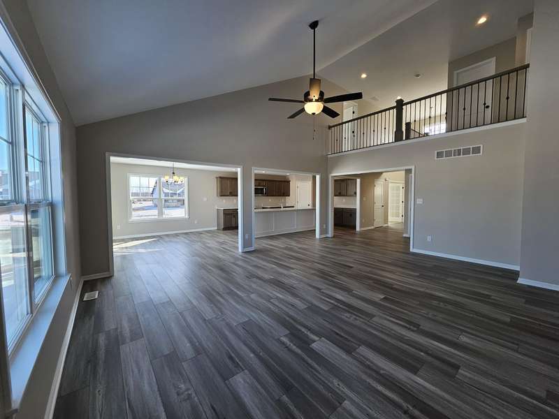 NOT YET BUILT, this is our WALTON 2 model. Features include an open concept living area, spacious great room with vaulted ceiling, kitchen has maple cabinetry with crown molding, soft close doors and dovetail drawers, large breakfast bar with seating, granite counters, and a walk-in pantry. Additional features include a dining area with immediate access to rear patio through sliding glass doors, Primary MAIN FLOOR BEDROOM with ensuite bath, tray ceiling, and walk-in closet, main level flex room (5th bedroom) has an option for FRENCH DOORS, and separate main level LAUNDRY. Upstairs are two additional bedrooms EACH WITH WALK-IN CLOSET, full upper level bathroom, and cozy loft area. Also included is a FULL BASEMENT (stubbed for future bath), full LANDSCAPE PACKAGE, concrete patio, attached garage with openers installed, and BUILDER WARRANTY. Many options for customization of our 18 floor plans are possible to include structural changes such as a 3 car garage, 5' garage extension, slab, or basement options, as well as for other finishes such as for a fireplace, custom tile shower, exterior masonry, etc. Photos are of a previously built home.