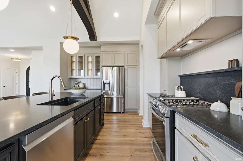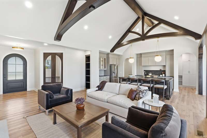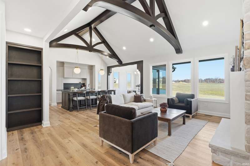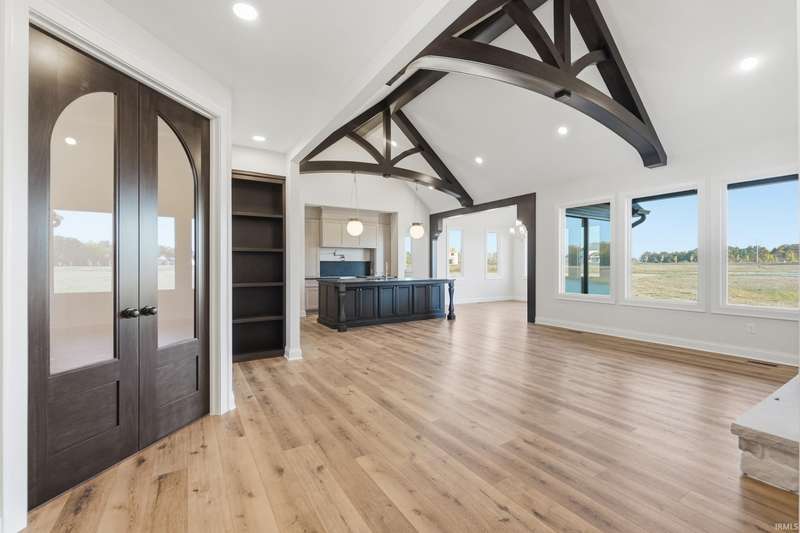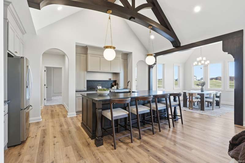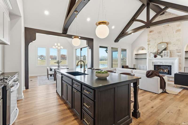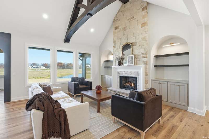 Every detail tells a story of craftsmanship in this custom-built masterpiece by Preston Allen Homes. Nestled on a picturesque pond lot in The Villages of Arneo, Fort Wayne’s newest and most visionary community, this home blends architectural elegance with everyday livability. This 3-bed, 2-bath + bonus room residence showcases thoughtful design and curated finishes throughout — from the exposed ceiling beams and built-in bookshelves to custom cabinetry and statement lighting. The stunning kitchen features a walk-in pantry, quartz surfaces, and designer fixtures that perfectly balance beauty and function. A dedicated office with built-ins offers a private workspace, while the mudroom with bench and shelving adds convenience and character. The owner’s suite feels like a retreat with floor-to-ceiling wainscoting, an elegant ensuite bath, and serene pond views. Beyond your front door lies The Villages of Arneo — a one-of-a-kind master-planned community designed for connection and lifestyle. Enjoy tree-lined streets, walking trails along the river, golf-cart paths, and future town-center amenities including dining, coffee shops, fitness facilities, and green spaces. It’s a place where luxury living meets community spirit. Discover the beauty of craftsmanship and the promise of a new kind of neighborhood — welcome home to Arneo. **Irrigation to be installed. Sod in front & grass/seed for the backyard coming soon**