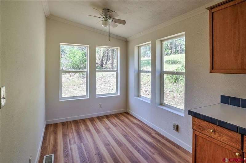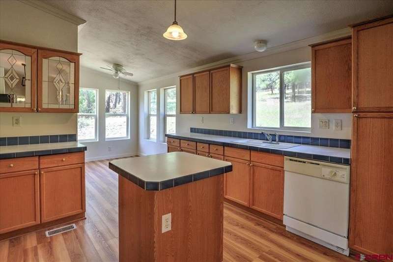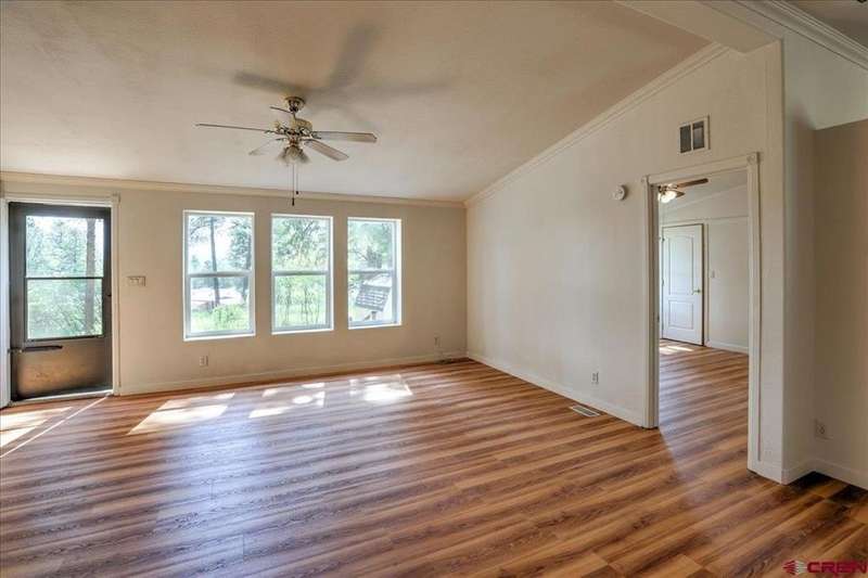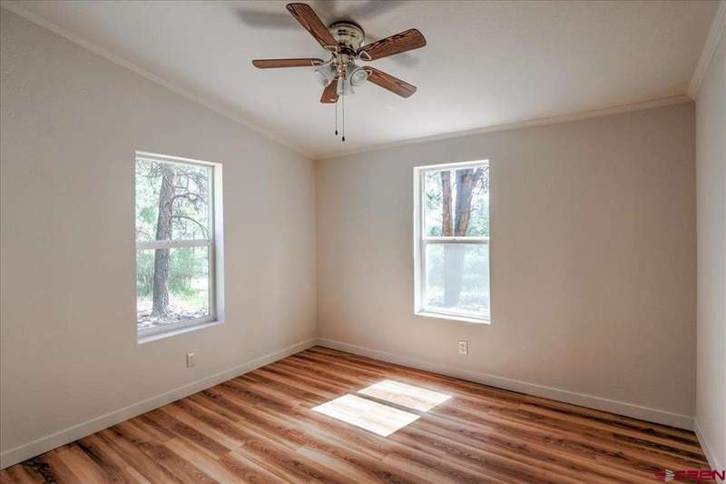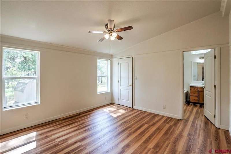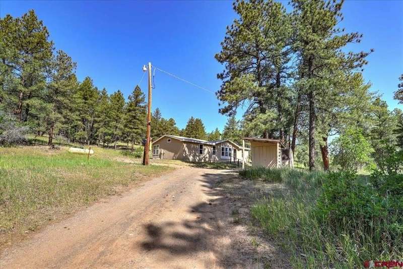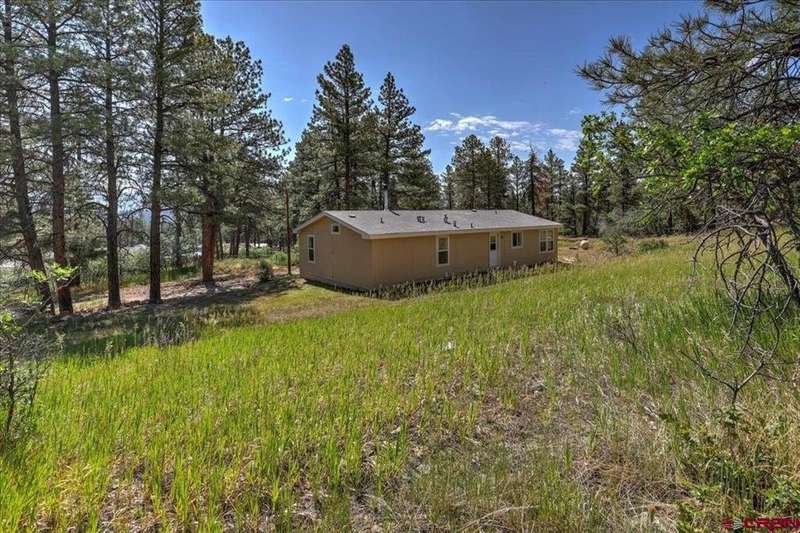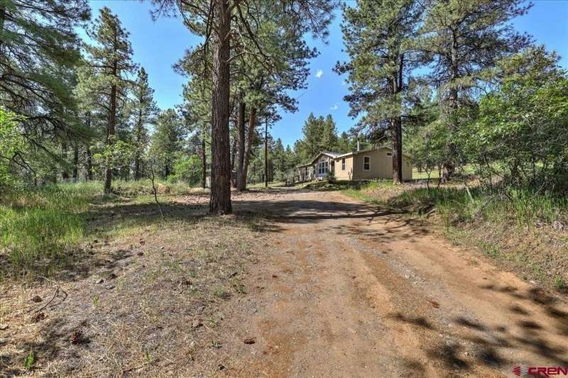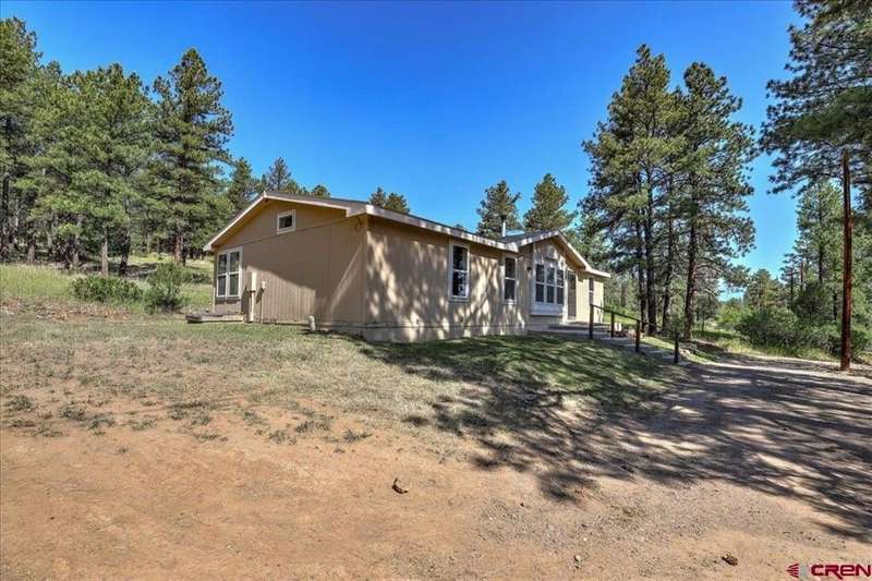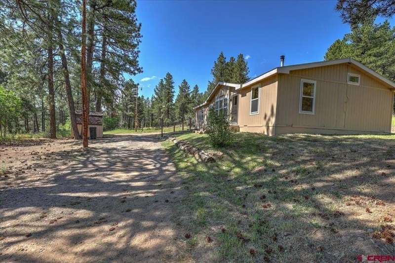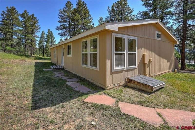Brent Christians, Galles Properties, C: 970-759-6844, brent@gallesproperties.com, www.GallesProperties.com: Welcome to 29 Baldwin Court! Located in the Rock Ridge subdivision, this 3 bedroom, 2 bathroom manufactured home sits on 3.1 wooded acres with mature Ponderosa pine trees. The home was just remodeled including new paint inside and out, new laminate flooring throughout, and a new range and refrigerator. A new 500 gallon propane tank (leased) has just been installed as well. Enjoy the open and bright living room, complete with large windows and a gas log fireplace. The split bedroom floor plan allows for privacy between the primary suite and guest bedrooms. The primary ensuite has a walk-in closet, and bathroom complete with 2 vanities, and separate tub and shower. Two sheds on the property provide additional storage. There is also an RV hook up, complete with water, sewer, and electric for your own RV or for guests. Located close to downtown, this 3+ acre property is close to many amenities yet provides a feeling of privacy. Vacant and easy to show.