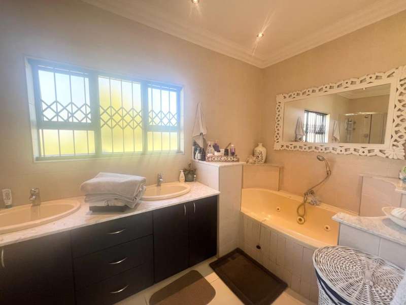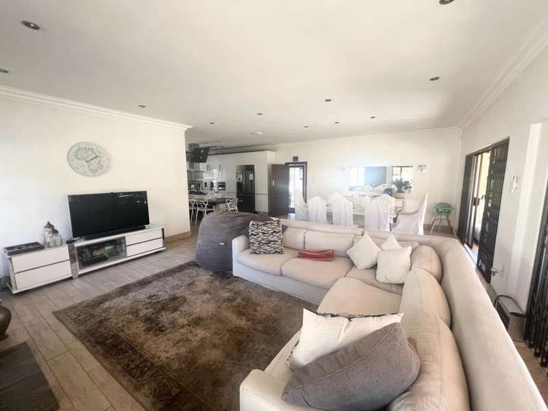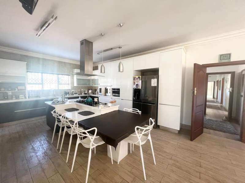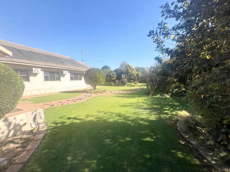 This elegant 4 bedroom, 3 bathroom home boasts everything from modern and practical, perfect for entertaining guests or enjoying family gatherings. With a sunroom overlooking the breathtaking garden space. This home offers both indoor and outdoor living spaces for the whole family Featuring 8 garages and 2 double carports, ample parking space is provided for vehicles and storage. The hightlight of this residence is its inviting swimming pool, and garden space which is ideal for those summer barbecues and poolside parties. Ensuring piece of mind the property is well equipped with security. Equipped with solar panels for the pool, CCTV, borehole for backup water, alarm system, electric fencing is all at your convenience. Additionally, a charming massive garden all around the house adds to the property's appeal, providing a tranquil environment. The kitchen is fitted with modern white cupboards, a middle isle, and marble tops and leave you with a touch of style and functionality. This home combines luxury, comfort, and practicality for a truly exceptional living experience.