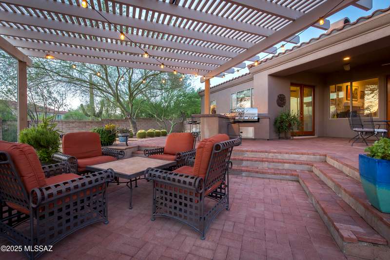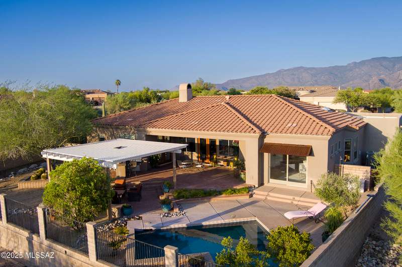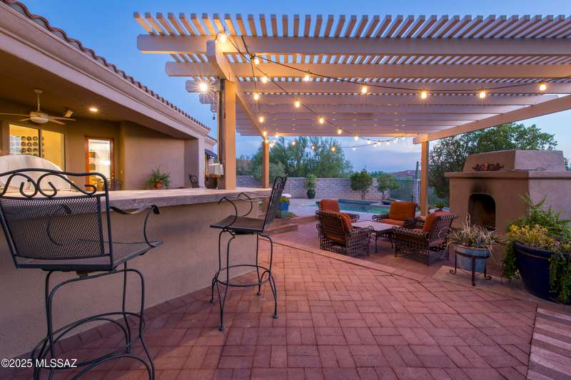 New price reduction! This is no ordinary house. This is an extraordinary home; resonating with celebrations of life, family and friends. As you pass through the front entrance, your gaze immediately encounters the bright open space of the large living room with fireplace and glass doors leading outside. Then there is your second living space; an outdoor venue with a crystal pool, bar on the veranda and a magical entertaining pit surrounding a 2nd fireplace. This versatile living space also offers a foodie-paradise kitchen, with extra-large refrigerator, gas cooktop, granite countertops and prep island that opens into a great room while bringing the outdoors in for true Arizona living.