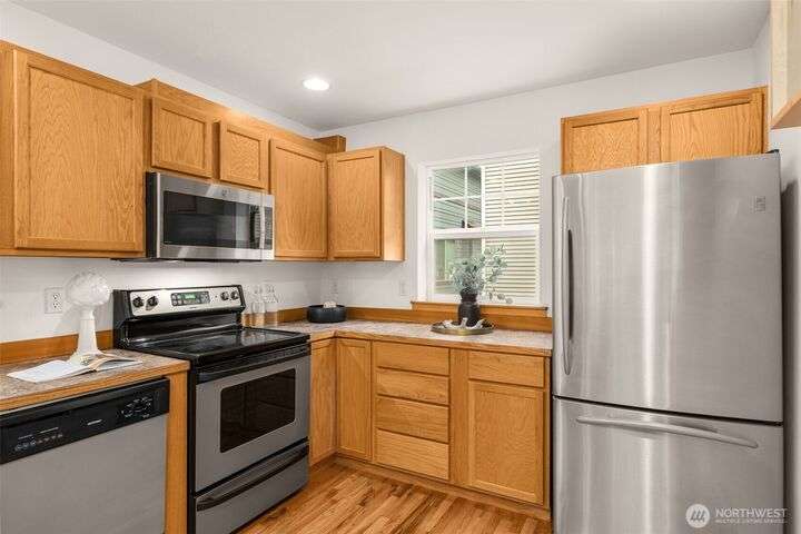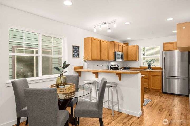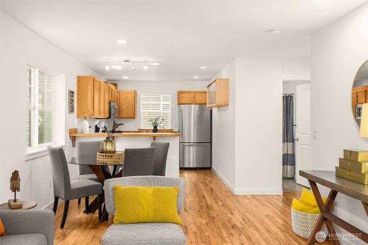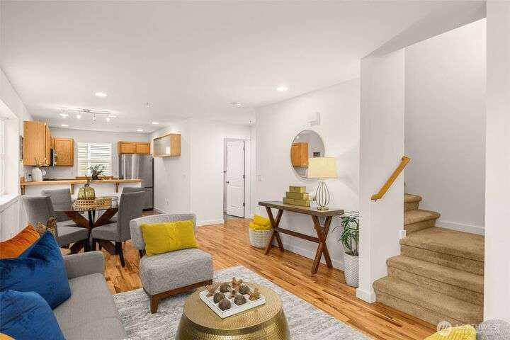 Sunshine, space, and zero HOA dues—yes, please! This light-filled corner townhouse lives large with real hardwood floors just refinished to perfection, fresh paint throughout, and spacious bedrooms that feel like a true retreat. The open main level offers great flow and natural light, creating an easy, comfortable vibe from morning to night. The private patio is your new favorite spot for coffee catch-ups, summer dinners under the string lights, or a quiet evening unwind. Enjoy the ease of garage parking and a low-maintenance lifestyle close to Lake City’s cafes, parks, and transit. Perfect for anyone looking for easy living or a smart investment—this one checks all the boxes and then some.