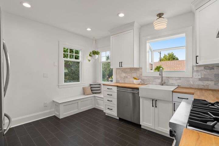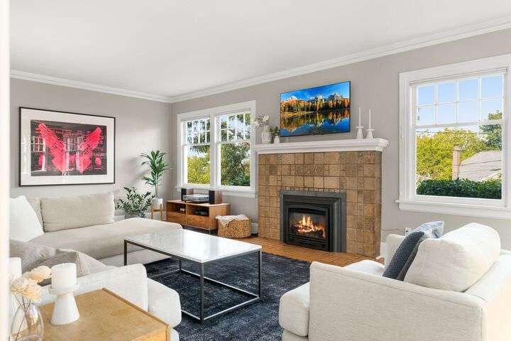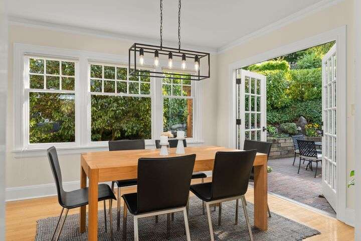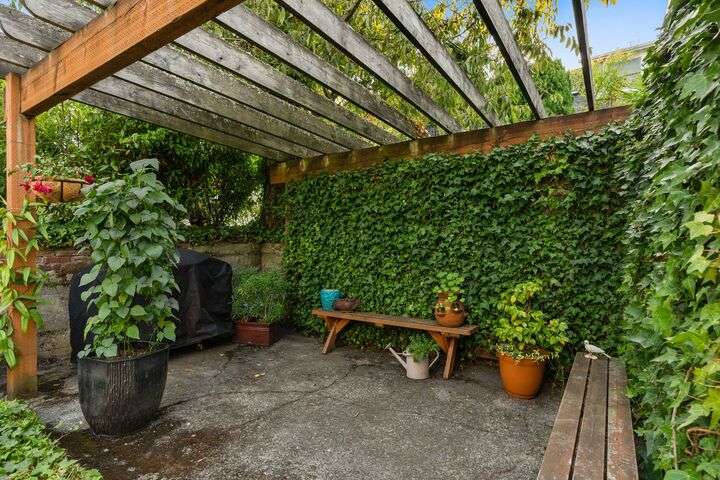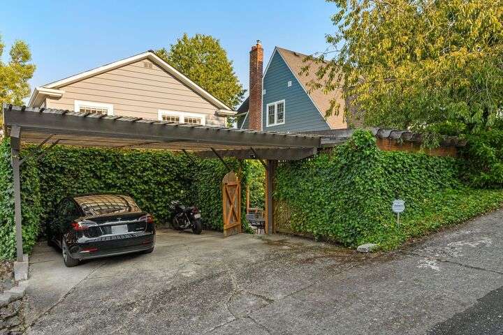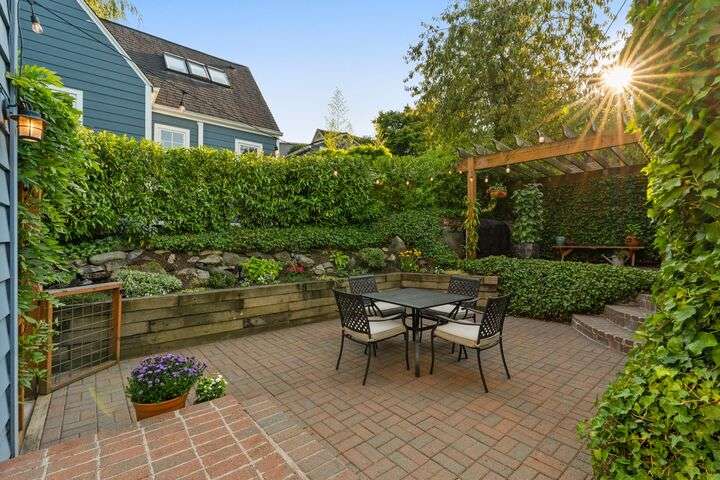 Perched above the street, this home feels like a private retreat in the heart of Queen Anne. Sunlight fills every room through generous windows, creating a warm, inviting glow. The spacious living rm is cozy with gas fireplace & all 3 bedrooms on the same level for ease & comfort. French doors open to a charming back patio where twinkle lights & lush greenery create the perfect setting for outdoor dinners or casual get-togethers. The landscaping is as thoughtful as it is beautiful, w/year-round greenery & flowers blooming in every season. The elevated setting offers rare privacy & quiet, while the alley carport adds everyday convenience. Walk to QA cafés, restaurants, with Fremont just a short stroll away. Life here feels quaint & peaceful.