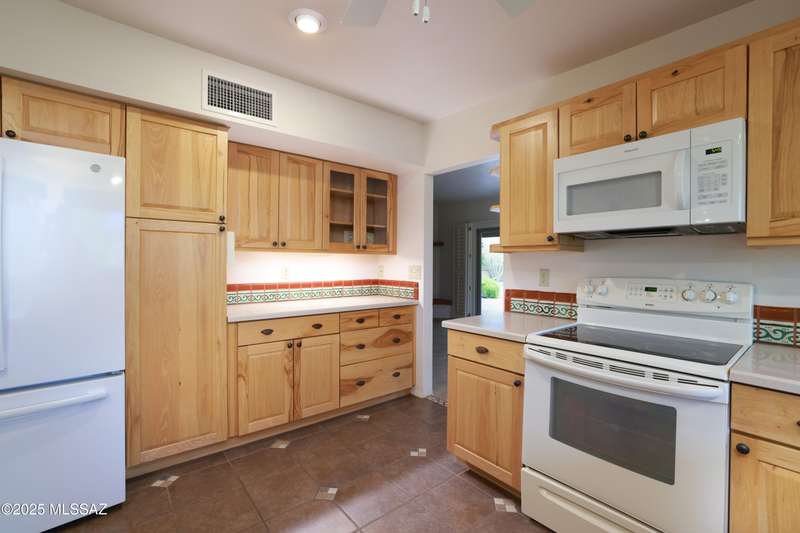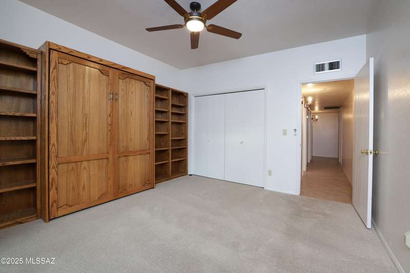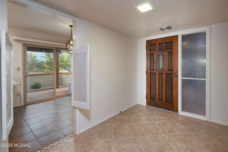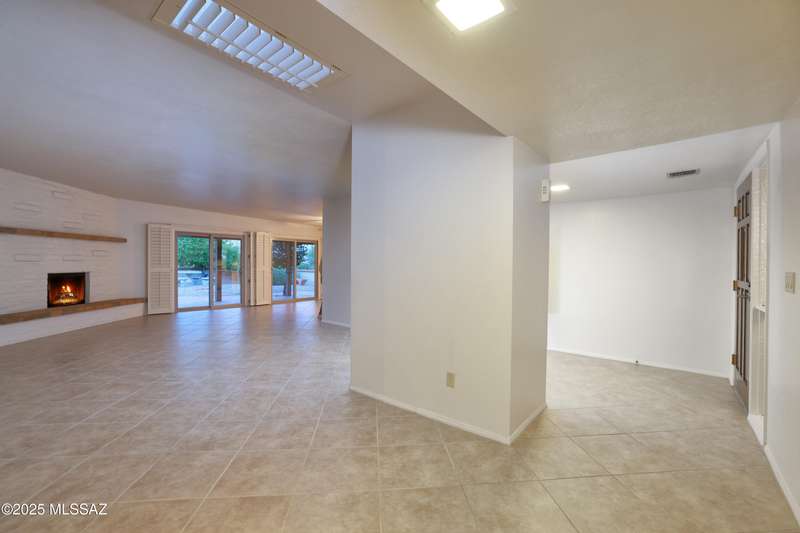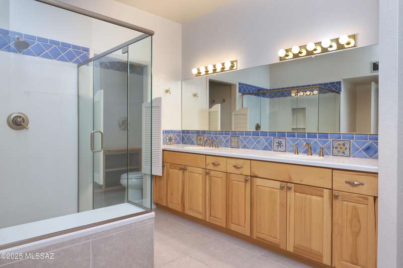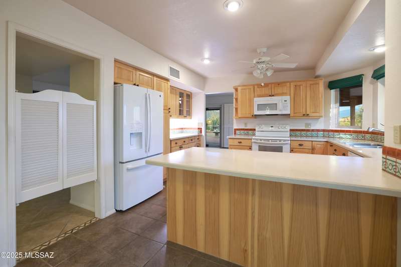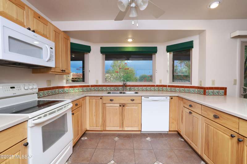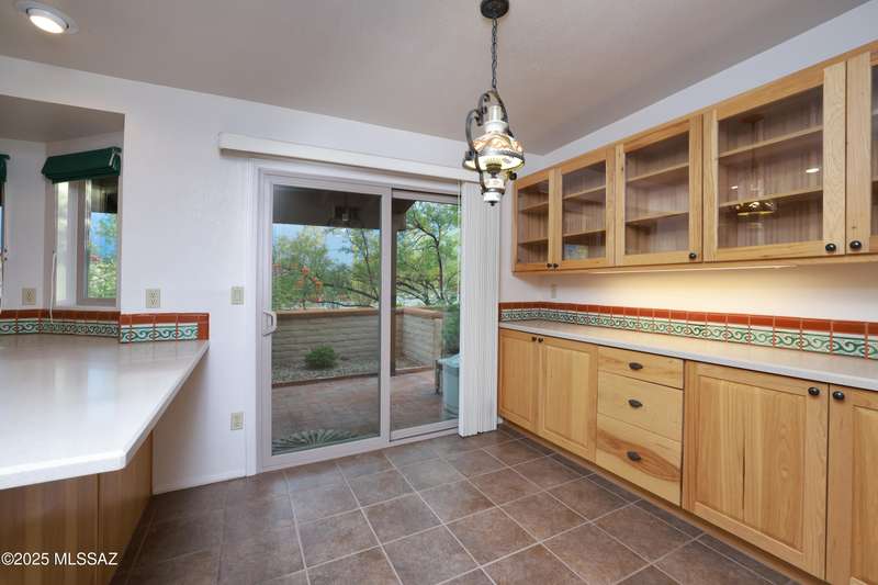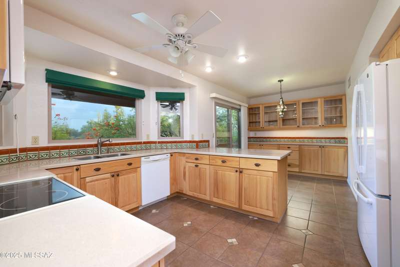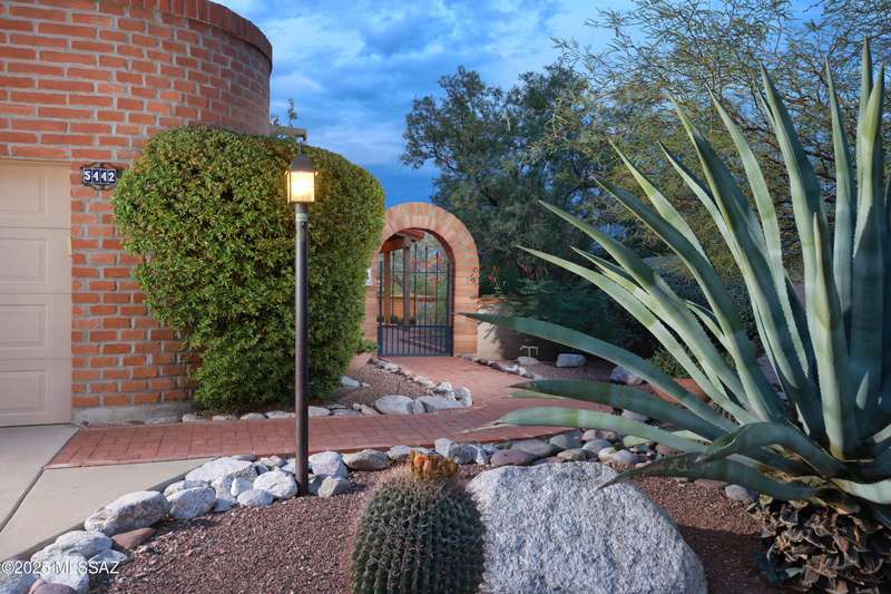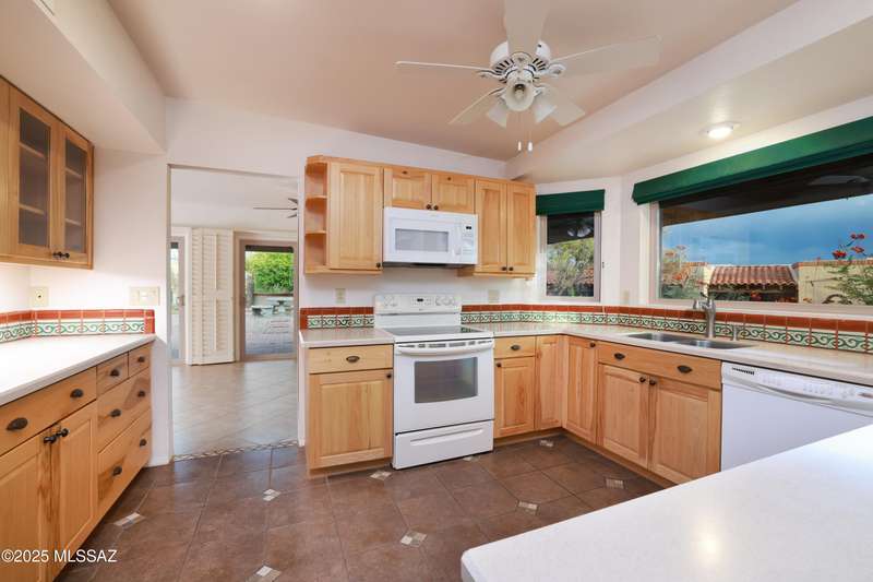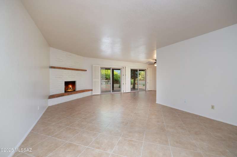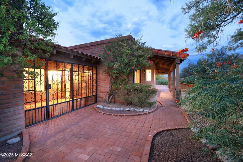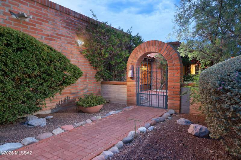 Beautifully remodeled Miramar with a coveted east facing back yard with wrap around patio sitting atop one of Fairfield's highest ridges with unobstructed panoramic views of the natural desert canyon, Catalina and Rincon Mountains. A gated courtyard entry greets visitors, bright and cheerful natural light throughout, huge primary suite with gorgeous bath and patio access, open floor plan with a wood burning fireplace in great room, large eat-in kitchen with tons of storage, spacious garage with built-in storage. Located across the street from the community pool.