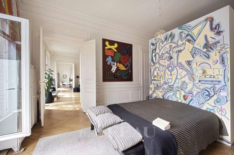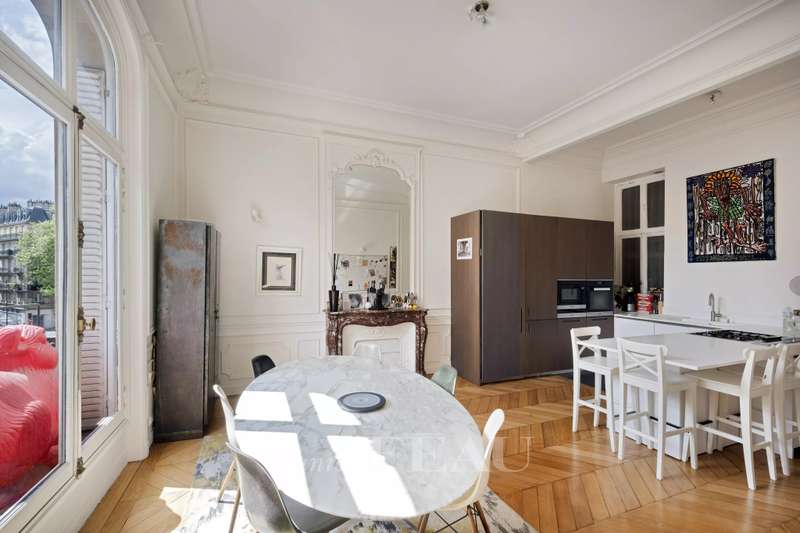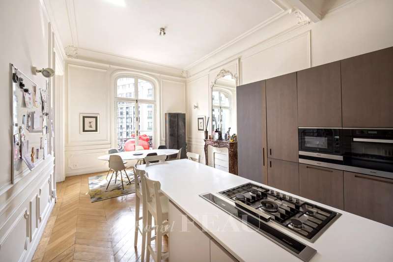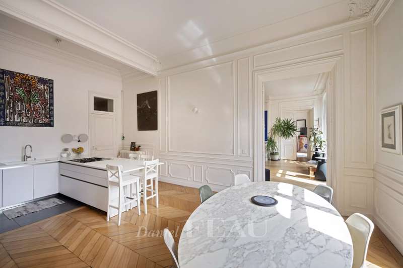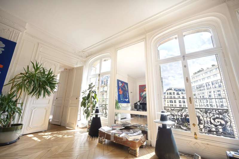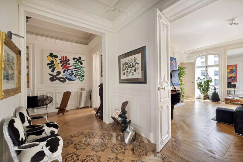 A stone's throw from Parc Monceau and the Jacquemart-André Museum, on the 2nd floor of a luxury Haussmannian building. 266m² apartment facing south with unobstructed views. Entrance gallery leading to a living room, kitchen, dining room, master suite, three bedrooms, an office, two bathrooms, a shower room, and a laundry room. Ceiling height: 3.80m A large cellar complete with good features. Old-world charm (wooden floors, moldings, and fireplaces, etc.) Professionals are permitted in the condominium (two separate entrances are possible). Close to shops and renowned international schools