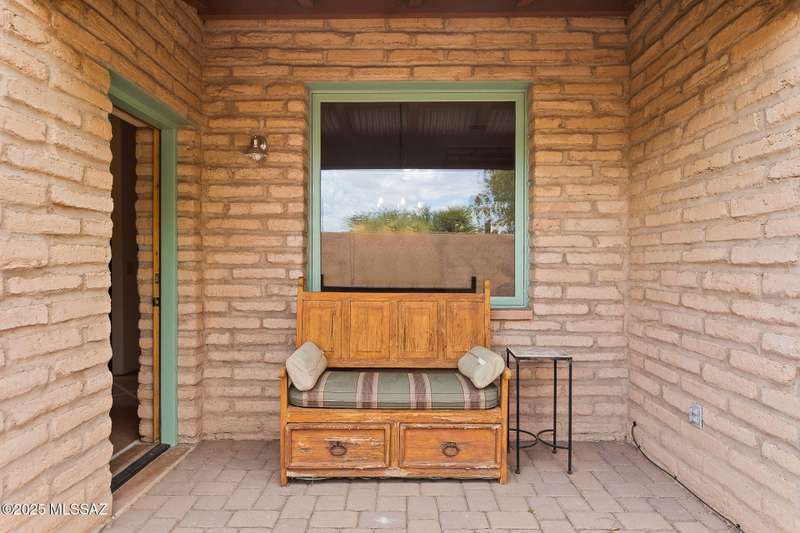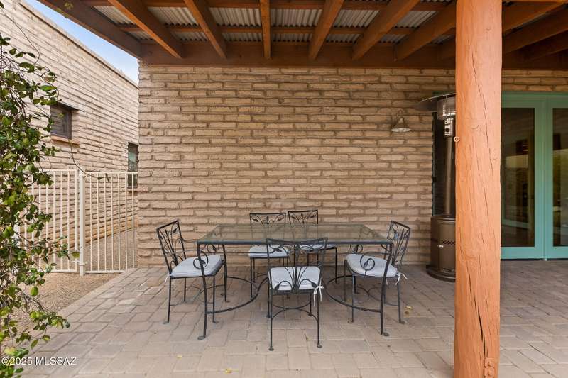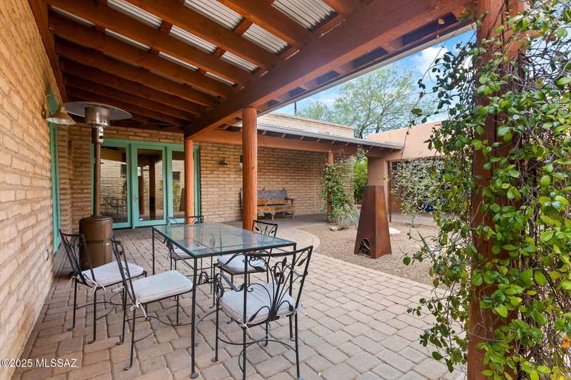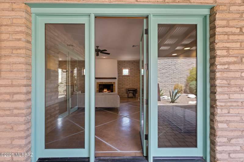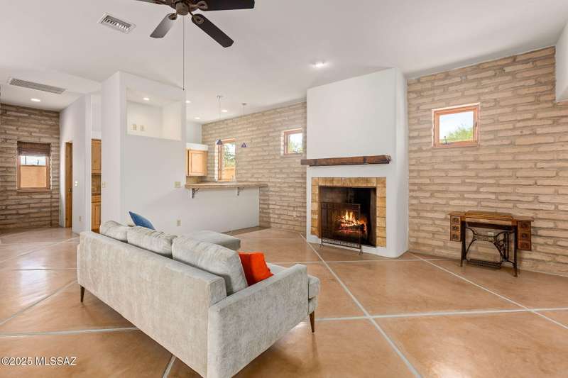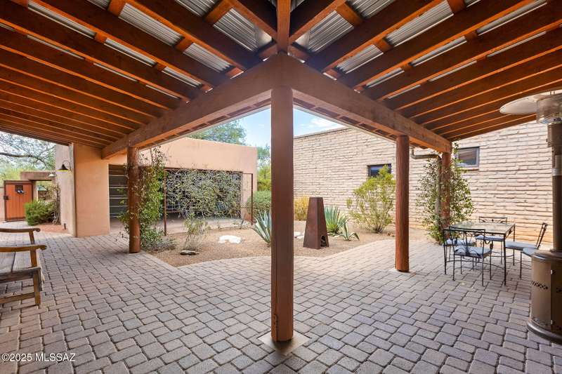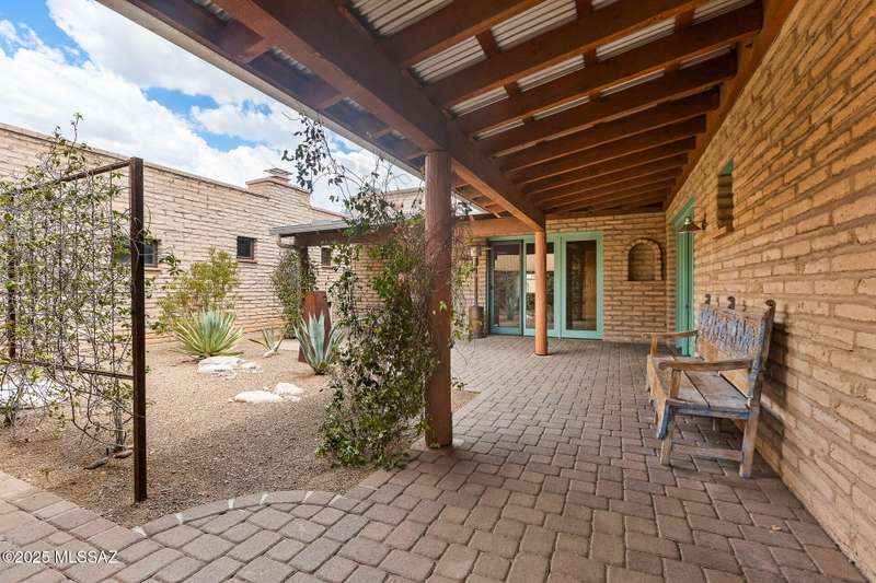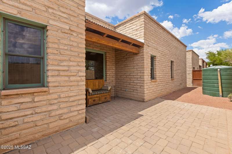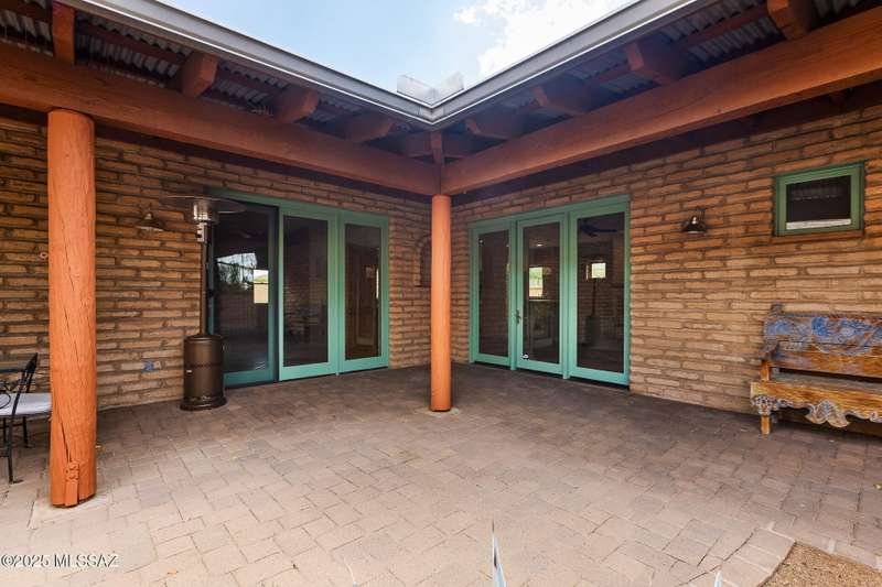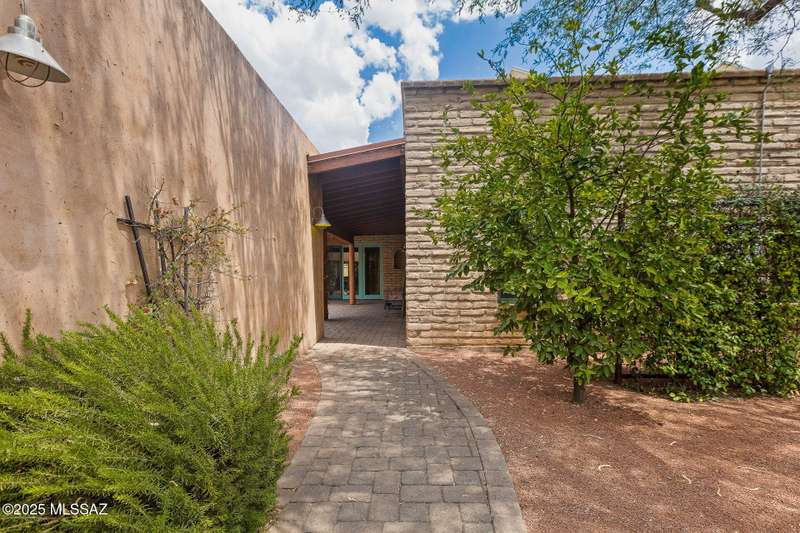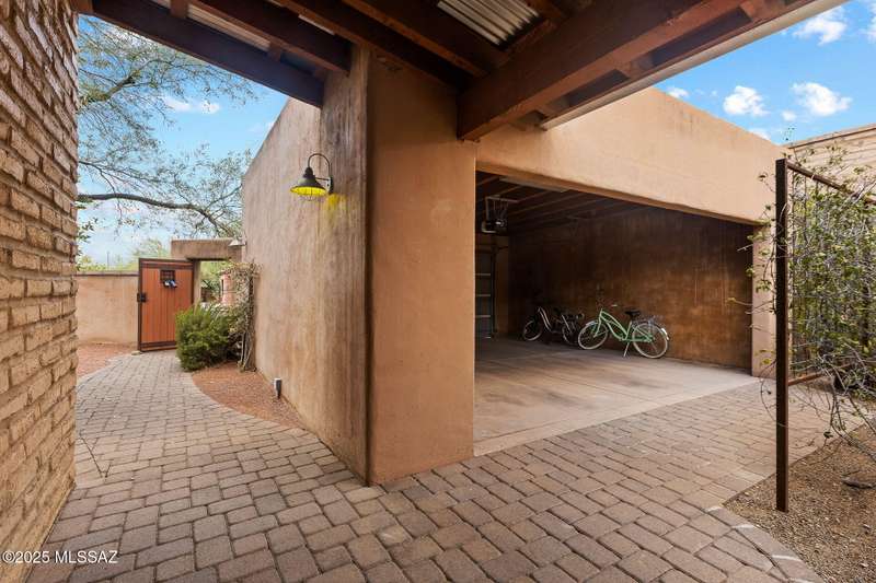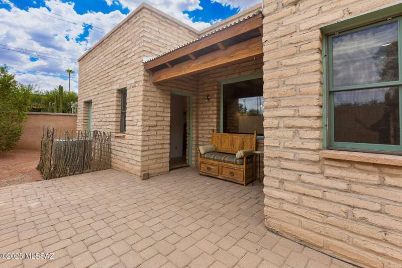 Avia Ricca, an exclusive haven in the center of town offers Old Pueblo architectural tradition with modern sophistication and convenience. This inviting 3 bedroom/2 full bath home offers a contemporary open floorplan integrated with historic charm & warmth. Quality built authentic stabilized mud adobe construction, concrete floors, high ceilings, solid alder cabinets & doors throughout, stainless appliances, large pantry, wood-framed windows & Pella exterior doors. Enter the front courtyard through a beautiful mesquite wood gate and follow the paver path to the spacious, bright & airy central courtyard. Glass doors encircling the courtyard bring the outdoors in to the great room & primary suite. Paver driveway, metal-clad garage door, rainwater harvesting system & PRE-PAID owned solar!