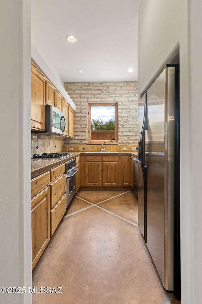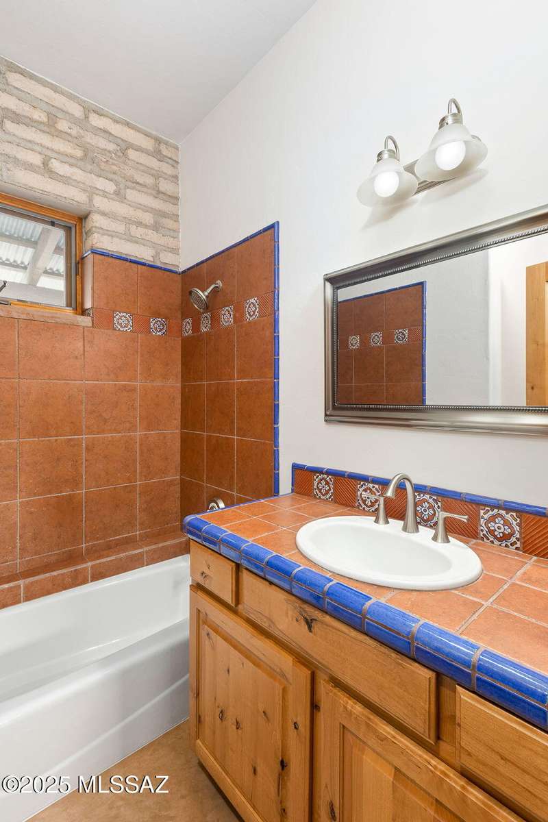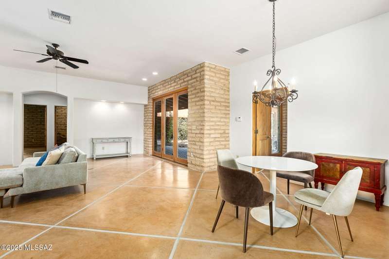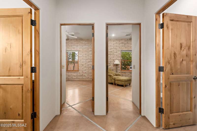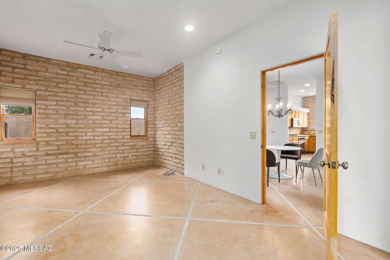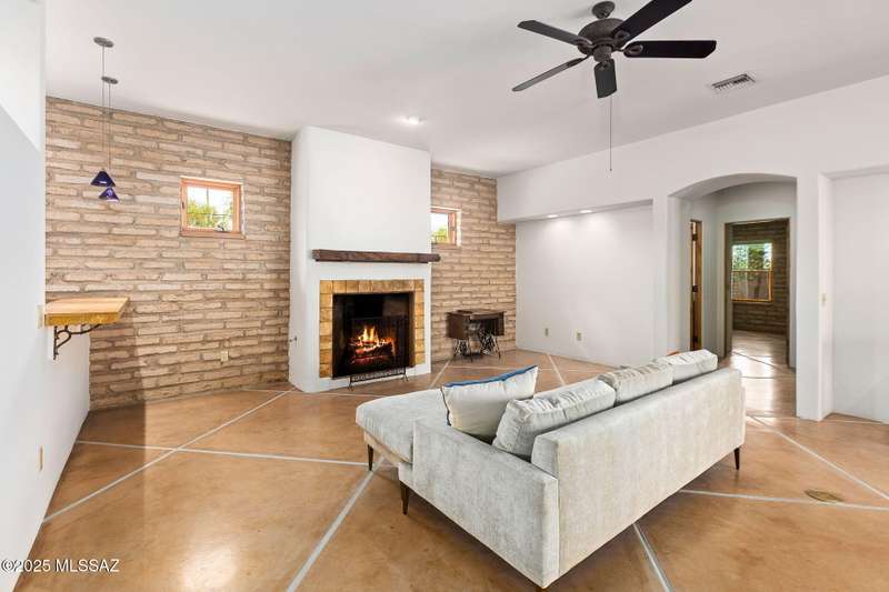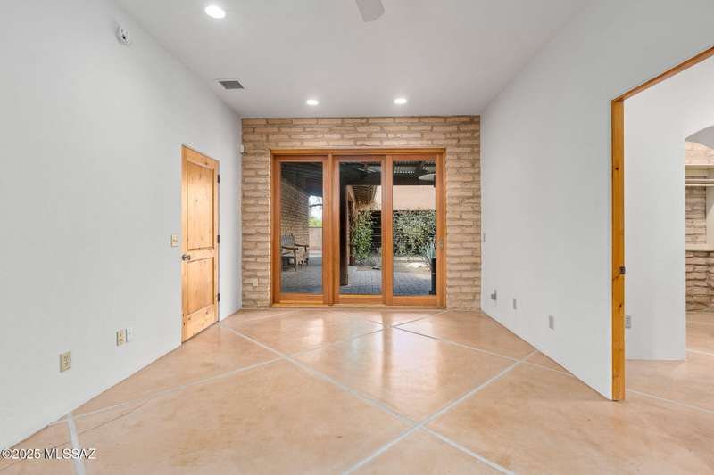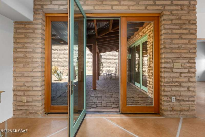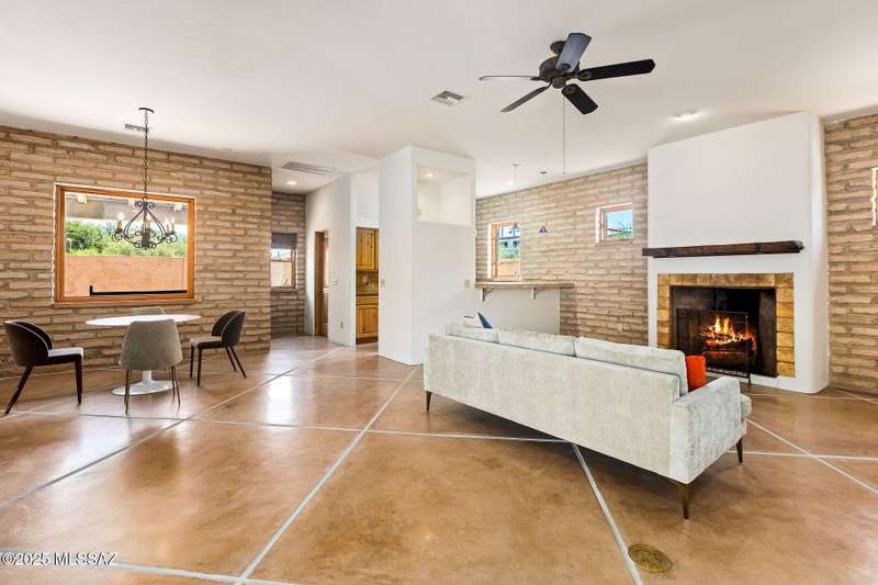 Avia Ricca, an exclusive haven in the center of town offers Old Pueblo architectural tradition with modern sophistication and convenience. This inviting 3 bedroom/2 full bath home offers a contemporary open floorplan integrated with historic charm & warmth. Quality built authentic stabilized mud adobe construction, concrete floors, high ceilings, solid alder cabinets & doors throughout, stainless appliances, large pantry, wood-framed windows & Pella exterior doors. Enter the front courtyard through a beautiful mesquite wood gate and follow the paver path to the spacious, bright & airy central courtyard. Glass doors encircling the courtyard bring the outdoors in to the great room & primary suite. Paver driveway, metal-clad garage door, rainwater harvesting system & PRE-PAID owned solar!