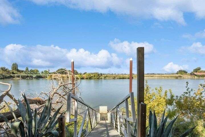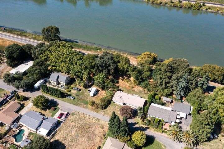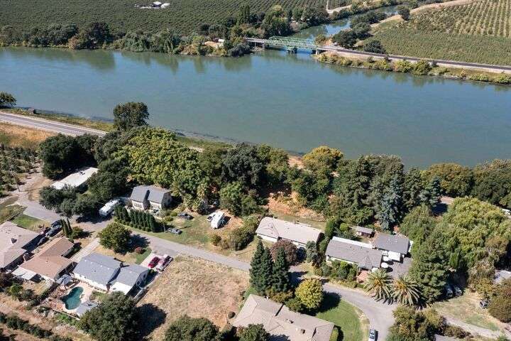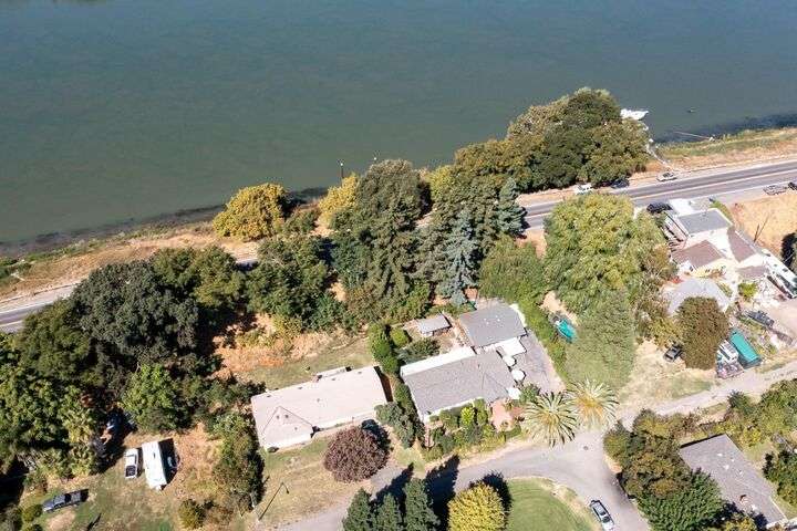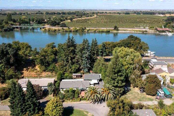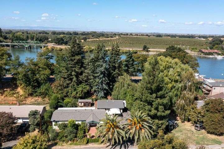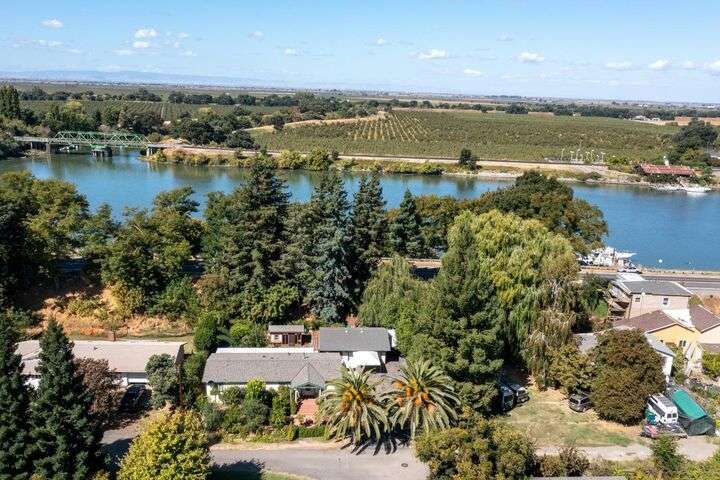 Here's a Very RARE Opportunity to own a River Delta Living property with both a permitted PRIVATE BOAT DOCK option and Possible ADU! You have direct, private access to the scenic Sacramento River w/about 100' of river frontage - an ideal picnic spot -PLUS a possible income unit/guest house; & FREE water from a private well = total independence! [Per Seller, the garage has water, sewer and power in place.] Enjoy year round relaxing, fishing and exciting water sports just by crossing the levy road to a sturdy gangway down to the river's edge. (CA State Dock Lease recently renewed). Original dock has bee removed, a new dock is needed-please see before and after photos. This expertly maintained, energy efficient home of 2x6 stud construction is in PRISTINE CONDITION and feels larger than the square footage noted; it boasts a ** Newer roof, gas stove & refrigerator**, SS appliances, vaulted ceilings, lots of natural light, gleaming floors and a cozy pellet stove. Plus a wrap around deck with tranquil views of nearby pear orchards. AND, an RV station hook-up next to the driveway. The lush grounds feature a mini orchard of over 10 fruit trees + grapes, and a grassy backyard complete with an upscale'' chicken coup. WOW! Welcome to paradise - just 20 minutes to Downtow