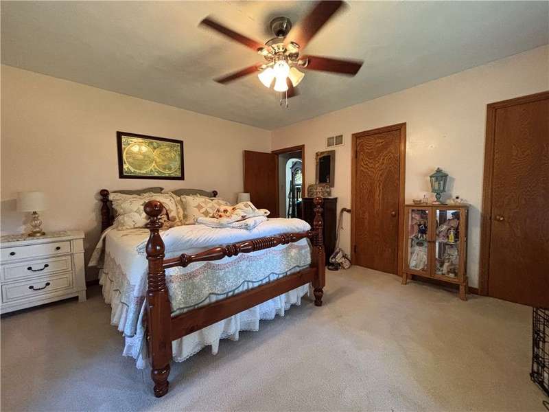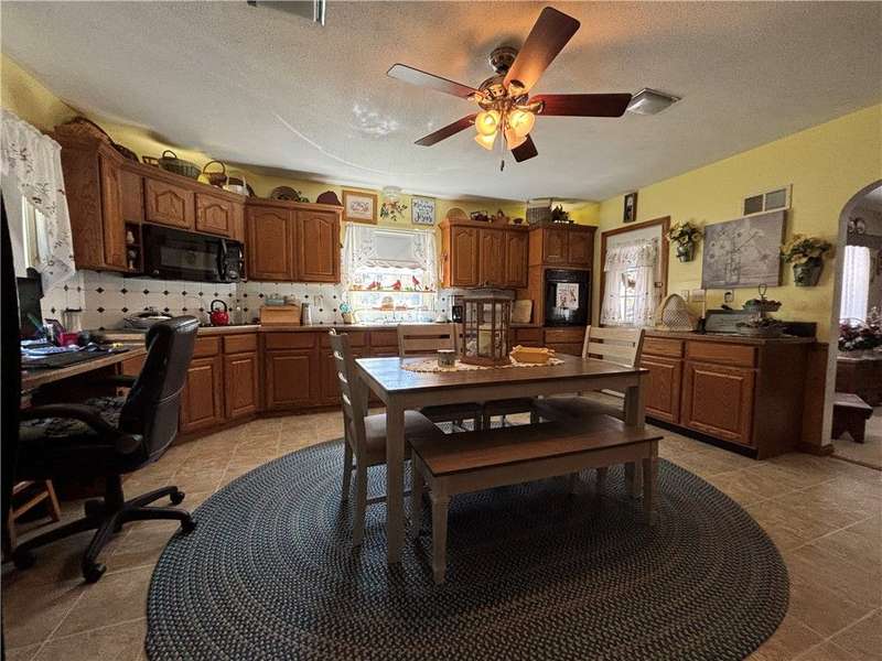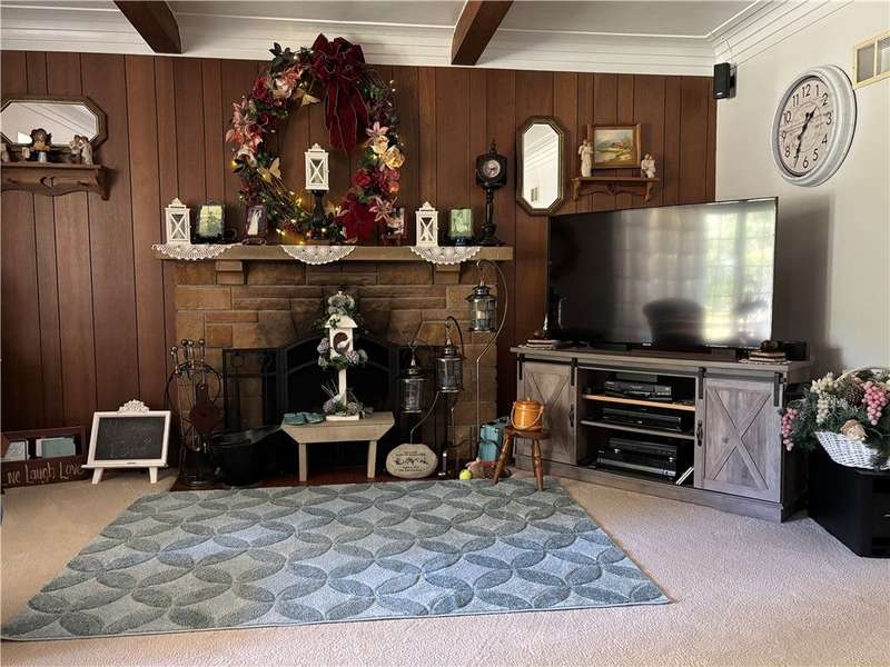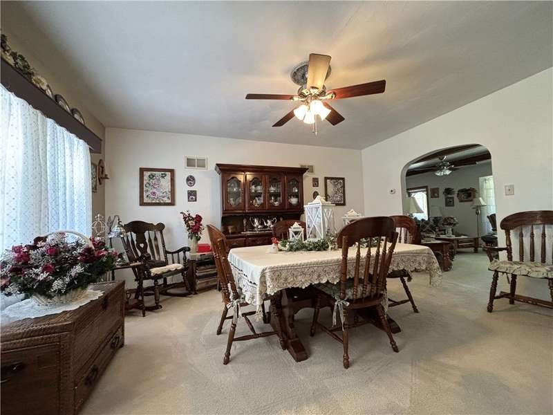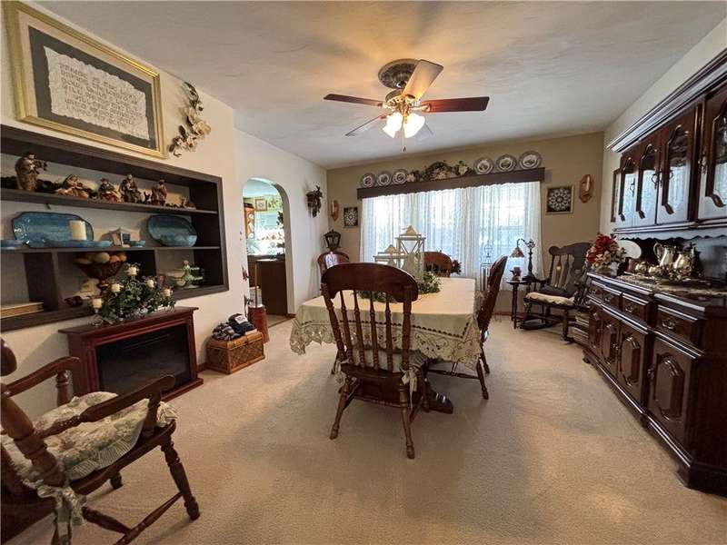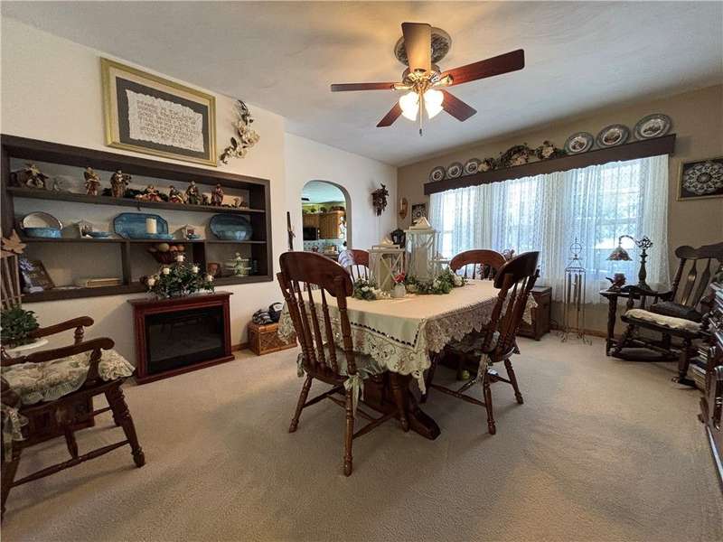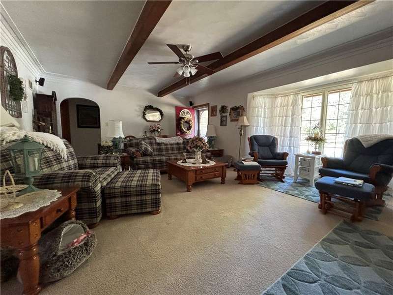 FABULOUS LOCATION WITH A STUNNING PARK VIEW! This charming one-story ranch features 3 bedrooms, 1 bath, and sits on just under an acre right across the street from Evergreen Park. There is an attached one-car garage plus a detached garage. The home boasts an oversized kitchen with ample cupboard space and includes all appliances: electric cooktop, built-in wall oven, microwave, refrigerator, and washer/dryer combo. The spacious living room has a cozy wood-burning fireplace and a picture window overlooking the park. The dining room offers built-in shelves and a lovely view of the backyard. All three bedrooms are generously sized with closets. The huge basement provides great potential for additional living space. Outside, enjoy a large deck, a pavilion, and a concrete pad with a firepit?perfect for entertaining!