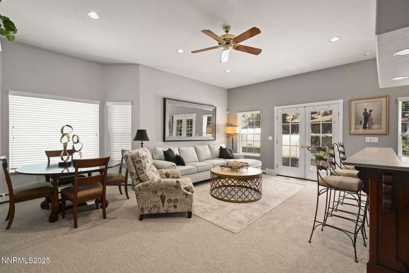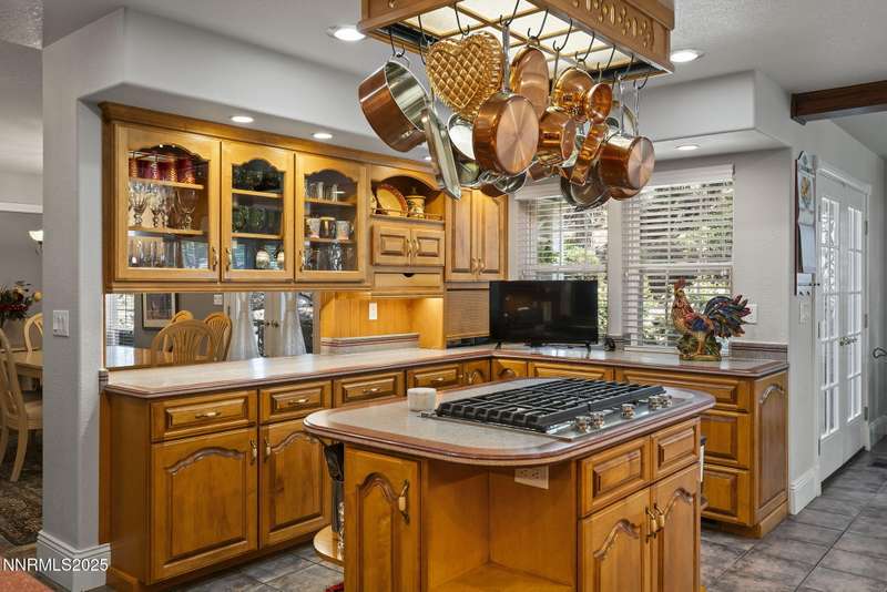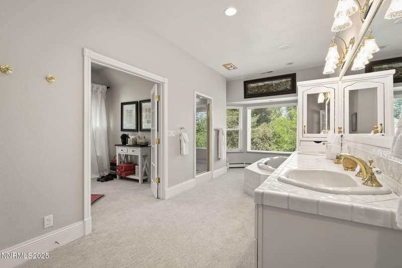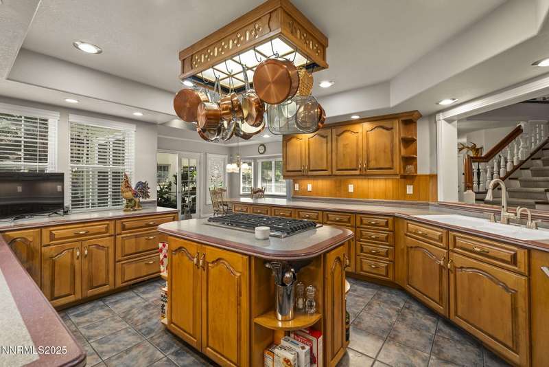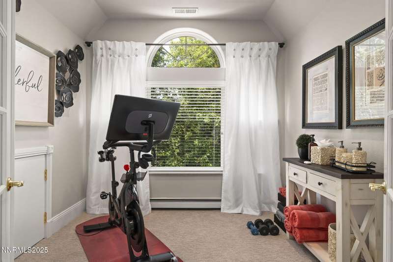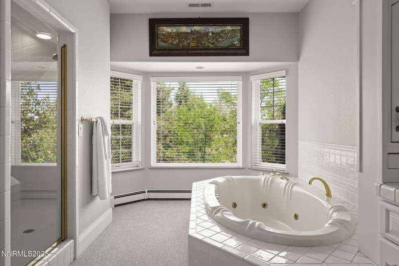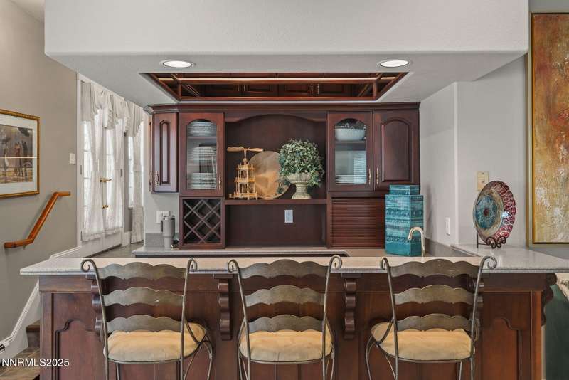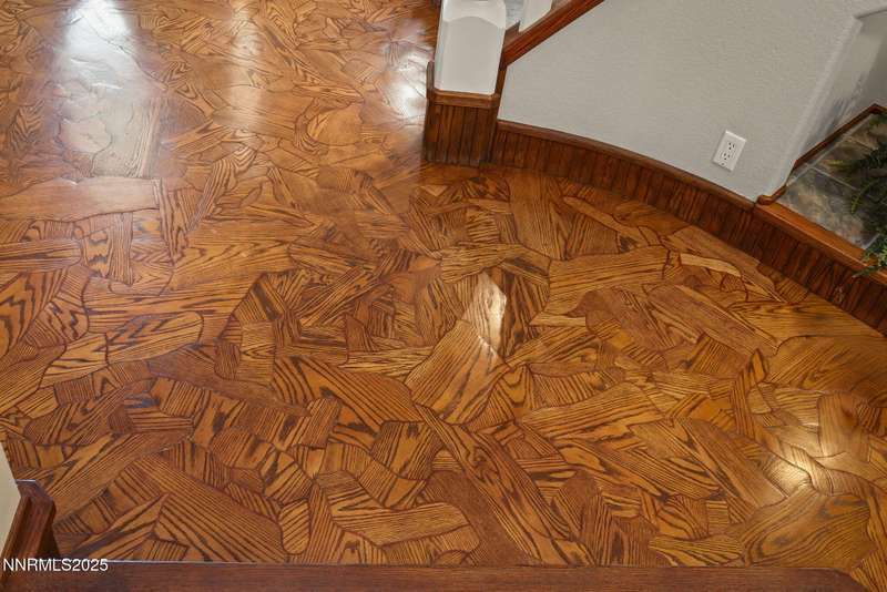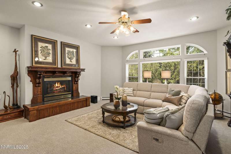 A true Victorian-inspired, custom-built home in the coveted neighborhood between Caughlin Ranch and Juniper Ridge. Enjoy the private road, without the restrictions of an HOA. This home exudes timeless charm, craftsmanship, and functionality on a beautifully landscaped 1-acre lot with mature shade trees, beautiful flower beds and true curb appeal. A quaint bridge and welcoming front porch set the tone for the warmth and character found inside. Step into a grand oak parquet entry and be greeted by handcrafted woodwork throughout, including two dramatic spiral staircases with hand-turned banisters, ornate fireplace mantles, and custom millwork. On the main level, you'll find a formal parlor, ideal as a music room or formal sitting area with a welcoming bay window seat. The entry flows into a large living room anchored by a gas fireplace and window seating, perfect for cozy gatherings. The kitchen is a chef's haven, featuring a peninsula, island cooktop, walk-in pantry, durable tile floors, and high-end, 3yr-old KitchenAid appliances, including a built-in refrigerator and oven with warming drawer. The adjacent breakfast nook opens to a covered atrium with skylights and handcrafted wood artwork, creating space for year-round gardening. Host in style with the elegant formal dining room and a connected wet bar with mini-fridge, crystal cabinetry, and ample space for entertaining—with french doors opening directly to a covered patio for effortless flow. Upstairs, the expansive primary suite is a private retreat, featuring its own staircase leading to a cozy anteroom with built-in bookshelves, private balcony, fireplace, luxurious jetted bath, walk-in closet, and a bonus flex room perfect for a nursery, home gym, or office. Three additional bedrooms offer spacious closets and comfort for family or guests. A full-sized laundry room is conveniently located upstairs with built in cabinetry for plenty of storage. Additional highlights include a 3-car epoxied garage, with one bay converted to a functional workshop. 220V power is available. The water heater and boiler are just 5 yrs old and recently serviced. This home is on septic, but city sewer runs in front of the home, creating the option to connect, if desired. The location can't be beat with proximity to the nearby Caughlin Ranch trails, the Steamboat ditch trail, Mayberry Landing, and some of the highest-rated schools within the district. Whether you're drawn to its craftsmanship, elegance, or hosting potential, this one-of-a-kind residence offers a rare combination of artistry and livability in one of Reno's most desirable locations. Schedule your private tour today!