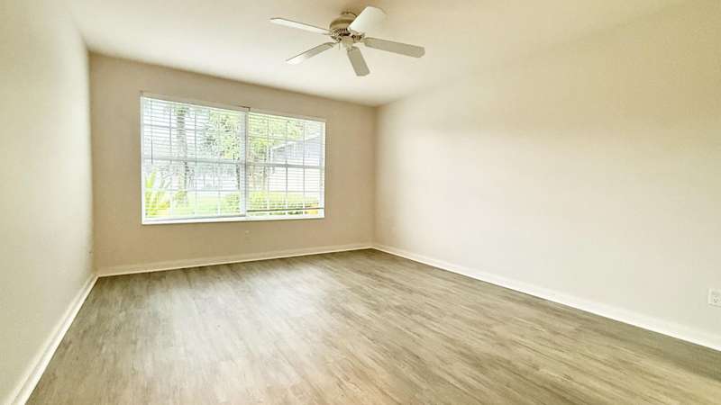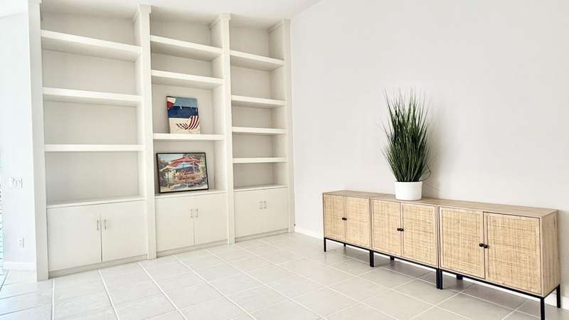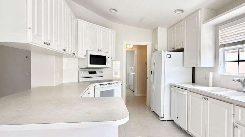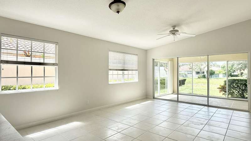 Welcome to this stunning villa that blends comfort and style with serene lake and bridge views. Featuring an open floor plan with vaulted ceilings, this home is perfect for entertaining or relaxing in your own private retreat. Highlights include-Spacious Great Room with custom wall unit and tile throughout the main living areas-Brand-new luxury plank vinyl flooring in both bedrooms-Principal suite with a large walk-in closet, en suite bath with double vanity, and walk-in shower-Guest bedroom with private bath, shower/tub combo, and walk-in closet-Lanai with sliding glass doors, creating a bright sunroom to enjoy year-round-Private backyard offering peace and privacy. Modern updates include a new AC (2022), brand-new GE oven/range, central vacuum system