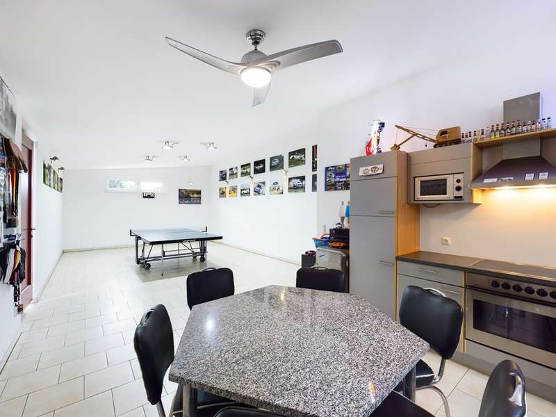 CAN BE RENTED PRIVATELY OR COMMERCIALLY! A high-quality commercial unit (coach house) in a good location in Wernsdorf, which is ideal as a classic car garage, is available to let. The shed is usually located in a side wing in a courtyard to the rear. A minimum of 3 and a maximum of 5 classic cars are possible. The residential building in front is part of the overall ensemble and offers an attractive entrance to the rental property. The garages on offer are accessed via a driveway on the left-hand side. The garages offer a total of approx. 75 m² of usable space with a WC cubicle on the first floor. A water connection is also available. The subfloor of the garages is designed so that a lifting platform for cars can be installed. The unit above in the coach house has a large room that is suitable for private use as a club room, hobby room, storage, GYM or home office (approx. 54 m). A fitted kitchen with electrical appliances can be used for catering to employees or customers. From the upper area, a patio door leads directly to the sunny terrace. The entire rental property is equipped with light both indoors and outdoors. All lamps can be taken over. A paved courtyard with 2 parking spaces and 2 carports complete the possible areas if required (optional). FURTHER USAGE CONCEPTS: - Vintage car garage for 3-5 vehicles - Clubhouse for motor sport enthusiasts etc. - Advertising agencies with workshop - Print shop with machinery - Event agencies, stand builders - Office fitters - Painting contractors - Specialist electrical companies - Pool builders with a pool cleaning portfolio for sale - Staircase builders with showroom - Fireplace builders with showroom - Cleaning companies with a fleet of cars - Warehouses and logistics of all kinds - Workshops with a silent focus - Other delivery warehouses with a fleet of cars - Food and beverage delivery service with car fleet - Craft businesses with a silent focus - Creative industries, such as pottery, painting, etc. - Trading companies and sales - Gala builders with machinery and office - Repair workshops for e.g. lawn movers, sprinkler systems - Repair workshops for coffee machines etc. Or your idea -> your industry? Then visit and rent right away!