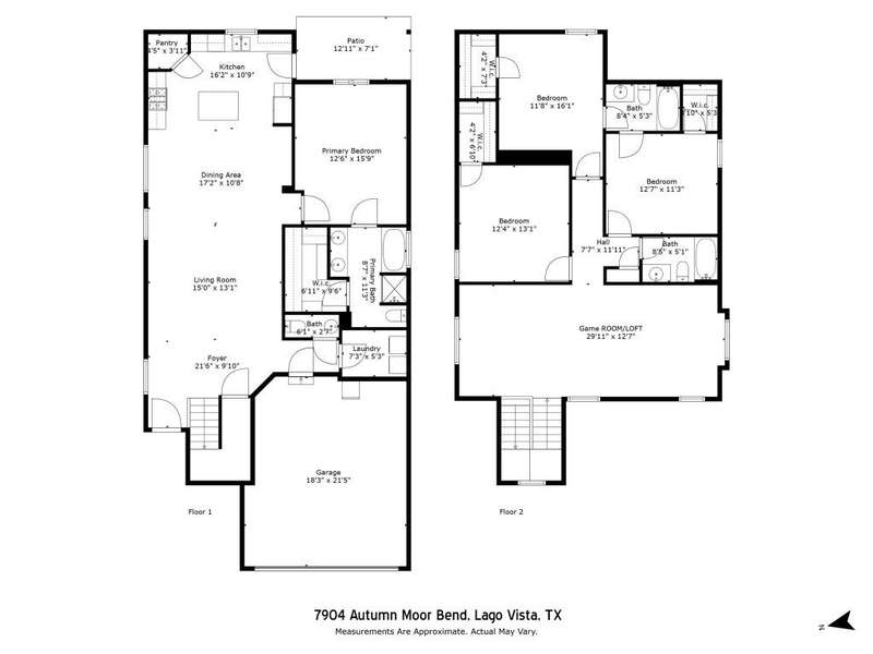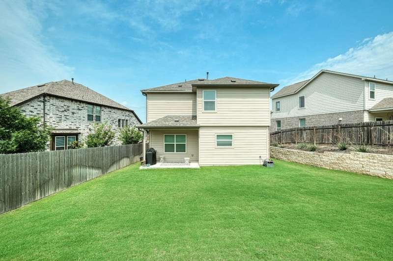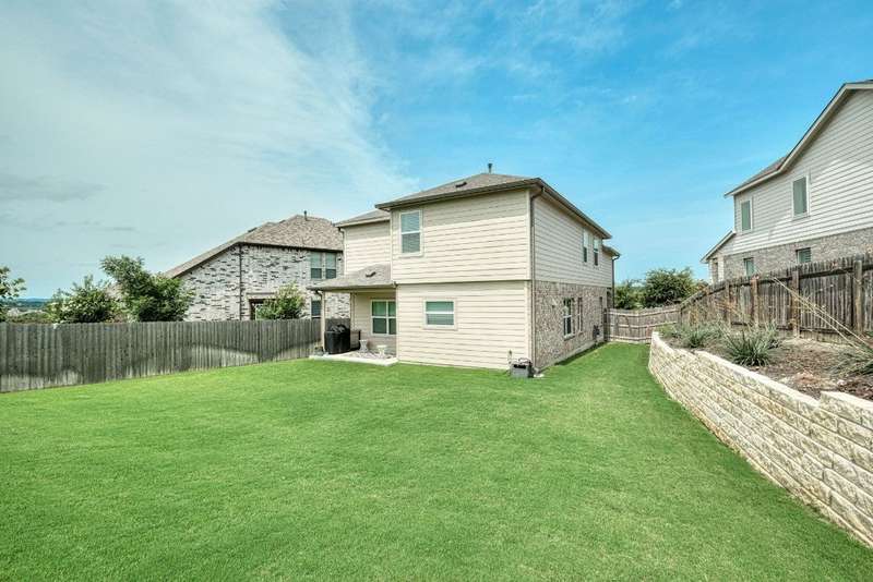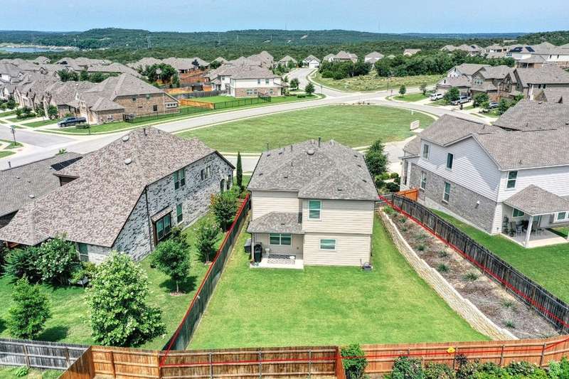 Lakeside living with room to grow! This well manicured home is better than new and situated on a premium lot that faces an open green space! Top features include an open living area to an entertainers kitchen with quartz couter tops, breakfast island, gas cooktop, and attached dining area. The primary bedroom is located downstairs and has an ensuite bathroom that includes dual vanities, soaking tub, separate shower, and a large custom walk-in closet. There's a half bathroom downstairs for guests, along with the laundry room. Upstairs you will be delighted to find a grand bonus space, 3 additional bedrooms, 2 more full bathrooms. You are going to love the backyard with the covered patio, a terraced planter area, and lush green grass. All located in the beautiful community of Lakeside at Tessera! This community boasts a Lakeside Club with waterfall edge pool, pavilion, playscape, over a mile of Lake Travis shoreline, a private boat launch, high speed internet, and hike and bike trails - all near the Balcones Canyonlands National Wildlife Refuge, Lago Vista golf courses, Flat Creek Estate (Named one of Food & Wine’s top 50 Most Amazing Wine Experiences in America), 20 min drive to Marble Falls and 45 min drive to Austin. Lago Vista ISD, low tax rate.