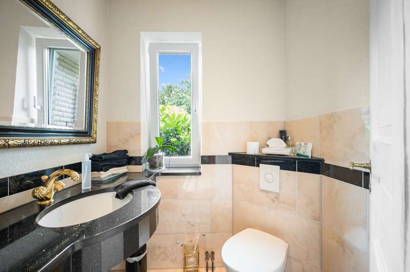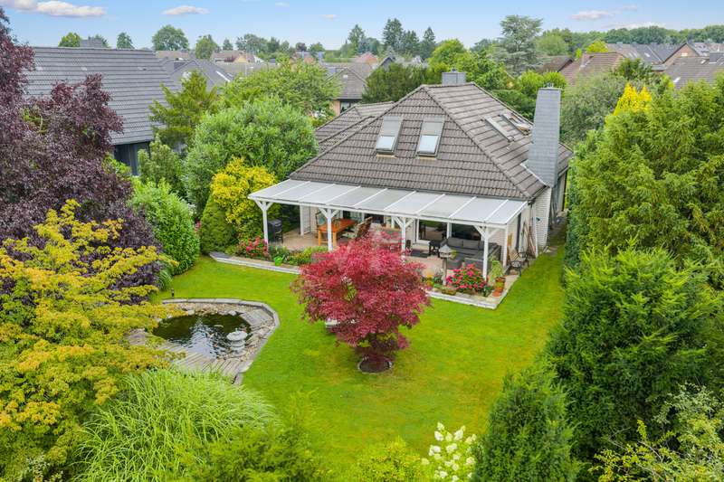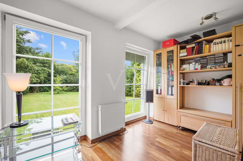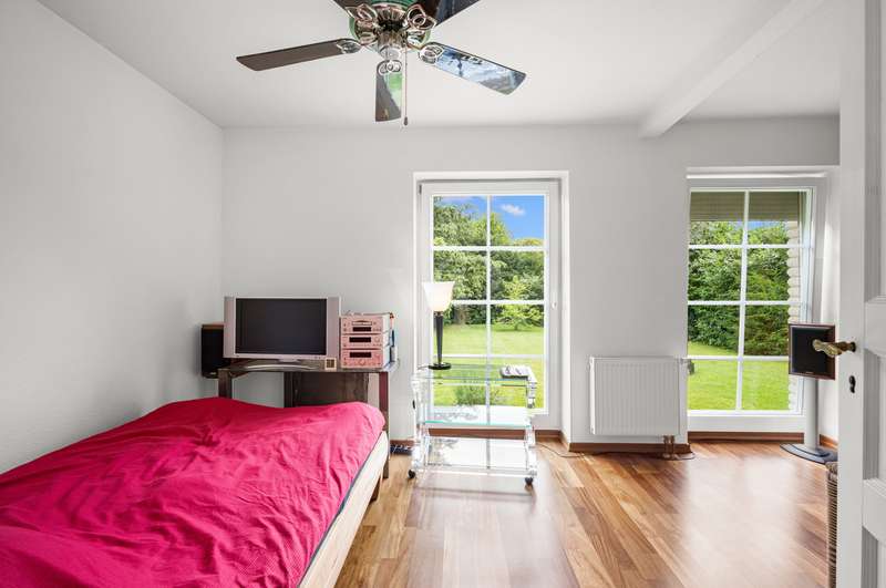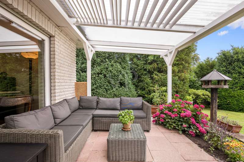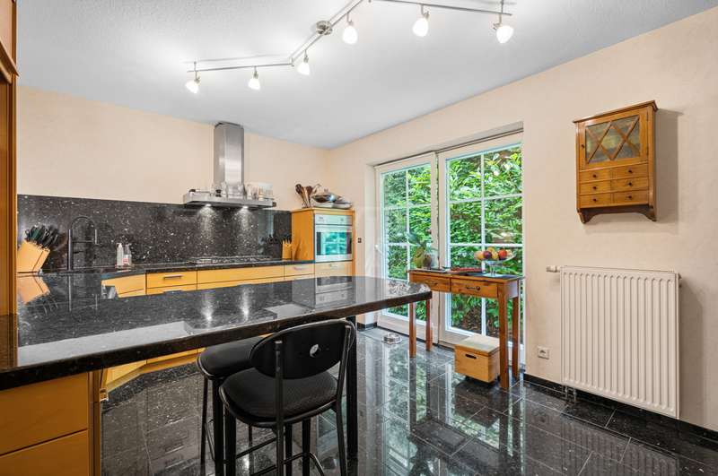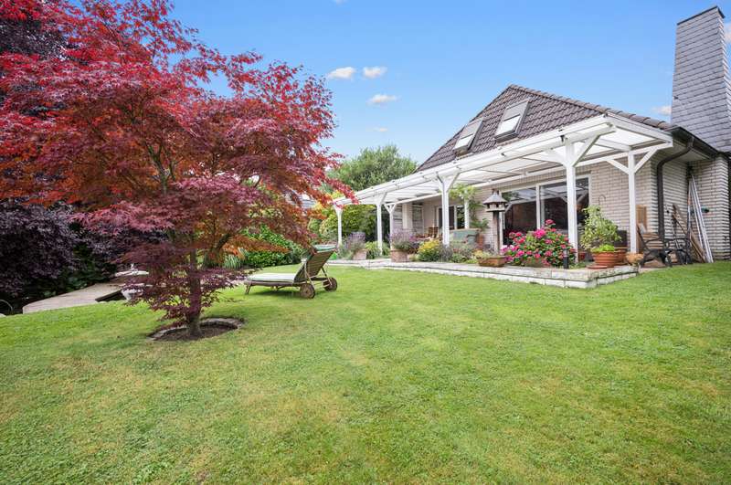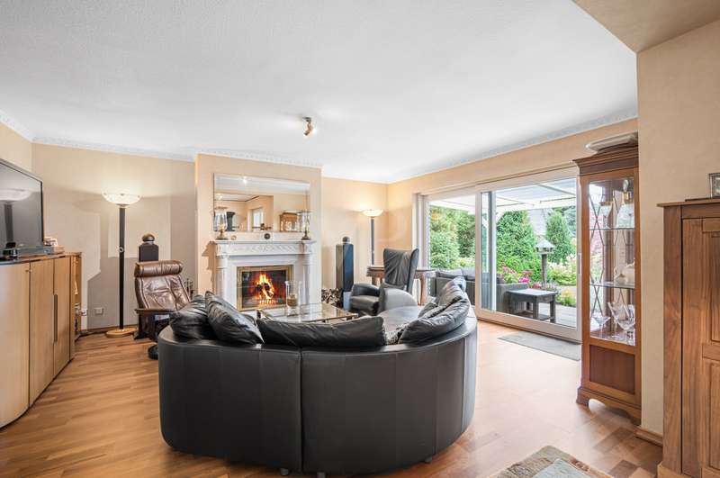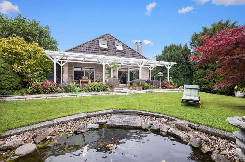 This very inviting detached house on a plot of around 1,518 m² is completely white and has been completely renovated. The approx. 128 m² of living space is spread over two levels. An extension is also possible. The building presents itself as a modern, extremely attractive home - ideal for couples or small families. The location of the house impresses with its easy accessibility to urban amenities, while at the same time offering the peace and seclusion that many people want in their everyday lives these days... The house currently has a total of 3 rooms. There is a large bedroom on the upper floor and the option to turn it into two with little effort. That would make 4 rooms - depending on your needs and stage of life. There is also a smart guest WC and a full bathroom with shower. The generously proportioned, open-plan kitchen is equipped with every refinement and invites you to cook and get together. It is flooded with light thanks to the floor-to-ceiling windows and offers direct access to the garden. The entire living and dining area impresses with large window fronts that let in plenty of natural light and elegant, modern furnishings. The focal point of the living area is the stylish fireplace, which not only provides cozy warmth on cooler days, but also creates a pleasant atmosphere. A particular highlight of the property is the large covered terrace, which offers additional outdoor living space and creates room for relaxing hours outdoors. From here, you can enjoy an outstanding view of the extensive garden. The garden design was carried out with great attention to detail and offers numerous green and relaxation areas. Another noteworthy aspect is the swimming pond, which not only provides refreshment on hot summer days, but also enhances the attractiveness of the garden as a design element. The well thought-out and functional floor plan makes optimum use of the living space. The spacious rooms guarantee a wide range of furnishing options. The offer is rounded off by a practical double garage. The entire property conveys a feeling of: Here you can catch your breath and enjoy the peace and quiet. The choice of materials and the architectural design create a harmonious overall picture that impresses both inside and out. Interested parties are invited to view this property and convince themselves of its many advantages. Contact us for further details and to arrange a viewing.
