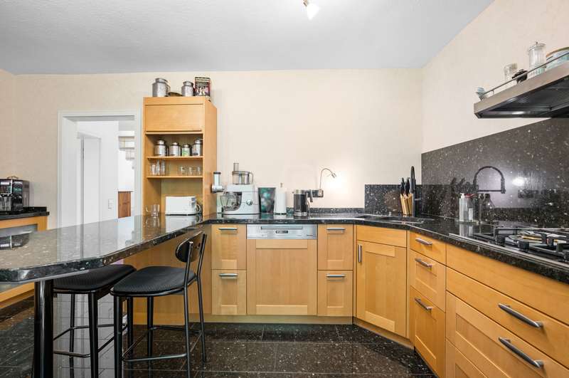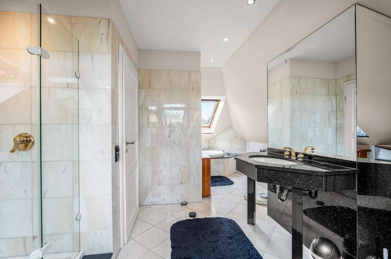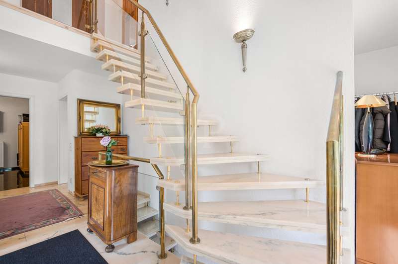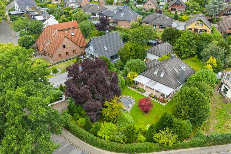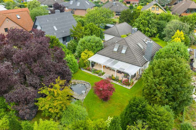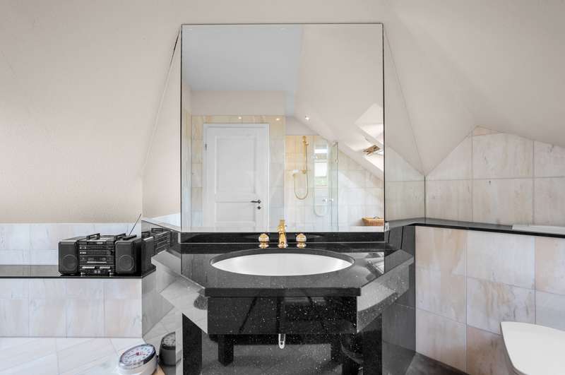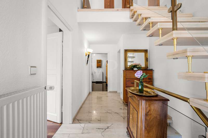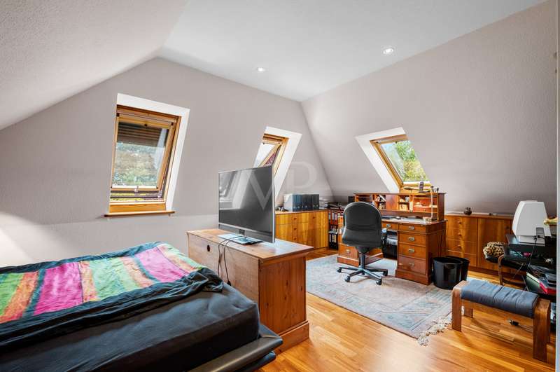 This very inviting detached house on a plot of around 1,518 m² is completely white and has been completely renovated. The approx. 128 m² of living space is spread over two levels. An extension is also possible. The building presents itself as a modern, extremely attractive home - ideal for couples or small families. The location of the house impresses with its easy accessibility to urban amenities, while at the same time offering the peace and seclusion that many people want in their everyday lives these days... The house currently has a total of 3 rooms. There is a large bedroom on the upper floor and the option to turn it into two with little effort. That would make 4 rooms - depending on your needs and stage of life. There is also a smart guest WC and a full bathroom with shower. The generously proportioned, open-plan kitchen is equipped with every refinement and invites you to cook and get together. It is flooded with light thanks to the floor-to-ceiling windows and offers direct access to the garden. The entire living and dining area impresses with large window fronts that let in plenty of natural light and elegant, modern furnishings. The focal point of the living area is the stylish fireplace, which not only provides cozy warmth on cooler days, but also creates a pleasant atmosphere. A particular highlight of the property is the large covered terrace, which offers additional outdoor living space and creates room for relaxing hours outdoors. From here, you can enjoy an outstanding view of the extensive garden. The garden design was carried out with great attention to detail and offers numerous green and relaxation areas. Another noteworthy aspect is the swimming pond, which not only provides refreshment on hot summer days, but also enhances the attractiveness of the garden as a design element. The well thought-out and functional floor plan makes optimum use of the living space. The spacious rooms guarantee a wide range of furnishing options. The offer is rounded off by a practical double garage. The entire property conveys a feeling of: Here you can catch your breath and enjoy the peace and quiet. The choice of materials and the architectural design create a harmonious overall picture that impresses both inside and out. Interested parties are invited to view this property and convince themselves of its many advantages. Contact us for further details and to arrange a viewing.