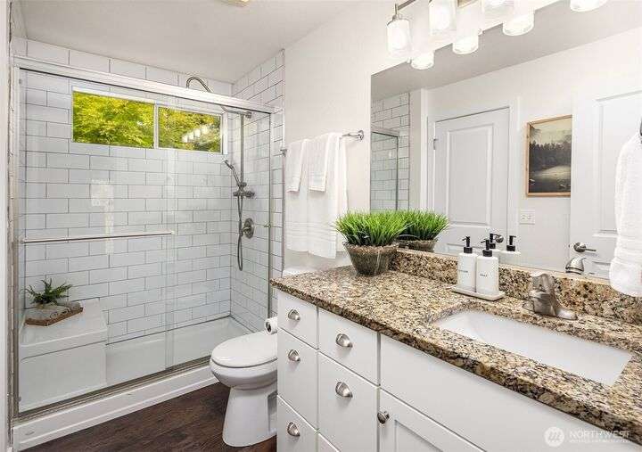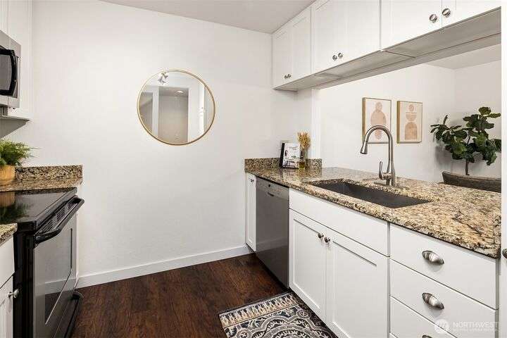 Tucked away in a sweet boutique condo community, this townhome combines easy condo living with the perks of a traditional house—including an attached garage and private, fenced back yard with patio. Its light-filled layout offers plenty of space to gather or relax with a vaulted, fireside living area and roomy dining area. Cooking is a breeze in the well-planned kitchen featuring slab granite surfaces, stainless steel appliances, and breakfast bar. Two bedrooms are upstairs together while an office/3rd bedroom down provides extra flex-space. You can move right in with fresh updates such as a new refrigerator, window treatments, designer lighting, and interior paint. Stroll to dining, shopping & parks. Great bike access, too!