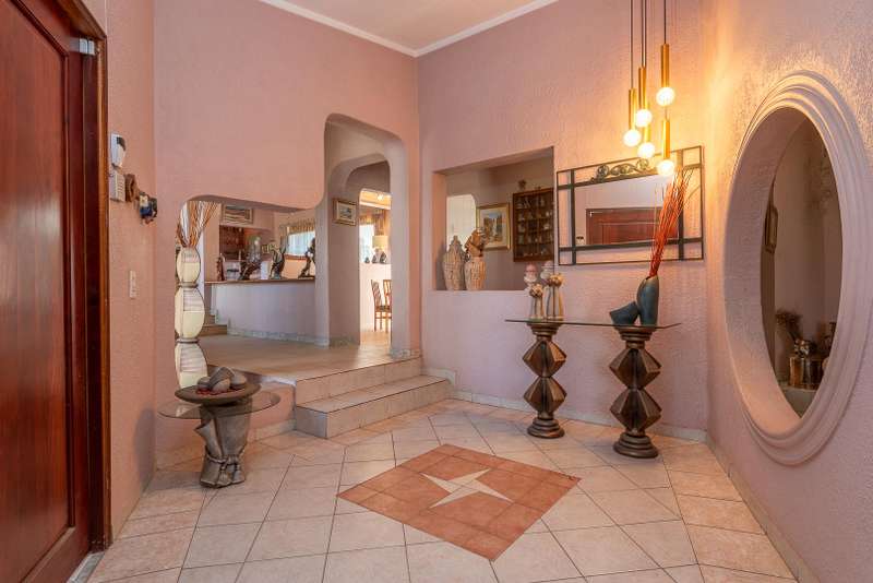 As the automated gate slides open and you drive in, the lush sights of rolling lawns and established trees immediately tug at heart strings you never knew existed and a short drive up towards the 2 double automated garages which include workshop areas set the tone for what to expect where size and scale are concerned. A motor court and garden area which can comfortably park 10 - 15 vehicles also allows you separate access to the full one bedroomed cottage which also enjoys easy access into the main home.