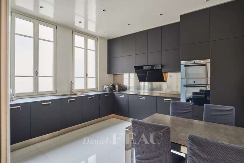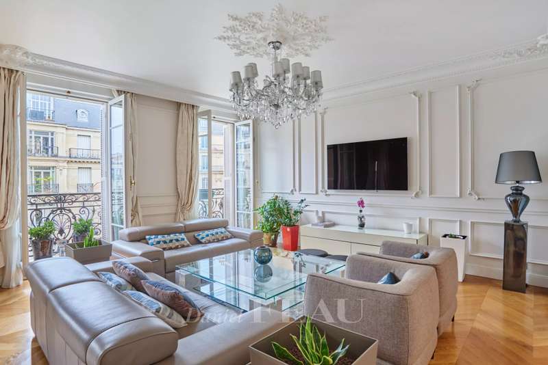 Wagram/Courcelles neighbourhood. This entirely renovated near 150 sqm apartment bathed in sunshine is on the 4th floor of a superb early 20th century freestone building with a lift and very well-maintained common areas. Air-conditioned and benefiting from an excellent floor plan, it includes a bright living/reception room and dining room enjoying an open view, a spacious kitchen with dining facilities, three generous bedrooms each with a shower room, and a separate wc. Ample fitted storage space. Period features include parquet flooring and mouldings. With a cellar and a storage room.