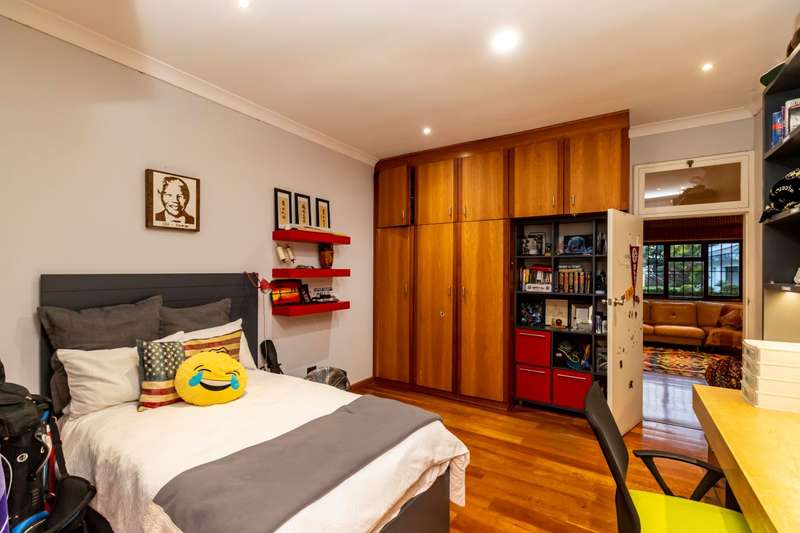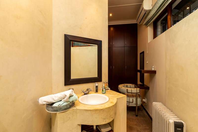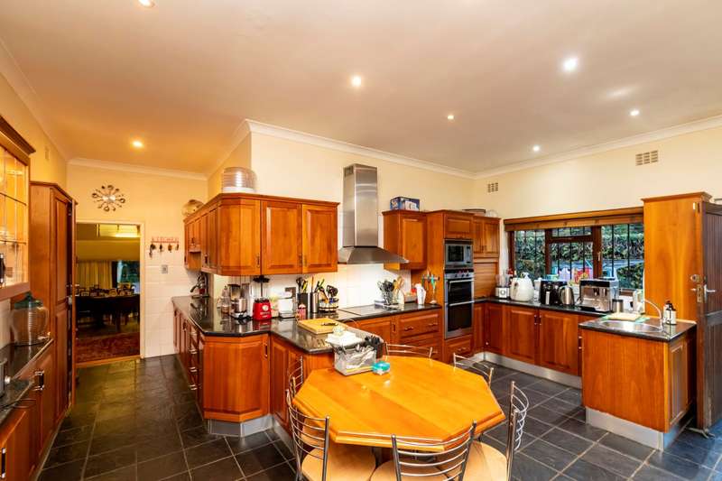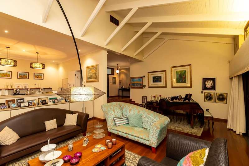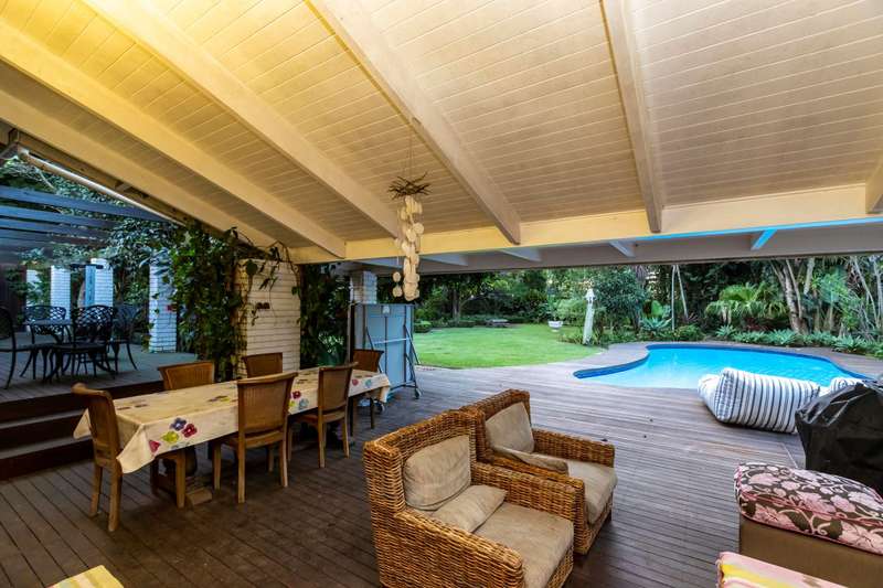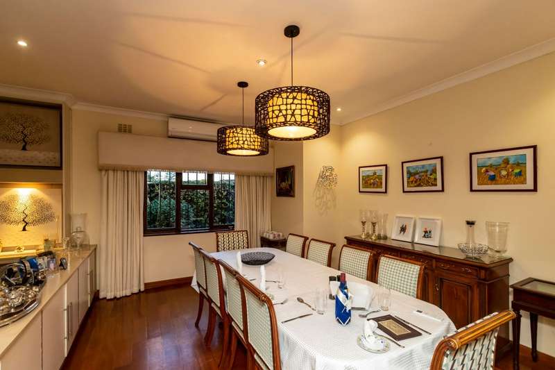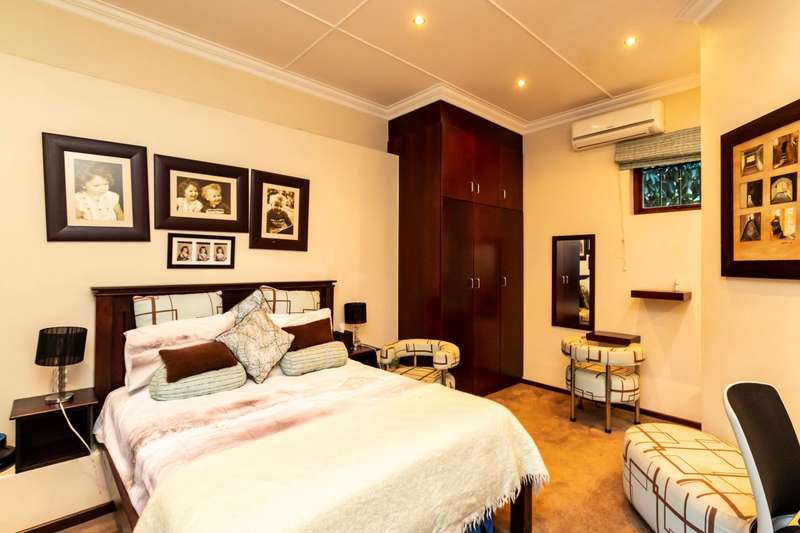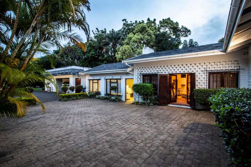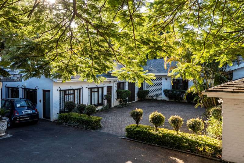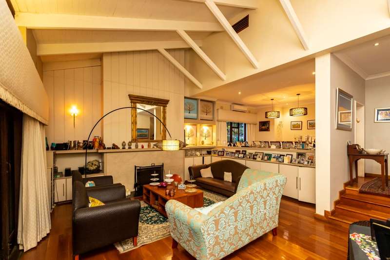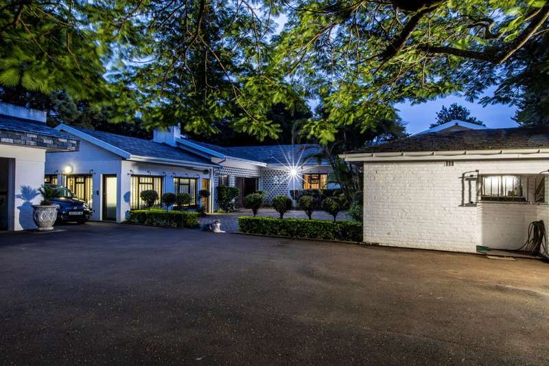 Exclusive Residence for the top executive. Enter a world of tranquility, seclusion, privacy and safety. The driveway leading through the unique, park-like ground of 3473sqm already points towards the sizeable grandeur of this Property. Large living areas with great flow onto Patio and Pool, 5 x spacious Bedrooms, 4 leading out onto Garden and separate Guest Bedroom, Study, 3 x Bathrooms, separate office/gym, fully fitted Kitchen, Helpers Room, Laundry, 3 x Garages and Single Carport