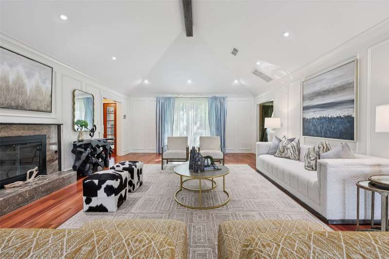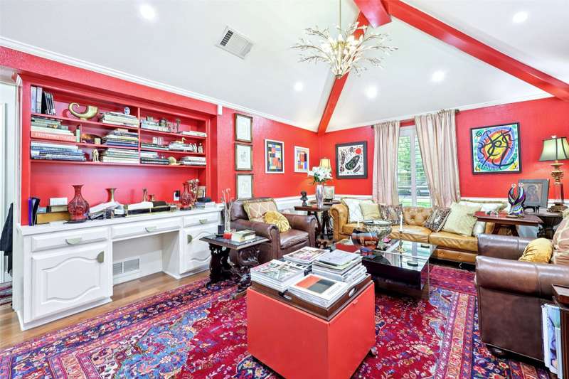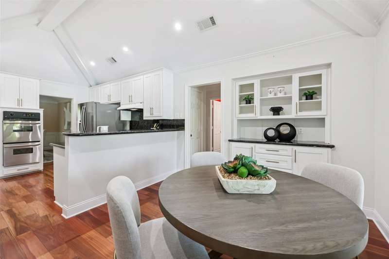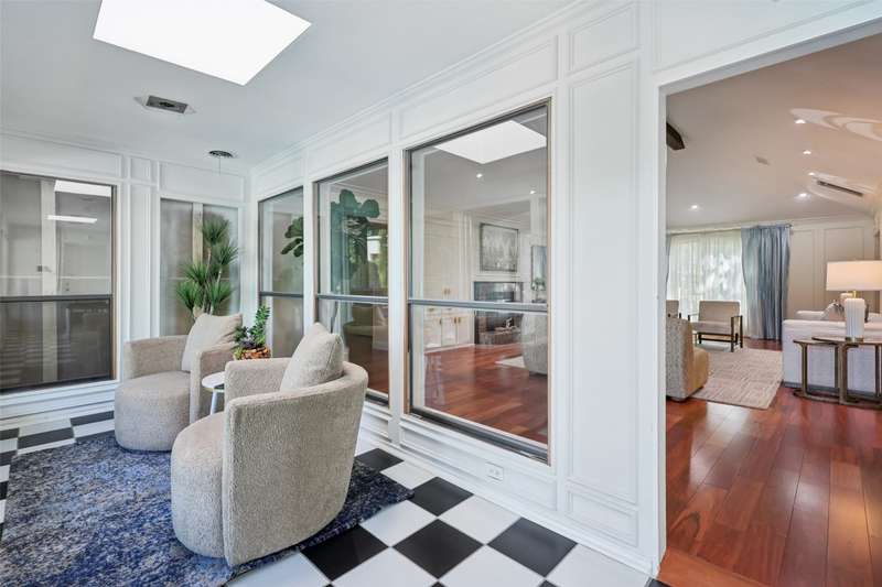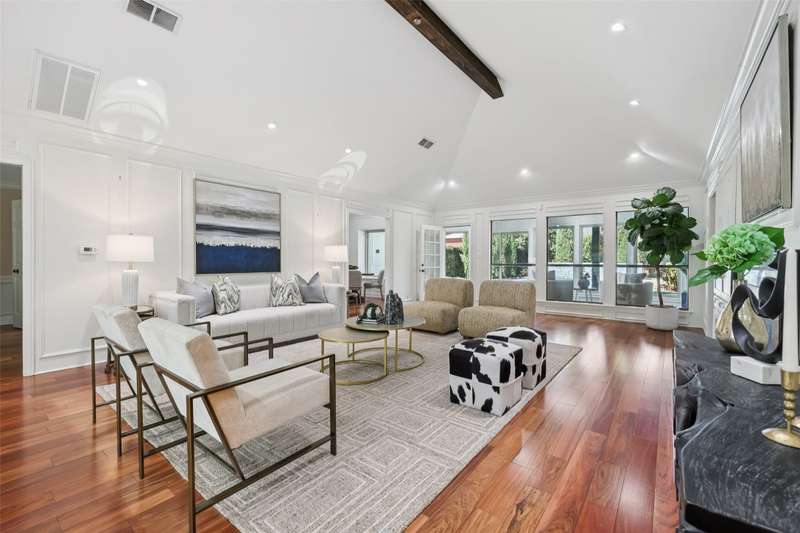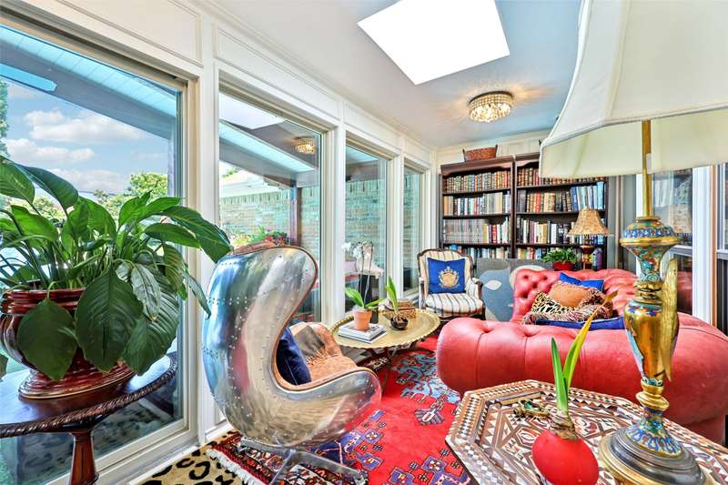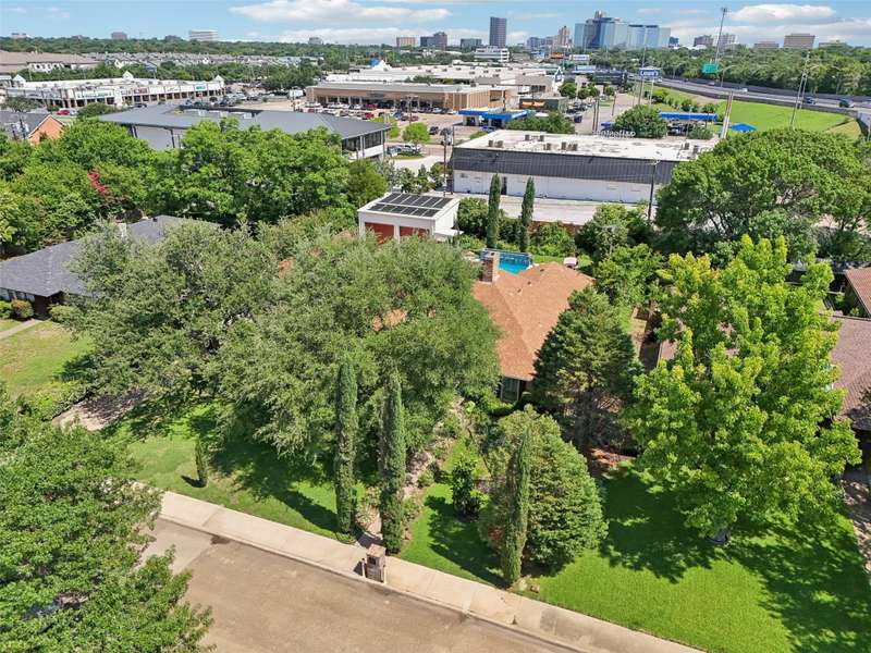 THIS IS A GREAT HOUSE located in one of the hottest areas of Dallas, and in a dynamic economic powerhouse area in the private school corridor, a beautifully maintained single-story home on a large lot with magnificent mature trees, where many happy memories were made. This residence features four bedrooms (or three bedrooms and a den), three bathrooms, three living areas, and two dining areas, blending timeless style with modern comfort. Features include gleaming wood floors, abundant natural light, and serene views from nearly every room. The renovated kitchen features a breakfast bar, a 6-burner gas cooktop, and a stainless-steel refrigerator. Adjacent breakfast nook with built-ins overlooks the sparkling pool. Enjoy multiple flexible living spaces, including a totally private, split red-painted guest room or den; an atrium that connects you to nature; and a covered patio for year-round outdoor living. The heated pool, powered by solar panels, invites swimming year-round. The formal living area features a vaulted ceiling, fireplace, and hidden wet bar. The primary suite features his-and-hers bathrooms, dual walk-in closets, a renovated bathroom with a walk-in shower, a spa tub, and a bidet toilette. Additional highlights: detached 26' x 20' 2-car garage with side entry and electric gate, large area for RV parking, French drains, cedar-lined closets throughout, roof replaced in 2021, and more. Seller offers a $5,000 allowance for the buyers choice of fixtures. This exceptional home combines elegance, comfort, and convenience in one of Dallas' most desirable areas!