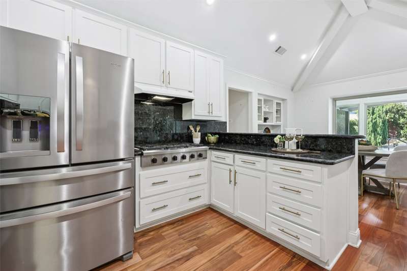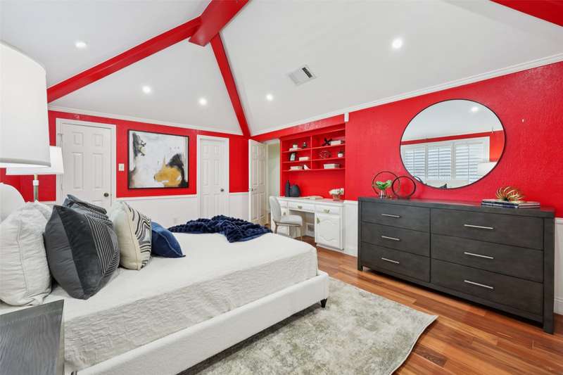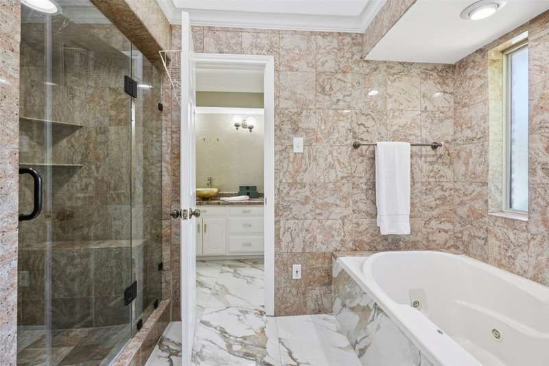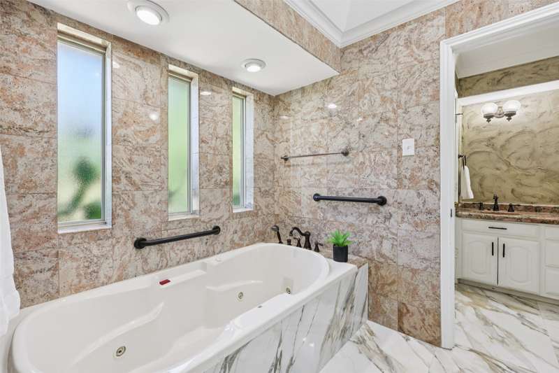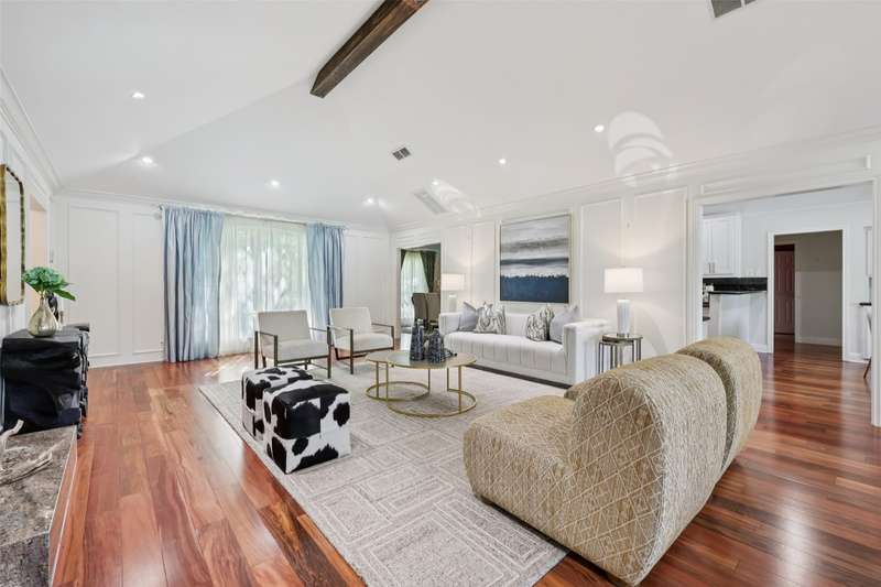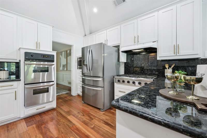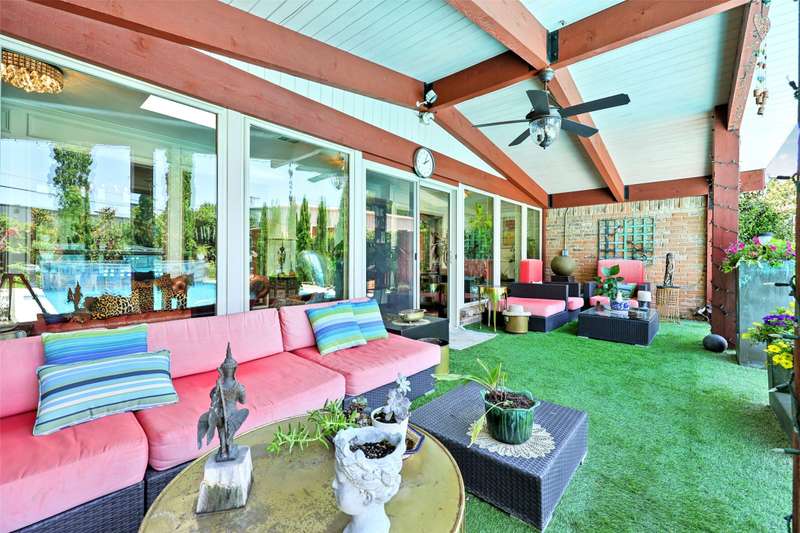 THIS IS A GREAT HOUSE located in one of the hottest areas of Dallas, and in a dynamic economic powerhouse area in the private school corridor, a beautifully maintained single-story home on a large lot with magnificent mature trees, where many happy memories were made. This residence features four bedrooms (or three bedrooms and a den), three bathrooms, three living areas, and two dining areas, blending timeless style with modern comfort. Features include gleaming wood floors, abundant natural light, and serene views from nearly every room. The renovated kitchen features a breakfast bar, a 6-burner gas cooktop, and a stainless-steel refrigerator. Adjacent breakfast nook with built-ins overlooks the sparkling pool. Enjoy multiple flexible living spaces, including a totally private, split red-painted guest room or den; an atrium that connects you to nature; and a covered patio for year-round outdoor living. The heated pool, powered by solar panels, invites swimming year-round. The formal living area features a vaulted ceiling, fireplace, and hidden wet bar. The primary suite features his-and-hers bathrooms, dual walk-in closets, a renovated bathroom with a walk-in shower, a spa tub, and a bidet toilette. Additional highlights: detached 26' x 20' 2-car garage with side entry and electric gate, large area for RV parking, French drains, cedar-lined closets throughout, roof replaced in 2021, and more. Seller offers a $5,000 allowance for the buyers choice of fixtures. This exceptional home combines elegance, comfort, and convenience in one of Dallas' most desirable areas!