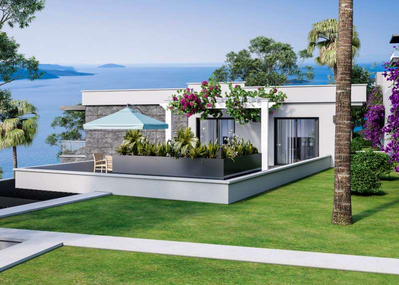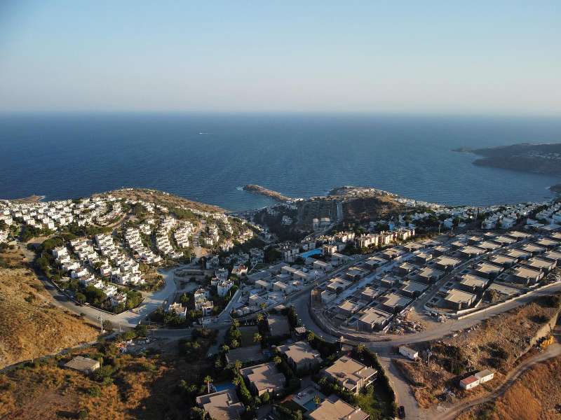 Sea view villas for sale in Bodrum are close to many social and daily amenities like cafes, restaurants, markets, pharmacies, banks, and hospitals. The villas are 8.4 km to Yalikavak Marina, 50 km to Bodrum-Milas Airport, 18 km to the center of Bodrum, 13 km to Bodrum State Hospital, 19 km to Bodrum Castle and Mausoleum at Halicarnassus.