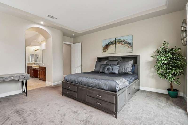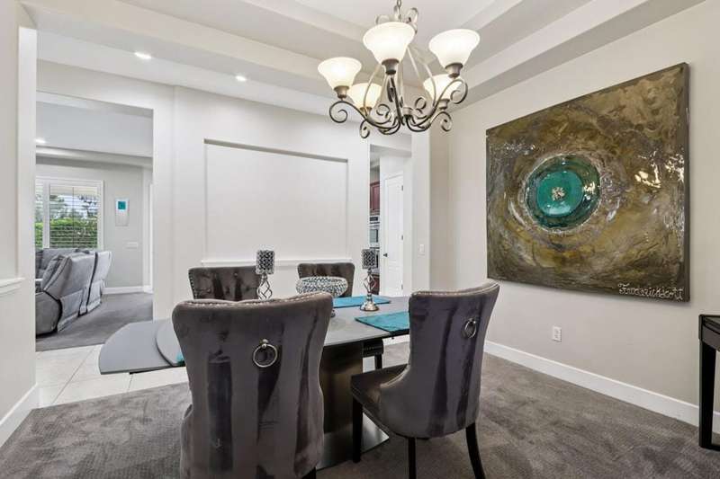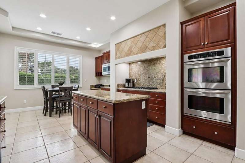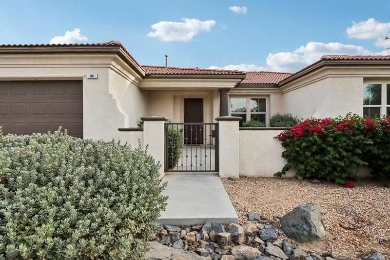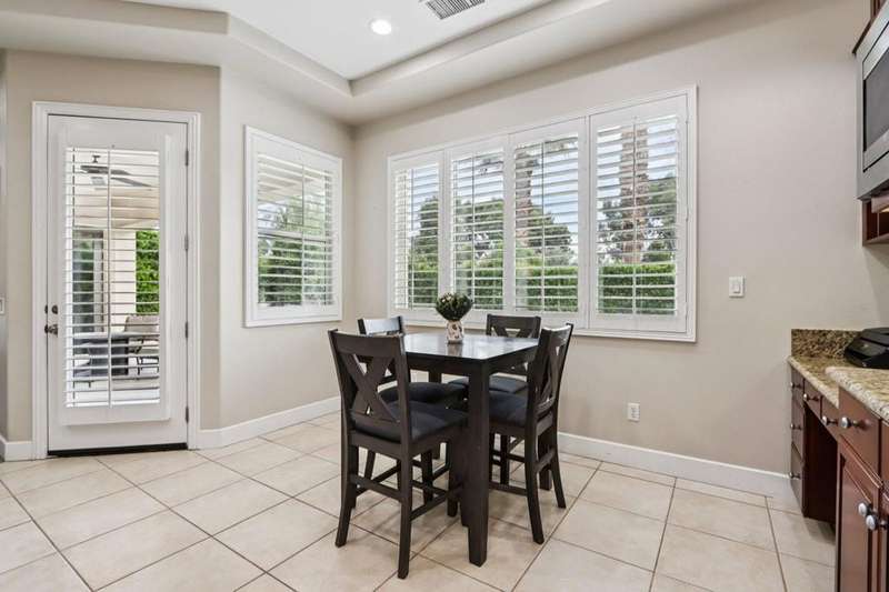 (2-month minimum stay ( Nov - April ) , Elegant Contemporary Living in Brenna at Capri - Palm DesertWelcome to this beautifully maintained contemporary-style home in the prestigious gated community of Brenna at Capri, ideally located in the heart of Palm Desert. Enjoy the convenience of being within walking distance to Ronald Reagan Elementary School, Freedom Park, and just minutes from premier shopping, dining, and entertainment.Step inside to an open-concept layout featuring soaring ceilings and expansive windows that fill the space with natural light. Elegant plantation shutters and 24x24 white tile flooring throughout the main living areas enhance the modern aesthetic, creating a clean and sophisticated ambiance.The chef's kitchen is a true centerpiece, boasting stainless steel appliances, granite countertops, and a generous island that seamlessly connects to the spacious living and dining areas--perfect for entertaining or relaxing with family.Retreat to the luxurious primary suite, complete with a walk-in closet, dual vanities, a soaking tub, a spacious shower, and stunning marble countertops, for a truly spa-like experience.Additional highlights include:A large 2-car garage with an extended drivewayA dedicated laundry room with a deep sink and ample storageA private backyard oasis ideal for outdoor living, with space for dining, lounging, or creating your dream garden retreatThis elegant home blends contemporary design with everyday comfort in one of Palm Desert's most sought-after communities.Don't miss the opportunity to make it yours!